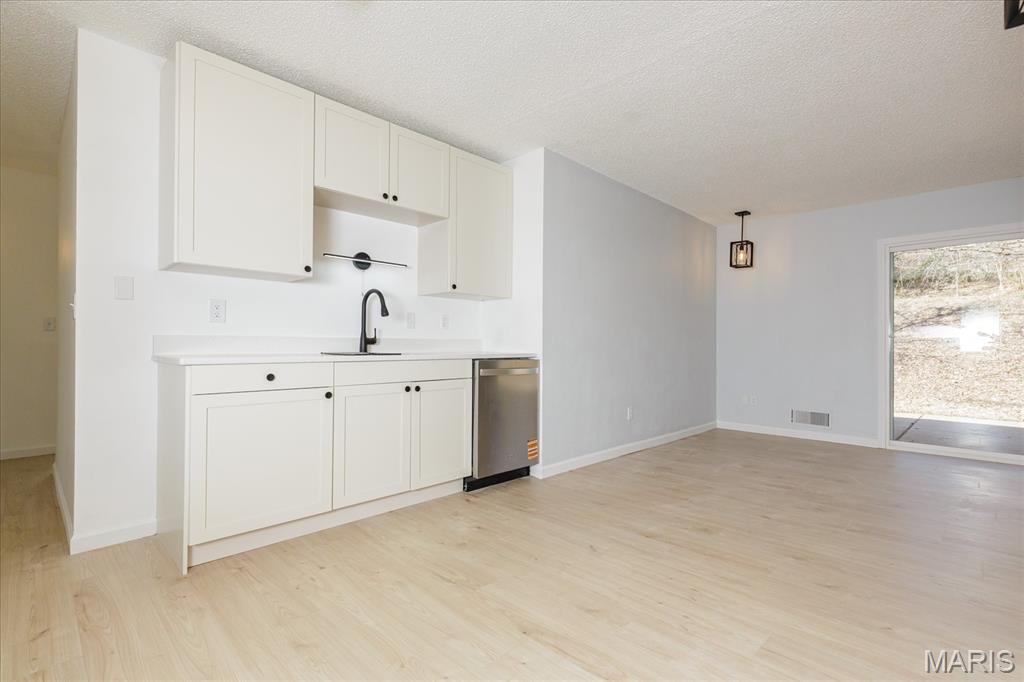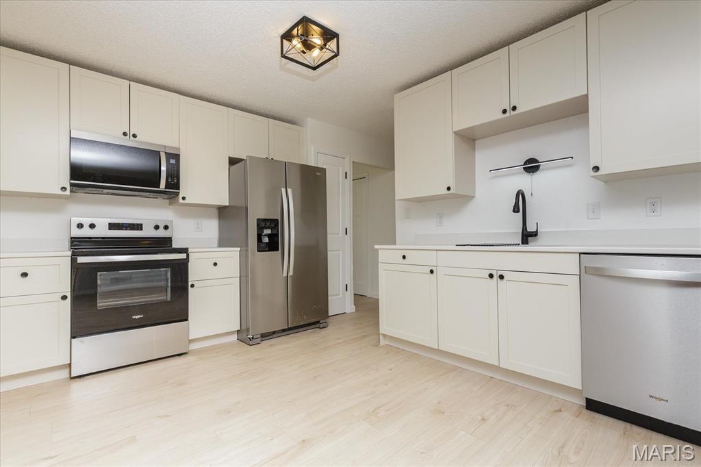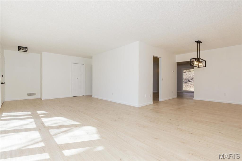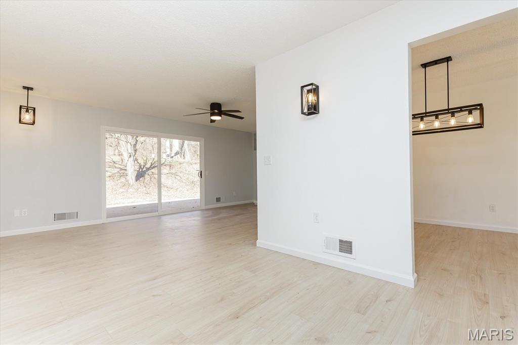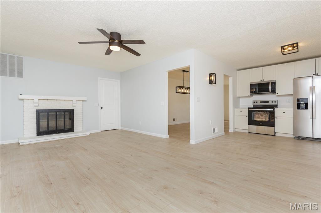 Welcome to this stunning, fully renovated 3-bedroom, 2-bathroom ranch that perfectly blends modern style with functional living. Every inch of this home has been upgraded to provide a move-in-ready experience for its next owner. The amazing kitchen is completely new, featuring sleek white shaker cabinets, elegant quartz countertops, and a full suite of stainless steel appliances, including a brand-new refrigerator. You will love the new luxury vinyl plank (LVP) flooring that flows throughout the entire home. The aesthetic is tied together with new lighting, contemporary black fixtures, and matching black door knobs and hinges. Enjoy a bright, spacious living and dining room combo, plus a separate sitting room featuring a cozy wood-burning fireplace—ideal for relaxing evenings. Both bathrooms are entirely new from top to bottom, reflecting the home’s consistent modern design. This home is built on a slab, offering easy, no-step living without the maintenance of a basement. While there is no lower level, storage is never an issue! The attached 2-car garage includes a rare extra extension, providing ample space for a boat, a substantial workshop, or all your seasonal storage needs. Rest easy under a brand-new roof. Located at the end of a quiet dead-end street, this property backs to woods for maximum privacy. The exterior also features a covered porch and a fenced yard with a patio, perfect for outdoor entertaining.