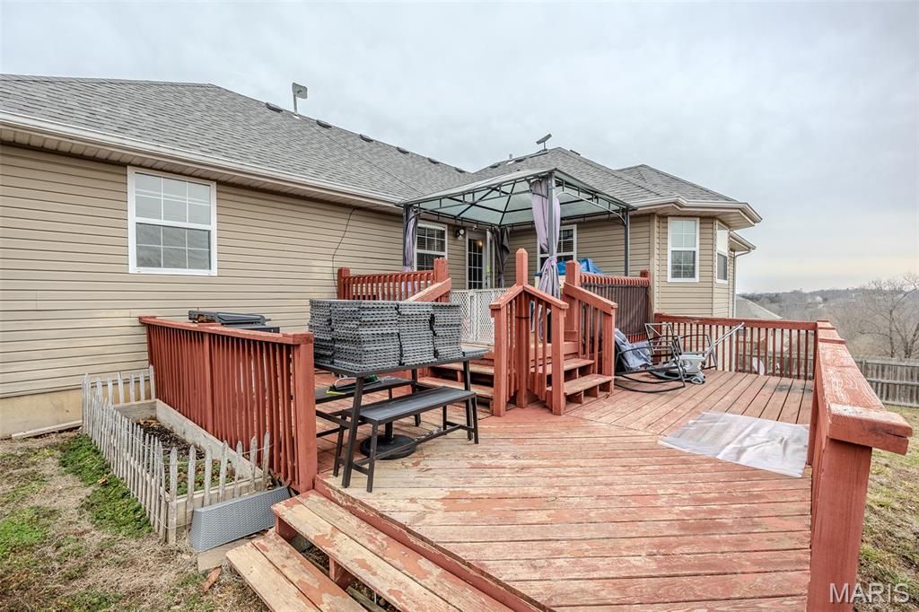 Enter through the front door and head upstairs to a vaulted living room, with hardwood flooring and easy access to an expansive kitchen, with walk-in pantry and plenty of counter space, alkaline water faucet, oak cabinetry, along with eat-in kitchen overlooking the partially covered deck! Primary suite includes newly renovated shower, jetted tub, double bowl vanity and walk-in closet. Shower renovations are currently still underway at the time of Coming Soon and will be completed by March. Head across the home where three bedrooms and one full bathroom are thoughtfully laid out. Downstairs, a rec room provides additional living space, along with French doors into a non-conforming fifth bedroom, laundry room and third bathroom. In the garage, enjoy the oversized parking area, along with additional storage room and access out to the yard. The backyard is fenced and includes a shed, firepit and sub-fenced area for pets. Home includes Starlink equipment, roof mounted, and whole home water filtration, along with exterior security cameras.