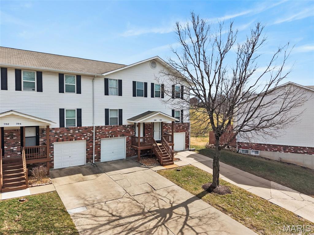 Welcome to your fresh new home! This fully renovated Townhome in the heart of Saint Charles County is one to see! This well loved home features so many upgrades- from the custom cabinets and butcher block countertops to the EV Charging Station in the garage and so much to love in between. Enter through the front door to the cozy family room, then head to the eat in kitchen with beautiful cabinetry. Just outside the kitchen, is private patio and easy access to basketball courts. The main floor contains a half bath just off the family room along with a storage closet for easy access. Upstairs, you'll find two spacious bedrooms and a full bath. You will also find the upstairs laundry- no carrying laundry baskets up and down the stairs!! Head to the basement for am additional living area/game room and for access to the garage! Home includes pool access and use of other common ground spaces. Come see this one today, rare finds like this don't last long!