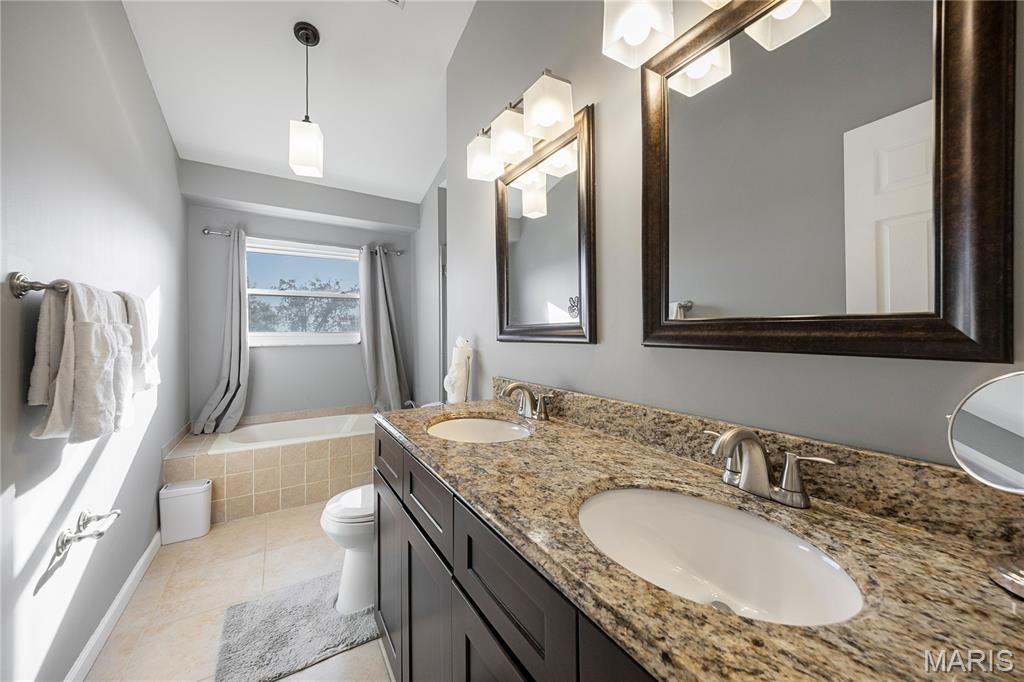 Beautifully Updated and Priced Right in desirable Polo Parc! This 3-bedroom, 3.5-bath 2-story with finished walkout lower level offers 2,700+ sq ft of comfortable living space just minutes from Creve Coeur Park. The brick front, vinyl siding, and inviting curb appeal welcome you home. Inside, enjoy a spacious living room with brick-hearth wood-burning fireplace, separate dining room, and a completely renovated kitchen featuring marble countertops and backsplash, custom crown-molded cabinetry, stainless steel appliances, and bright breakfast bay with deck access. Upstairs, the vaulted primary suite offers dual sinks, soaking tub, and separate shower. The finished walkout lower level is ideal for guests or multi-generational living, featuring a private 4th bedroom, full bath, kitchenette, and large living area. The drywalled garage provides added flexibility for storage or hobbies. Conveniently located near shopping, dining, and highways in Maryland Heights and served by the highly rated Parkway Schools, this move-in ready home is an incredible value you won’t want to miss!