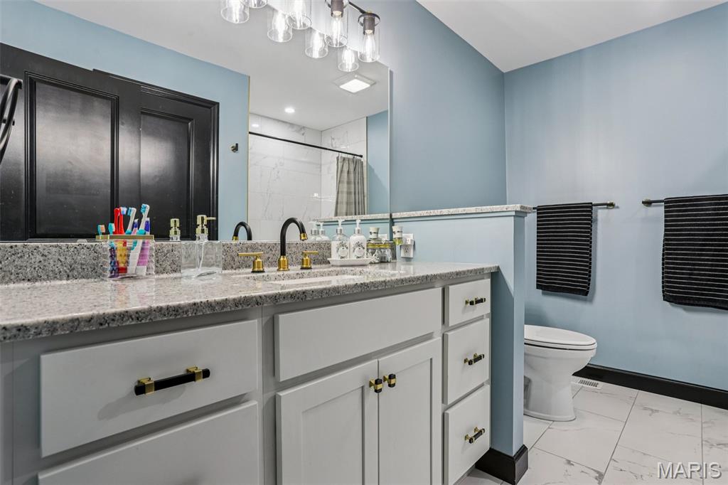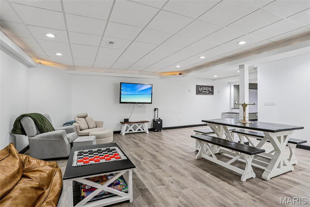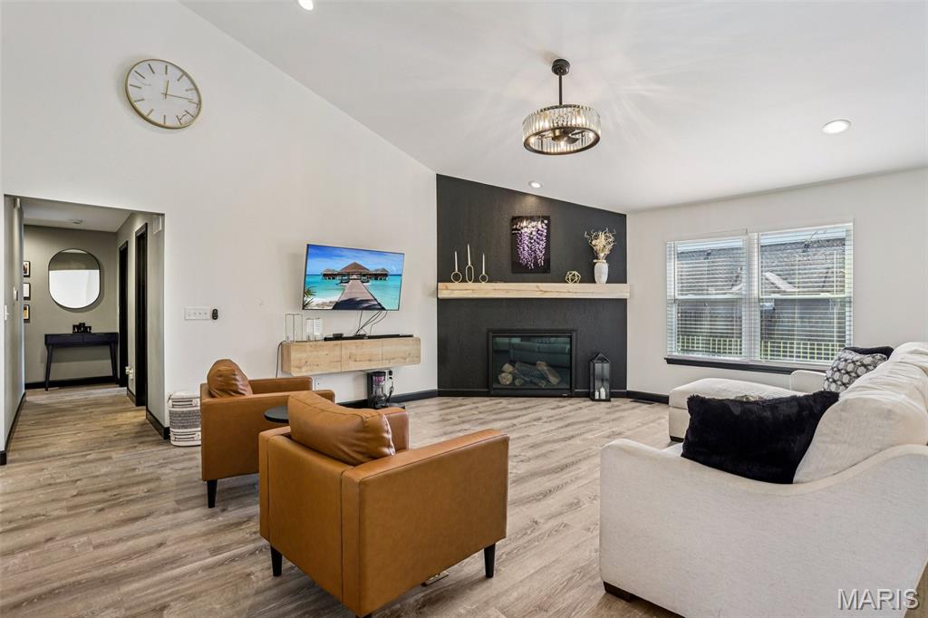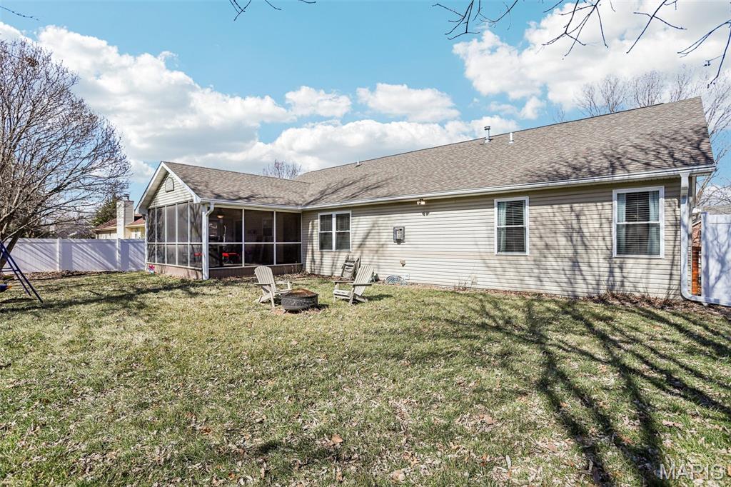 Beautifully updated and move-in ready, this spacious home blends modern finishes with flexible living space. The bright kitchen features a large island with storage on both sides, updated sink, new stove, microwave in the island, custom hood vent, built-in cabinetry around the refrigerator, and a walk-in pantry. The main living area is anchored by a cozy gas fireplace and enhanced by updated lighting and luxury vinyl plank flooring throughout. The primary suite offers a walk-in closet and a spa-like bath with dual vanities, updated fixtures, private toilet area, linen closet, and an oversized tiled shower with three shower heads, bench seating, built-in storage, and glass door. Secondary bedrooms are generously sized with fan chandeliers. The guest bath includes tiled flooring, tiled shower/tub combo, large vanity, and linen closet. The finished basement provides exceptional bonus space with a large media room, spacious rec room, full bath, countertops and sink for entertaining, a bonus room with a closet, additional workout/bonus room with two storage closets, and a large unfinished storage area with built-in shelving. Enjoy outdoor living on the screened-in porch with heater overlooking the fenced backyard. Additional highlights include a 2-car garage with rear storage and backyard access, large laundry room, multiple hall storage closets, HVAC new in 2024, and roof approximately 5 years old. Open House Feb 28 11am-2pm. Private showings open after. Submit offers by 6pm Monday March 2, seller will respond by March 3.