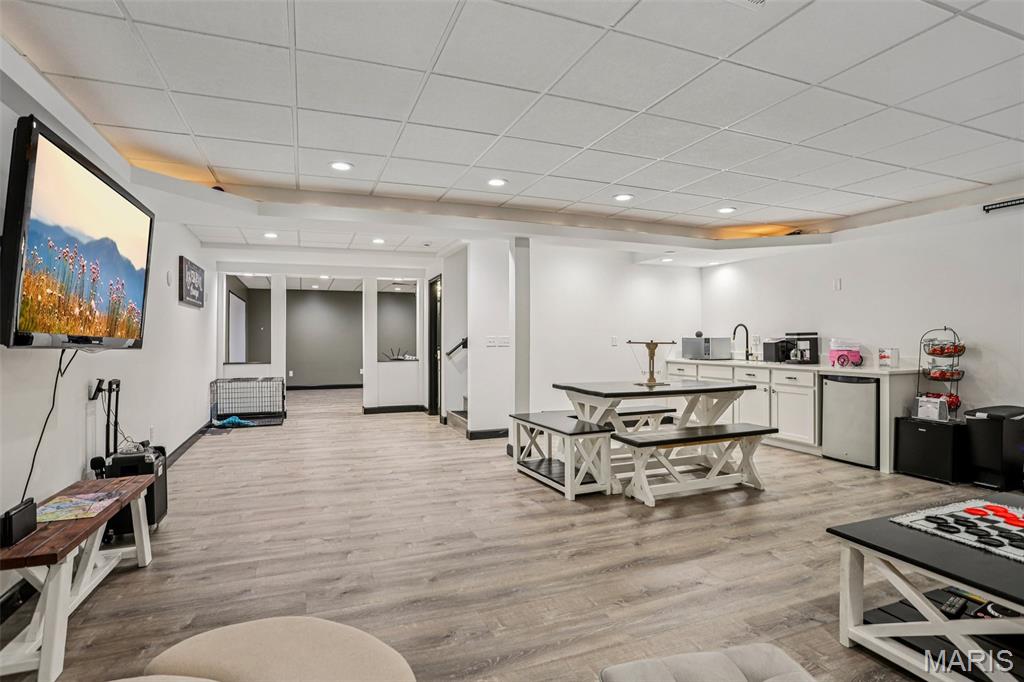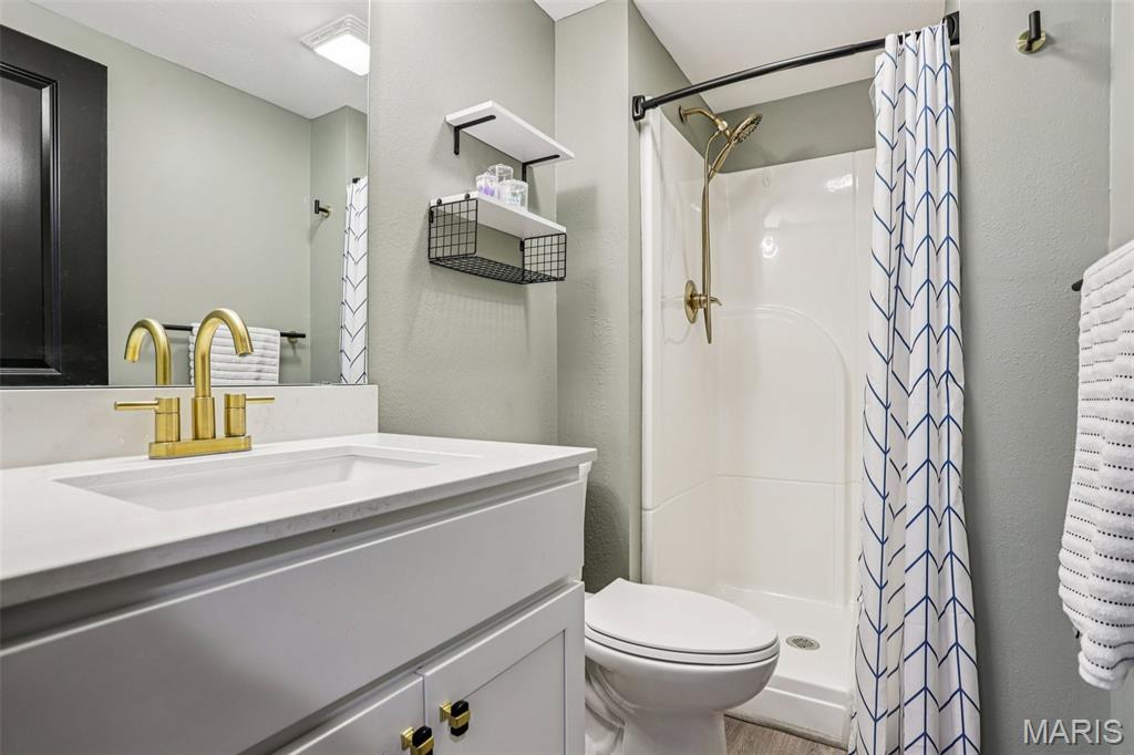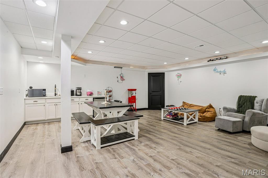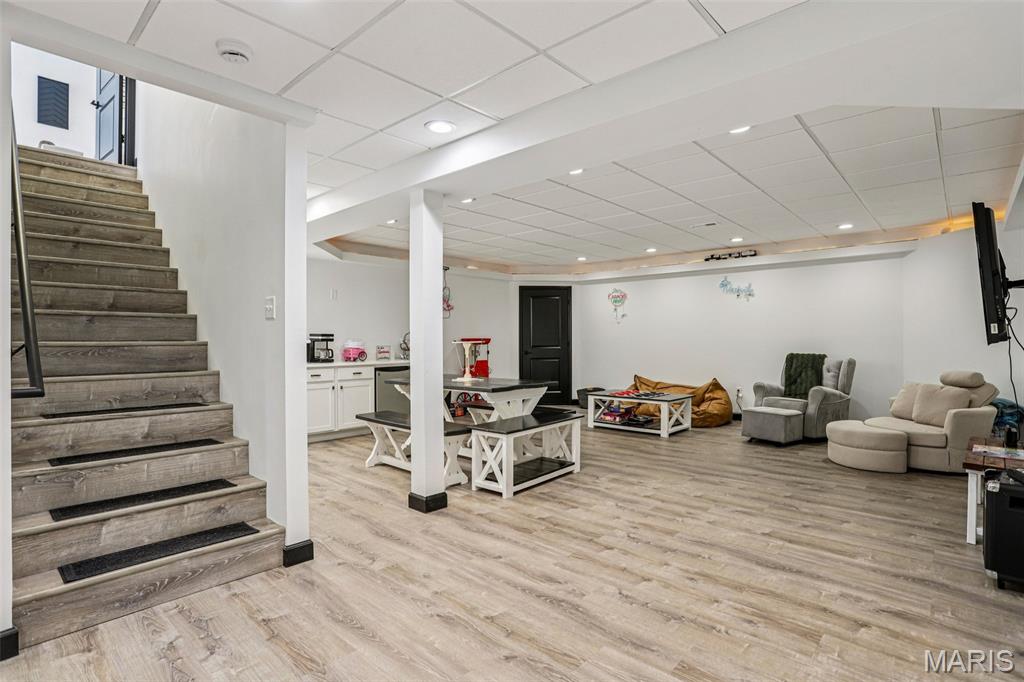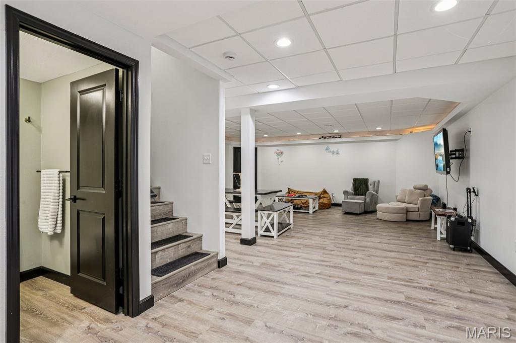 Beautifully updated and move-in ready, this spacious home blends modern finishes with flexible living space. The bright kitchen features a large island with storage on both sides, updated sink, new stove, microwave in the island, custom hood vent, built-in cabinetry around the refrigerator, and a walk-in pantry. The main living area is anchored by a cozy gas fireplace and enhanced by updated lighting and luxury vinyl plank flooring throughout. The primary suite offers a walk-in closet and a spa-like bath with dual vanities, updated fixtures, private toilet area, linen closet, and an oversized tiled shower with three shower heads, bench seating, built-in storage, and glass door. Secondary bedrooms are generously sized with fan chandeliers. The guest bath includes tiled flooring, tiled shower/tub combo, large vanity, and linen closet. The finished basement provides exceptional bonus space with a large media room, spacious rec room, full bath, countertops and sink for entertaining, a bonus room with a closet, additional workout/bonus room with two storage closets, and a large unfinished storage area with built-in shelving. Enjoy outdoor living on the screened-in porch with heater overlooking the fenced backyard. Additional highlights include a 2-car garage with rear storage and backyard access, large laundry room, multiple hall storage closets, HVAC new in 2024, and roof approximately 5 years old. Open House Feb 28 11am-2pm. Private showings open after. Submit offers by 6pm Monday March 2, seller will respond by March 3.