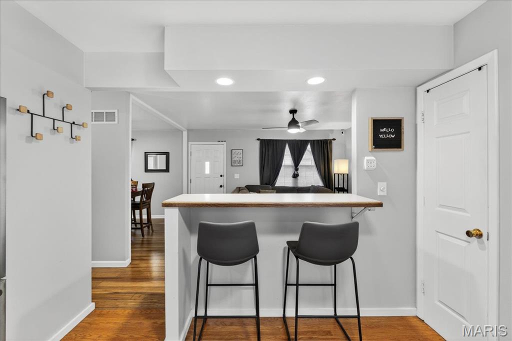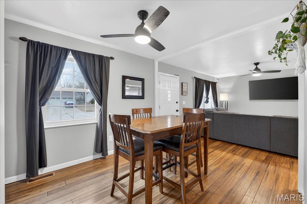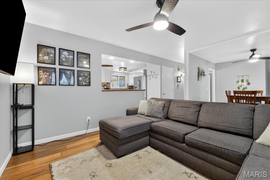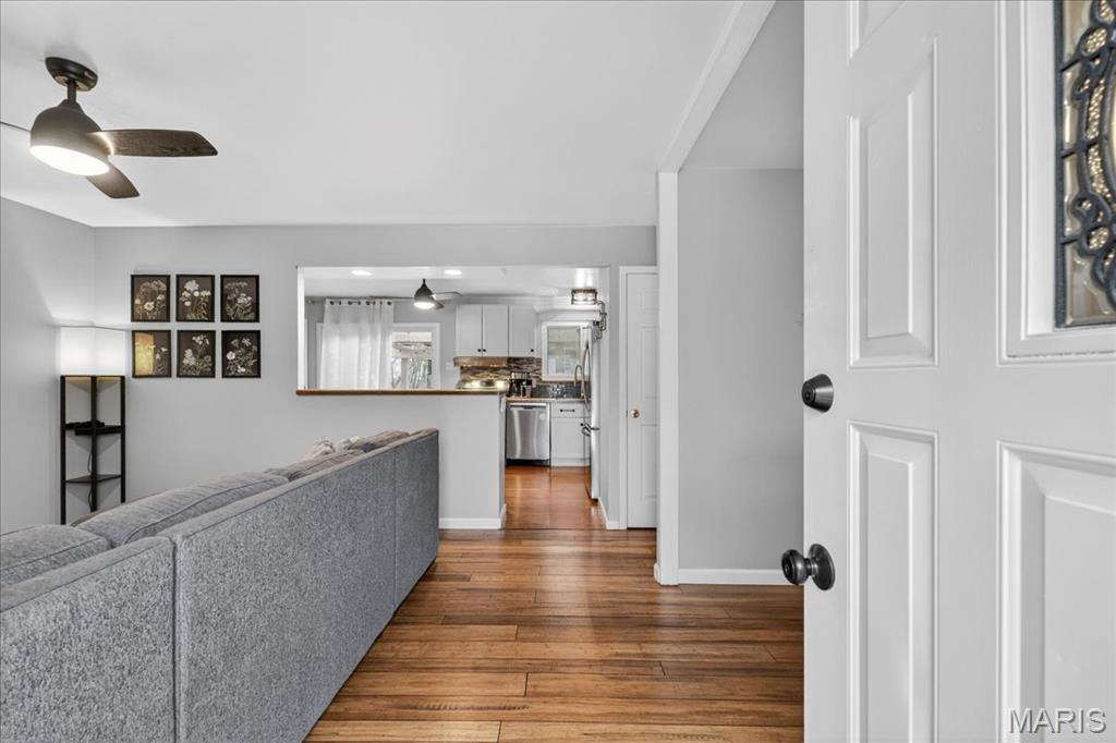 Welcome to 1332 Ramona Lane, where comfort meets convenience in the heart of St. Charles. This charming ranch-style home offers easy one-level living with a warm and inviting feel from the moment you step inside. The spacious living and dining areas flow seamlessly together, creating the perfect setting for everyday life and entertaining, while the kitchen features custom cabinetry, stainless steel appliances, and a breakfast bar that keeps everyone connected. Two comfortable bedrooms and a full bath complete the main level, offering a practical and welcoming layout. The partially finished walk-out lower level adds incredible versatility with a large recreation space and an additional full bath ideal for guests, hobbies, or cozy movie nights. Outside, enjoy a private backyard that adjoins a wooded area, providing a peaceful backdrop for morning coffee or evening gatherings. A covered carport, extra storage shed, and access to common ground add even more convenience. Located with easy access to shopping, dining, and major highways, this home blends charm, functionality, and value in a desirable St. Charles location.