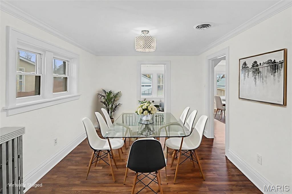 Desirable and professionally renovated home with high grade finishes including refinished dark oak floors, new everything in kitchen and bath. New Frigidaire Gallery Series stainless fridge, microwave , dishwasher and gas oven/range. Completely repainted interior top to bottom throughout with crown molding and current trend lighting. Side driveway provides easy access to detached garage with gated chain link fence that surrounds large level yard and new deck off the kitchen. Airy and bright home with newer thermal windows throughout with central air for the hot days of Summer. Newer Weil-McLain boiler is the most perfect even heat solution to our sub-zero St. Louis Winters. Accented with charm, this one is sure to please. Located in the highly rated Richmond Heights/Maplewood Schools District.