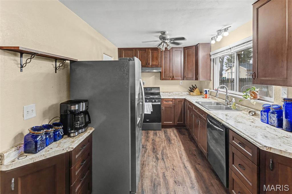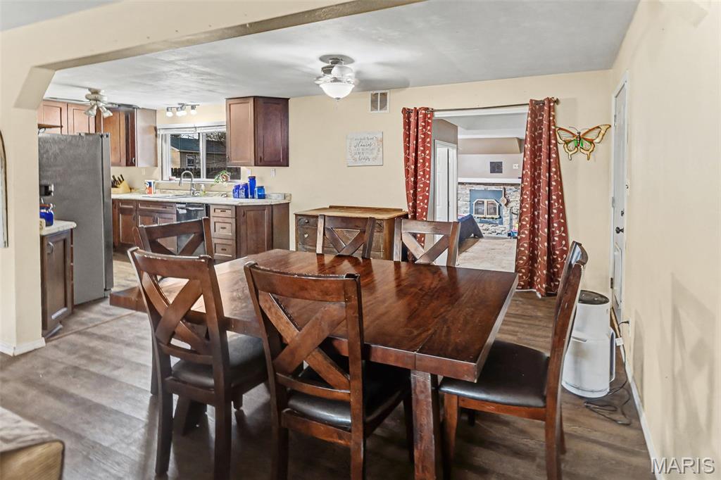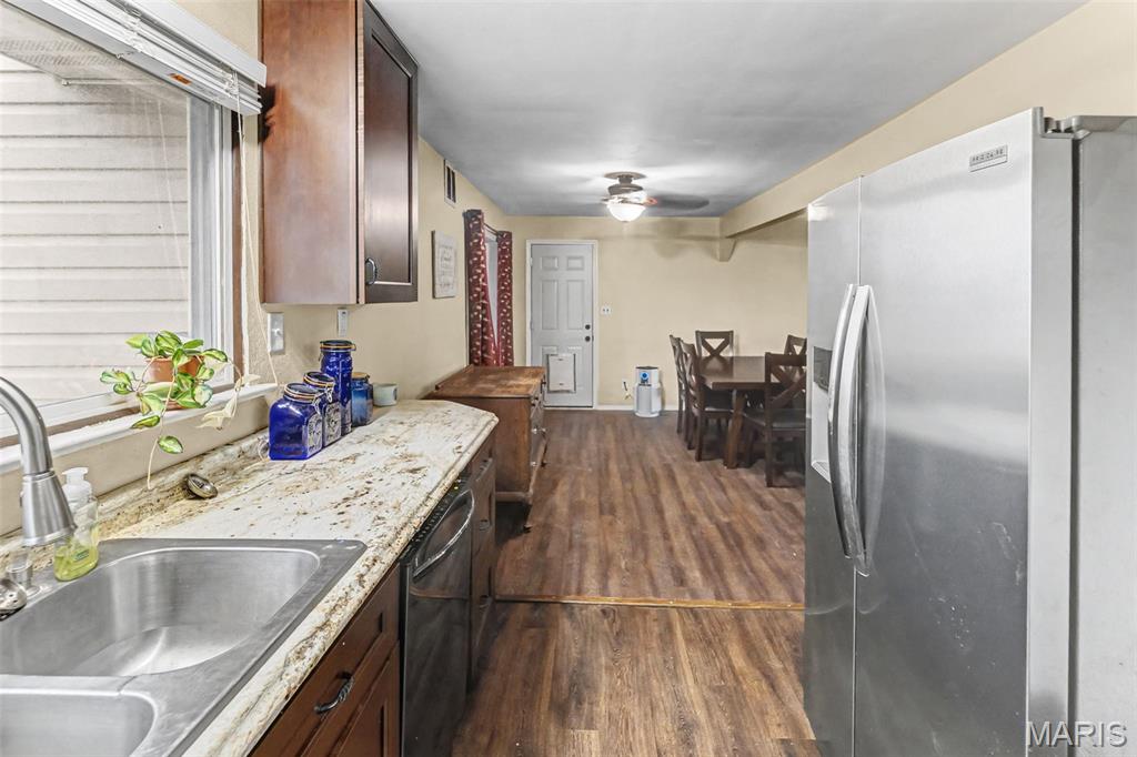 Welcome home to this beautifully updated one-story gem with a huge, fully fenced backyard! This versatile home offers 3 bedrooms, 2 full baths, a spacious living room, a family room, and dedicated dining space—perfect for both everyday living and entertaining. Major updates completed in 2022 and 2026 include siding, soffit, gutters, roof, LVP flooring throughout, interior doors, and fully updated kitchen and baths, giving this home a modern, move-in-ready feel. The eat-in kitchen features soft-close cabinetry, a walk-in pantry, gas stove, stainless steel dishwasher, and a stainless steel refrigerator (2024)—ideal for both function and style. The family room is currently being used as a fourth bedroom but easily converts back to a cozy second living space, complete with a wood-burning fireplace and egress to the backyard. Additional highlights include an attached oversized one-car garage with laundry area, utility sink, abundant storage, and attic access. Step outside to enjoy the covered back porch, perfect for entertaining, overlooking the large, private, fully fenced yard—ideal for pets, play, and gatherings. This home offers flexibility, space, and updates—don’t miss your chance to make it yours!