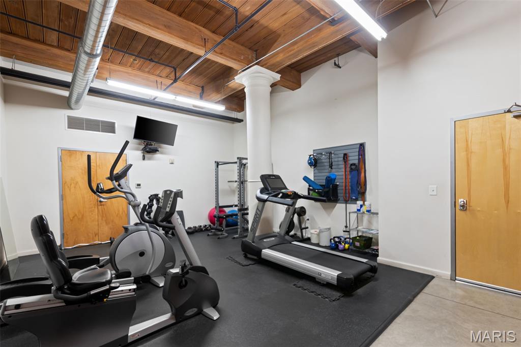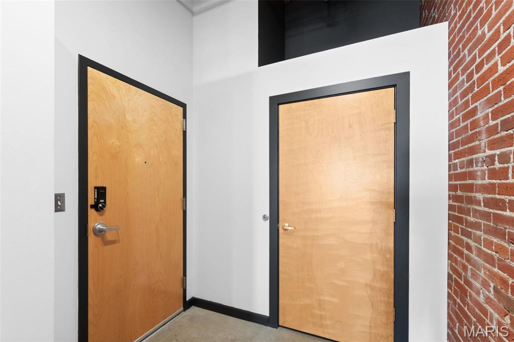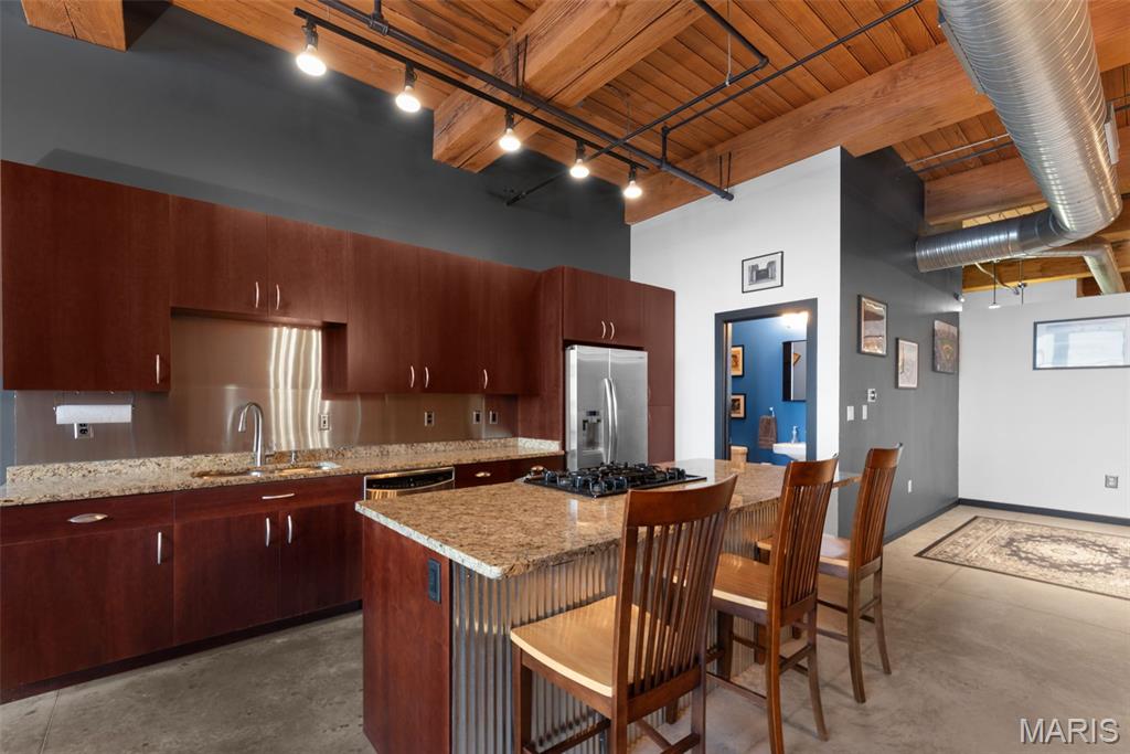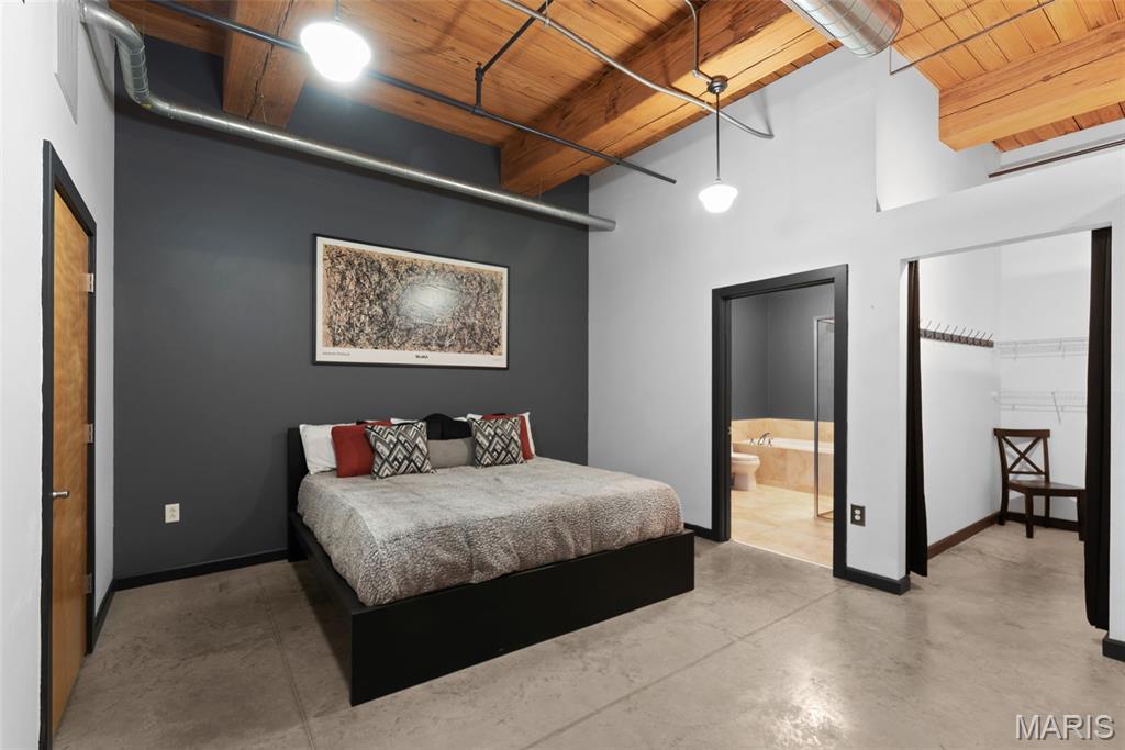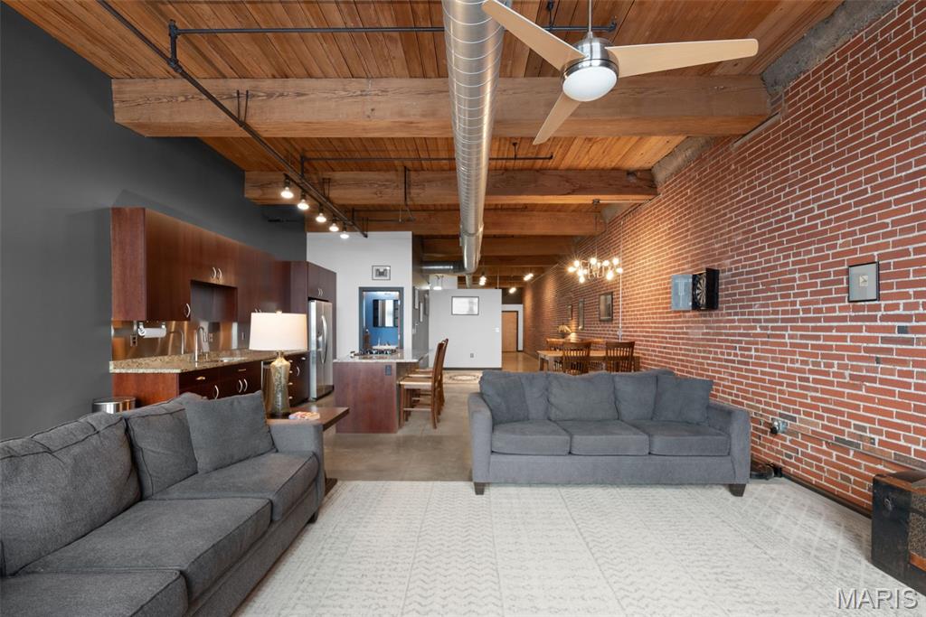 Urban Chic – Stylish Loft Living in the Heart of Downtown! Experience the STL city life in this remarkable loft at The Dorsa Lofts. Spacious and airy, Unit #609 offers 1,334 sq ft of exceptional living designed for the true urban enthusiast. Enjoy classic loft features including exposed brick walls, authentic timber beam ceilings and columns, polished concrete floors, oversized windows, and so much more. Step onto your private balcony for panoramic, unobstructed city views that elevate everyday living. Love to entertain? The gourmet kitchen is ideal for hosting, complete with custom cabinetry, granite countertops, and a generous center island with seating for four or more, and a convenient half bath for your guests. Relax in the Primary Bedroom Suite, featuring a walk-in closet and a contemporary bathroom with a separate shower and deep soaking tub. Additional perks include climate-controlled garage parking and extra storage—at no additional cost. Residents also enjoy access to a fitness center and a rooftop deck. Blending historic character with modern amenities, Dorsa Lofts offers more than a home—it delivers a lifestyle. No additional assessments in this building. New building security system to be installed per the HOA. Location: City, Interior Unit, Upper Level