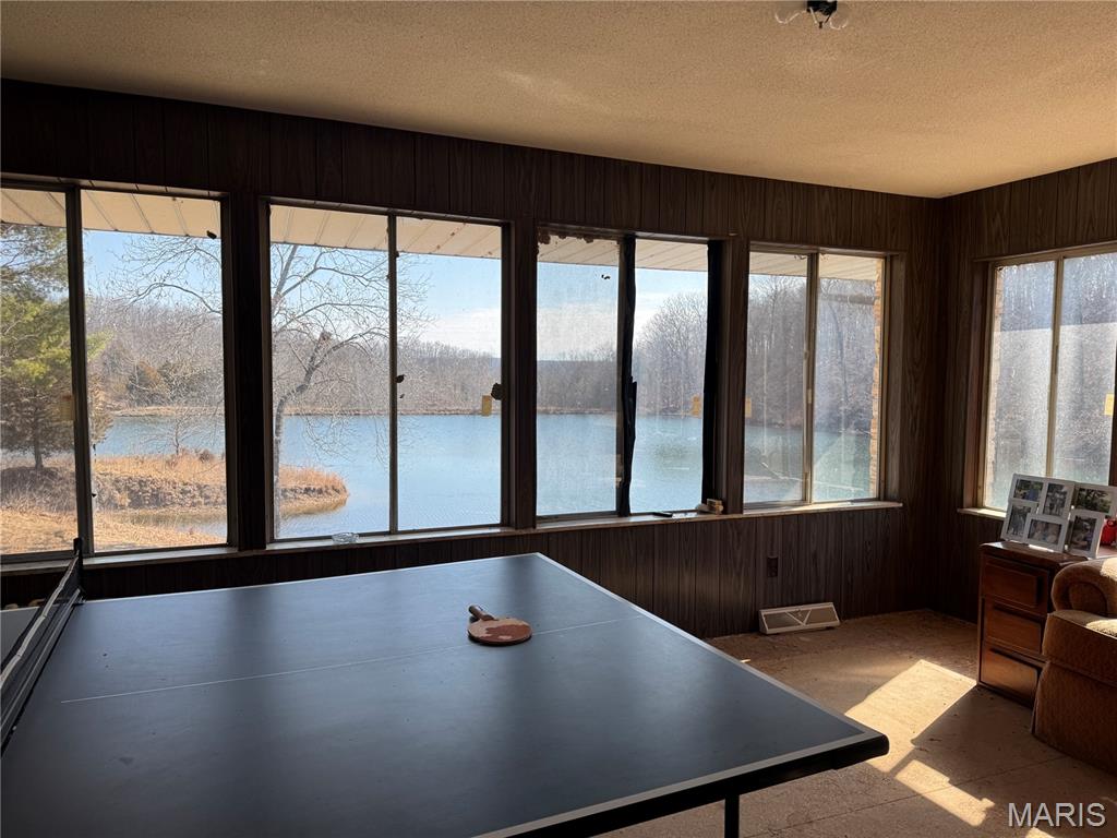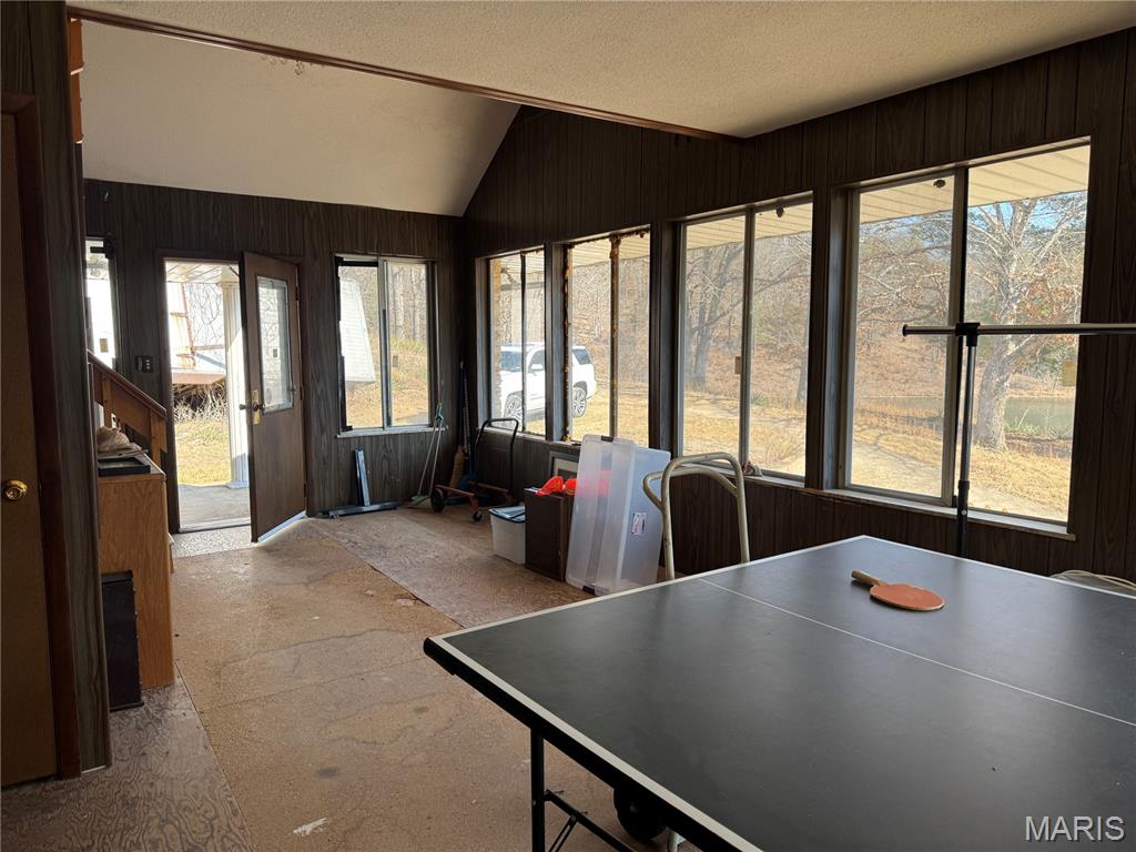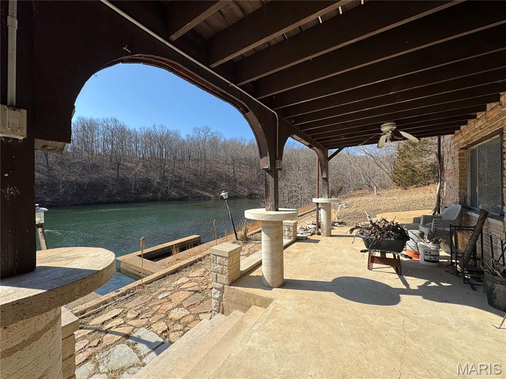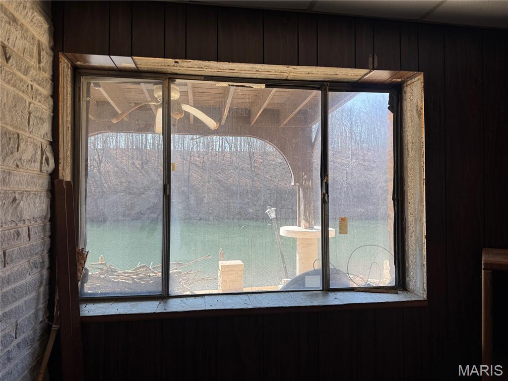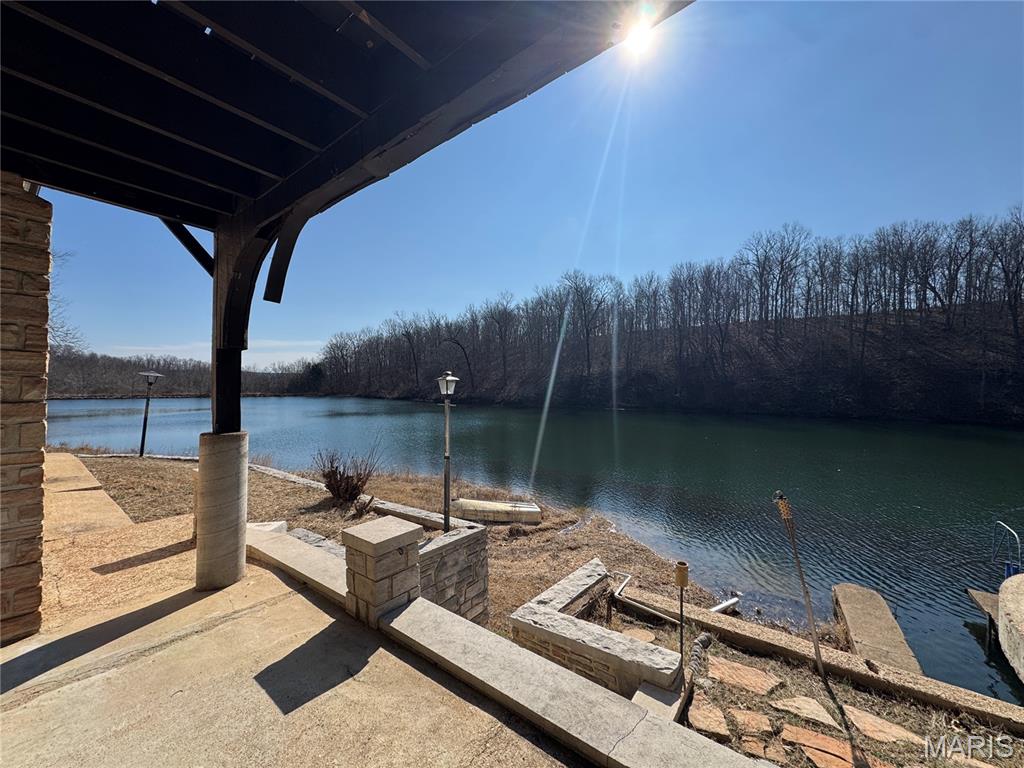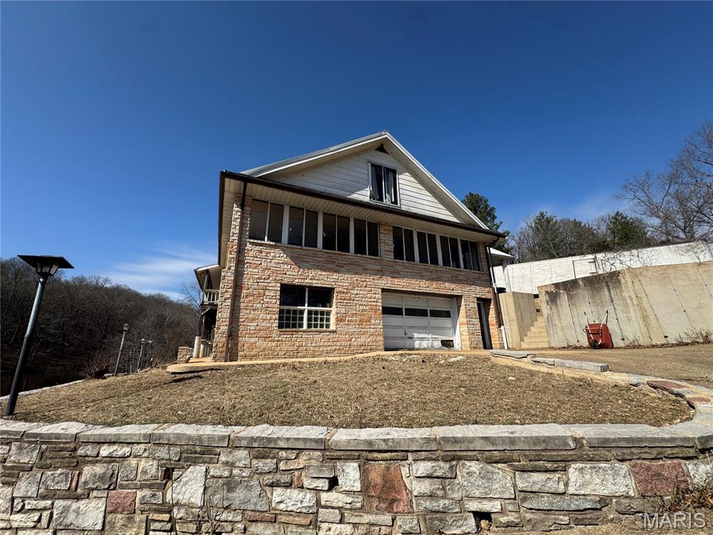 Two parcels of property, one address. 3,186 sq.ft. house on 13.95+/- acres and adjoining 44.3+/- acres. All paved until short stint on Chapel Park and the long driveway leading to the house. House is currently "weekend livable" with a functional kitchen and one working bathroom and shower. Most of the house is under renovation and not complete. On the Main level (with two entrances from driveway), you'll find brand new french doors leading to the Living Room, Primary Suite with walk-in closet, Family Room with beautiful floor to ceiling stone fireplace, Laundry Room and Game Room (with second entrance) and deck access. All of these rooms are paneled and/or drywall, taped/mudded and need flooring. The Main floor full bath is gutted. The Main floor half bath has non-working fixtures. The Upper level consists of four generously sized bedrooms (one loft style on the left end with closet and lake view; two lake front with generous closets and another on the right hand end with lake view). All of these upper level rooms are all paneled and/or drywalled, taped/mudded and need flooring. The walkout basement has a lakefront kitchen with tiled island, breakfast area, wet bar, second Family Room and beautiful floor to ceiling stone fireplace and shower/changing room/bathroom with outside access. Another door walks out to the porch with outdoor wood burning fireplace and concrete bar-height tables and is just a few steps away from the built-in shuffleboard area and lake, concrete “dock” with diving board, boat slip and ramp. The 15 +/- acre lake (with dam and spillway) is fed by 2 springs, stocked with many types of fish and perfect for swimming, canoeing, diving and even jet skiing. This property has been in the family for 60+ years and started out with a camper/trailer with stone retaining wall that is now part of the front basement foundation wall. With some sweat equity, this one-of-a-kind property would be perfect for recreational weekend use, full-time living, hunting, fishing, four-wheeling, target practice, etc. There's an abundance of wildlife including turkey and deer. Two car over-sized garage. Two 200-amp panels, 3 furnaces (2 non-working per owner); had central air (damaged outside units removed) and currently using window A/C units, private well, water softener, chlorinated septic system. There's also a newer metal roof, some newer windows. You'll find an overgrown road/trails from the house around half the lake perfect for dirt bikes or a side-by-side. Lots of Oak, Pine and Walnut trees, per Seller.