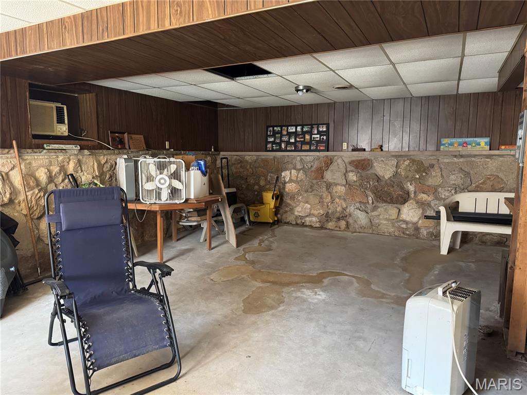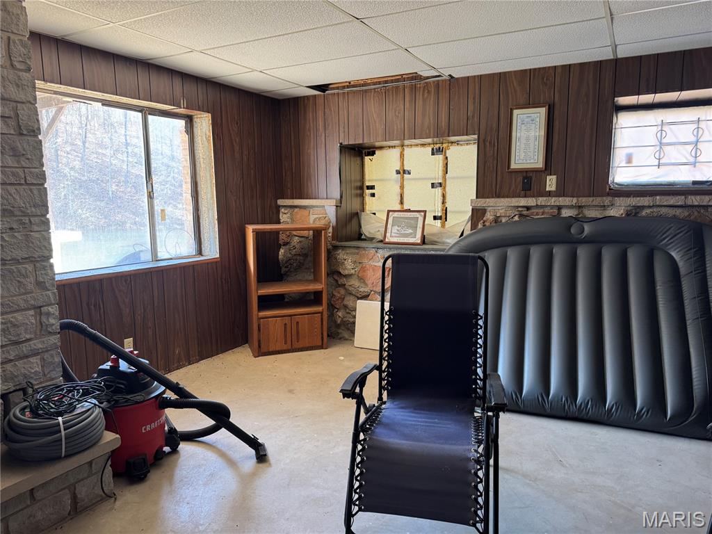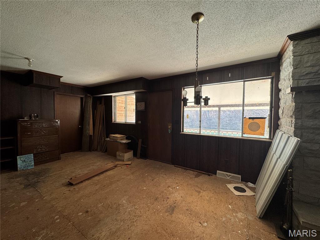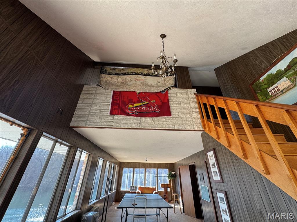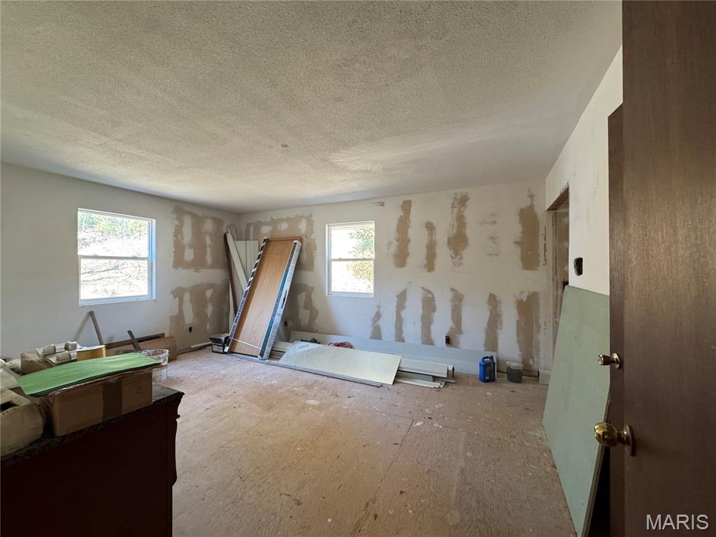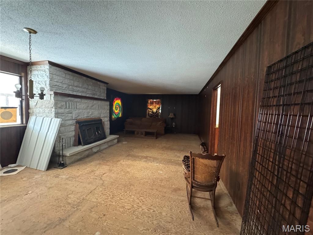 Two parcels of property, one address. 3,186 sq.ft. house on 13.95+/- acres and adjoining 44.3+/- acres. All paved until short stint on Chapel Park and the long driveway leading to the house. House is currently "weekend livable" with a functional kitchen and one working bathroom and shower. Most of the house is under renovation and not complete. On the Main level (with two entrances from driveway), you'll find brand new french doors leading to the Living Room, Primary Suite with walk-in closet, Family Room with beautiful floor to ceiling stone fireplace, Laundry Room and Game Room (with second entrance) and deck access. All of these rooms are paneled and/or drywall, taped/mudded and need flooring. The Main floor full bath is gutted. The Main floor half bath has non-working fixtures. The Upper level consists of four generously sized bedrooms (one loft style on the left end with closet and lake view; two lake front with generous closets and another on the right hand end with lake view). All of these upper level rooms are all paneled and/or drywalled, taped/mudded and need flooring. The walkout basement has a lakefront kitchen with tiled island, breakfast area, wet bar, second Family Room and beautiful floor to ceiling stone fireplace and shower/changing room/bathroom with outside access. Another door walks out to the porch with outdoor wood burning fireplace and concrete bar-height tables and is just a few steps away from the built-in shuffleboard area and lake, concrete “dock” with diving board, boat slip and ramp. The 15 +/- acre lake (with dam and spillway) is fed by 2 springs, stocked with many types of fish and perfect for swimming, canoeing, diving and even jet skiing. This property has been in the family for 60+ years and started out with a camper/trailer with stone retaining wall that is now part of the front basement foundation wall. With some sweat equity, this one-of-a-kind property would be perfect for recreational weekend use, full-time living, hunting, fishing, four-wheeling, target practice, etc. There's an abundance of wildlife including turkey and deer. Two car over-sized garage. Two 200-amp panels, 3 furnaces (2 non-working per owner); had central air (damaged outside units removed) and currently using window A/C units, private well, water softener, chlorinated septic system. There's also a newer metal roof, some newer windows. You'll find an overgrown road/trails from the house around half the lake perfect for dirt bikes or a side-by-side. Lots of Oak, Pine and Walnut trees, per Seller.