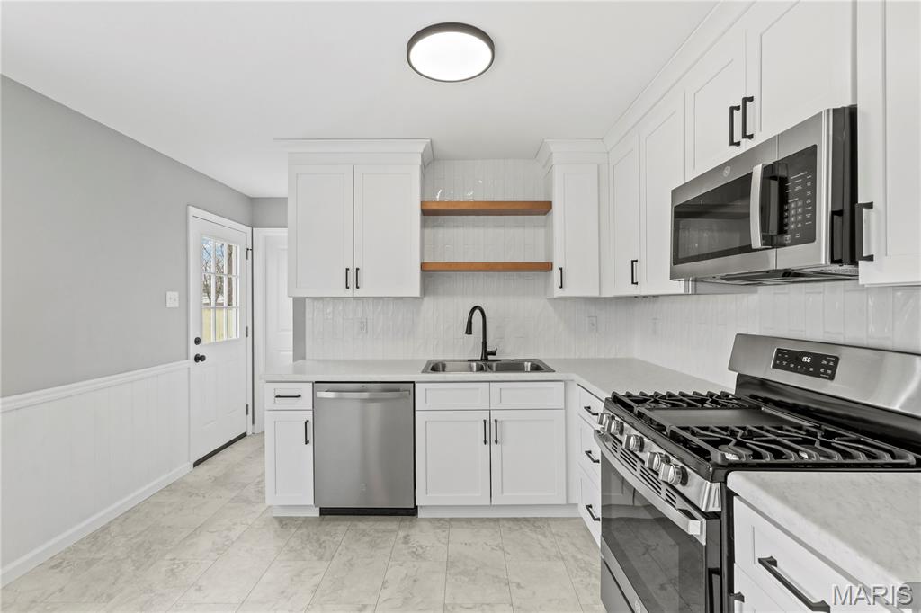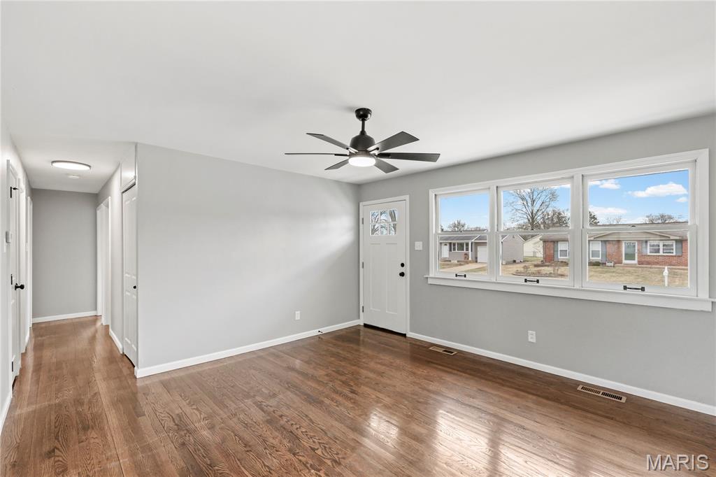 Rare opportunity in Fenton within the highly sought-after Lindbergh School District. Ideally located near major highways for an easy commute, yet tucked inside a quiet, established neighborhood. Enjoy being just minutes from the golf course, Fenton Park, the Soccer Park, and the River Walk — all part of what makes this community so desirable. This 3-bedroom, 1-bath home has been thoughtfully remodeled from top to bottom. Updates include a new roof, new concrete driveway, fully fenced yard, fresh paint throughout, and beautifully refinished real hardwood floors across most of the home. The kitchen has been completely updated with 42” cabinetry featuring crown molding, a large pantry cabinet for added storage, and a clean, modern finish. The bathroom has also been refreshed with a tiled shower surround and new vanity. Move-in ready and meticulously updated, this Fenton home offers both quality improvements and an unbeatable location.
