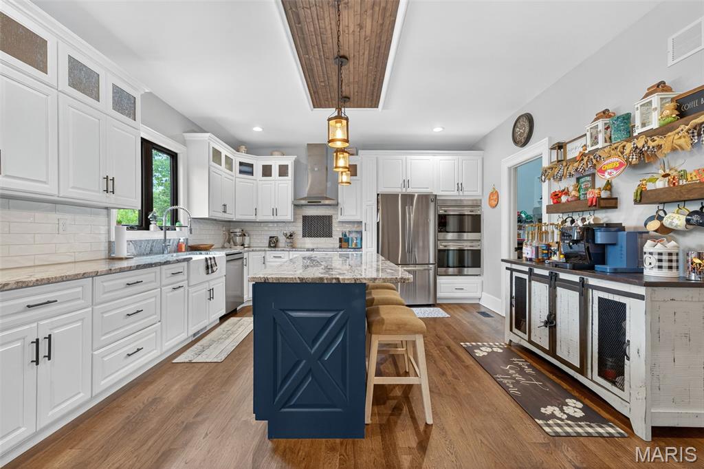 Bar,Crown Molding,Custom Cabinetry,Dining/Living Room Combo,Eat-in Kitchen,Granite Counters,Open Floorplan,Pantry,Walk-In Closet(s),Walk-In Pantry,Workshop/Hobby Area