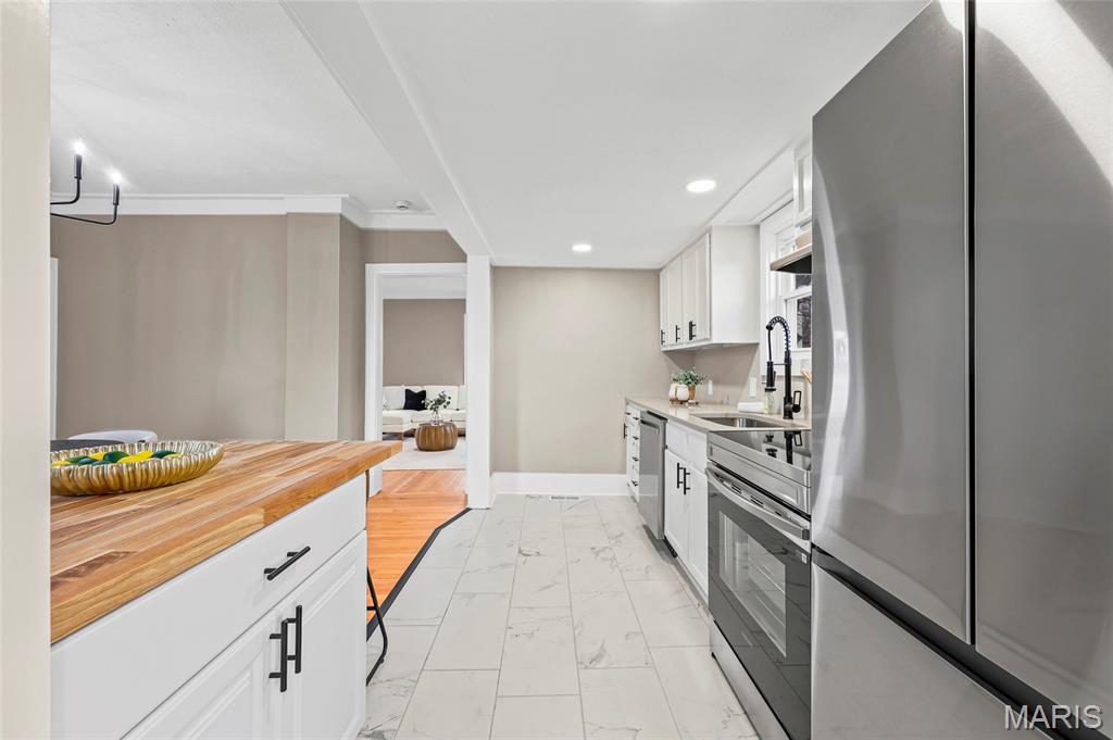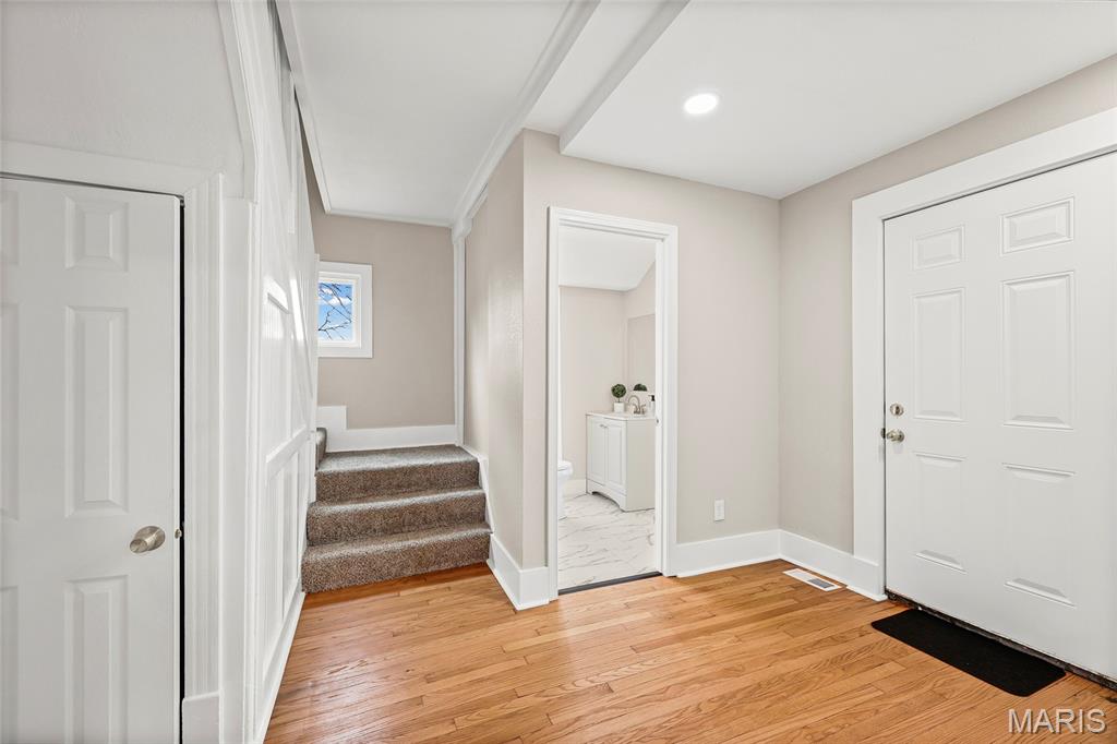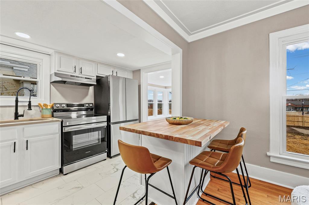 One of a kind - you will LOVE this stunning 3 bed, 2.5 bath home on a HUGE private corner lot in the heart of town!! Inviting covered front porch with a beautiful front door welcomes you to the inside. As you enter you'll be greeted by a LARGE living room with warm hardwood flooring, natural sunlight and a wood burning fireplace! Great layout - a separate dining room opens up to the gorgeous kitchen with all new stainless steel appliances, butcher block & granite countertops and plenty of cabinetry. Main floor laundry included in the convenient mudroom! Thoughtful finishes and updates throughout - including new HVAC, electrical, plumbing & more. Hallway leads you to the half bath on the main level and to the staircase to the upstairs of this beautifully renovated home. Spacious primary suite with private bath and lots of room. Two spacious bedrooms with ample amount of closet space and a full bath round up the second level. Lower level is unfinished and has BIG corner lot - this backyard is amazing! Fully privacy fenced, incl. a gate leading to a two car parking pad. Back patio is great for BBQ hangouts, morning coffee or simply to unwind after a long day. This backyard is a gardener's dream and perfect for pets. Outstanding location - close to everything Festus has to offer including Main Street, bars, shops, restaurants, parks, schools+++ Move-in Ready for you, comes with a passed occupancy inspection & a Home Warranty! CALL NOW