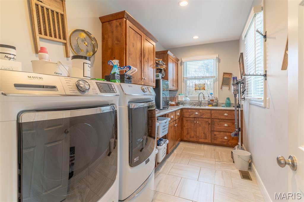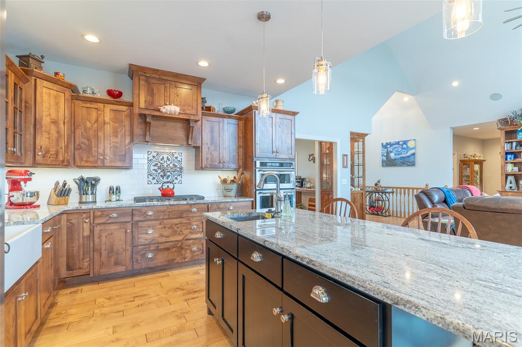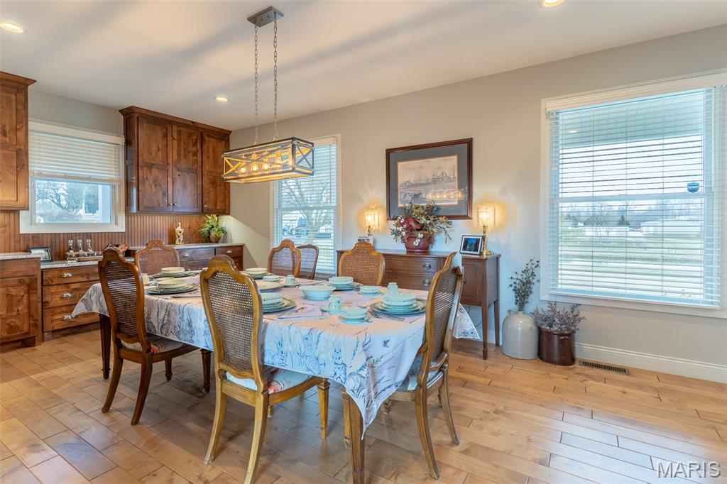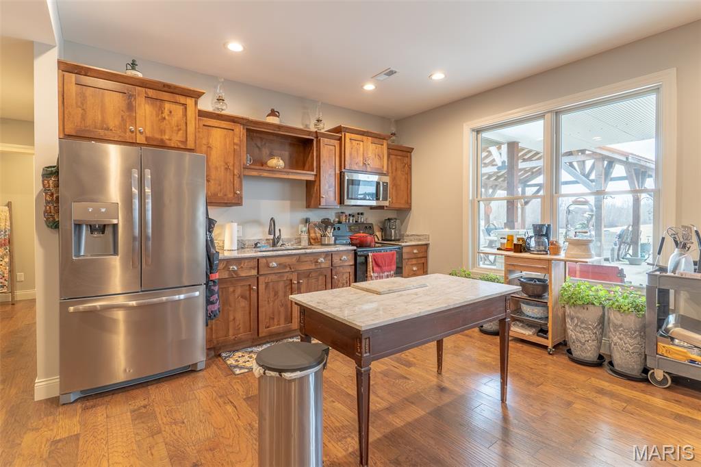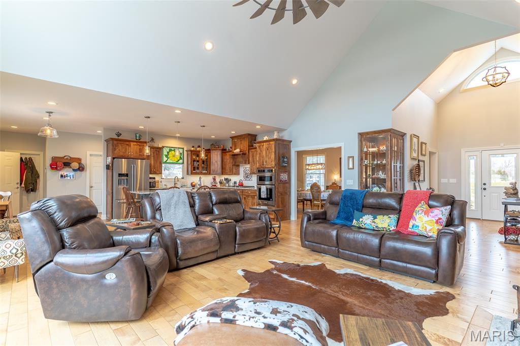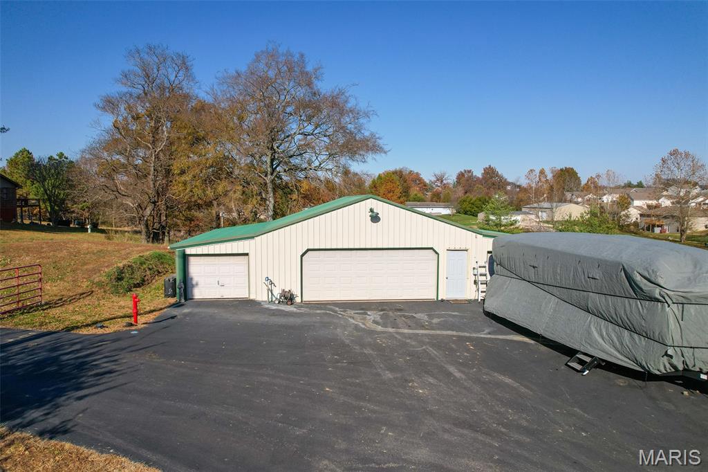 Outdoor Living Country Estate This Outdoor Living Country Estate Home is located just 2 miles outside of Jackson City limits, set on 19.07+/- acres and features an end-of-the road privacy with three stocked ponds, a separate shed with living quarters, a barn, and a live water creek. All this is included with another potential build site for those who may be seeking a multi-family property. Nestled on this expansive land tract is an impressive four-bedroom, four-bath residence boasting approximately 3,992 square feet of living space. The home features custom quality cabinetry not only in the kitchen, but with built-ins throughout all the living areas. This traditional home offers the convenience of main-level laundry, a fireplace in great room, a formal dining room, a spacious three-car garage, and a Generac whole-house generator to always ensure that you have electric power. There is a fully finished walk-out basement, providing ample room for entertainment, recreation, and an additional living quarters for larger families, extended family, or visiting guests. Designed for both comfort and style, the house also provides for an enjoyable outdoor living space with a covered deck just outside the master bedroom, perfect for relaxing evenings or morning coffee while overlooking the picturesque landscape. Additionally, there is a large outdoor entertainment area with a covered Pergola and a sitting area to host guests. Every detail in this home is crafted to blend modern luxury with the tranquility of country living, making this estate a truly exceptional find. Back outdoors, there is a bonus 30’x50’ shop house with a kitchenette, shower, and bathroom. There is also a 40’x50’ barn providing open space for storage or could be easily built out to support livestock or animals. Or could easily be converted into horse stalls, a feed room, and a tack room, along with adding some basic outdoor fencing to create a perfect horse property. Each building features a concrete floor throughout. This high-end estate country home, located within the desirable Jackson R-2 school district, provides for the outdoor spacious living that many are seeking in the county, yet a quick drive to town.