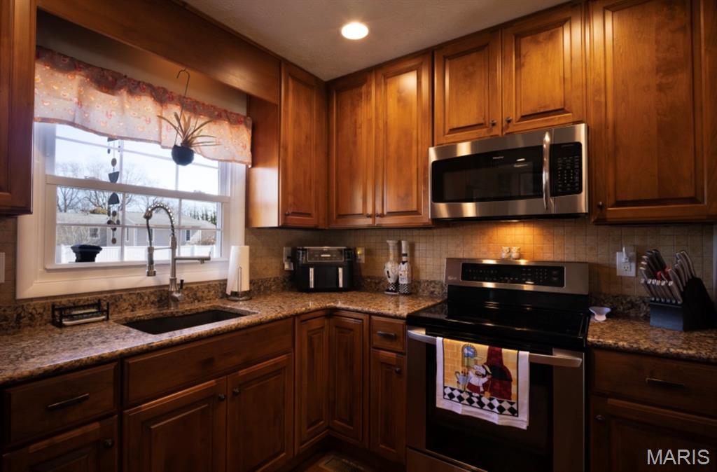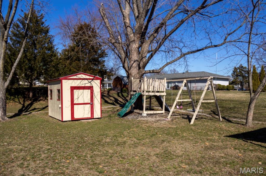 Impeccably maintained 4 bed, 3 bath home sitting on a spacious double lot near the schools. Surrounded by mature trees, the backyard is made for relaxing with low-maintenance composite decking and plenty of room to enjoy. There’s even a separate guesthouse/playhouse with a bedroom — perfect for a she shed, game room, hangout spot, or whatever fits your needs. Step inside to an open concept kitchen and living area featuring stainless steel appliances and granite countertops. Three bedrooms are upstairs, with one bedroom downstairs along with a cozy family/bonus room with a fireplace. You’ll also appreciate the laundry room and mudroom for everyday convenience. Attached one-car garage plus extra parking on the concrete driveway. Tons of space to grow and truly make it your own in this very well cared for home. Seller has already completed a property inspection — this home is turn key and ready for you.