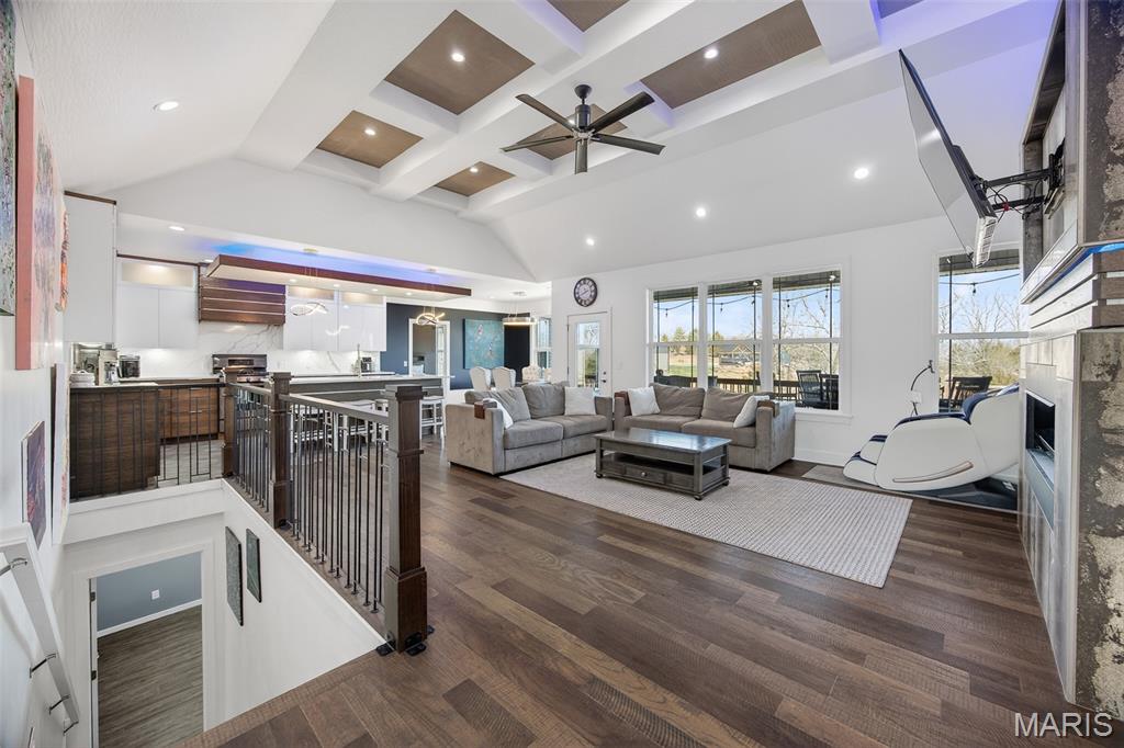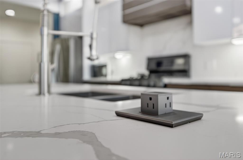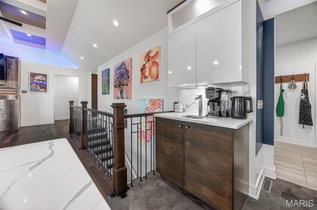 Welcome to this BEAUTIFUL, contemporary, modern, 6 bedroom home! This home has many features that are hard to find in other homes. Features like, leather inlays, floating vanities with lighting underneath and LED lighted mirrors in the bathrooms on main level, custom tile flooring in the kitchen, quartz countertops, custom lighting above the kitchen island and fireplace to name a few. Step out to the partially covered deck with direct city gas line hook up for your BBQ grill and hookups for a TV to watch your favorite sports. Head down to the basement that features new flooring in the huge great room, a bar with a drink fridge, finished ceiling with recessing lighting, storm room, tons of storage, and extra space for a home gym with doors leading out to the fenced backyard. Great neighborhood. Don't miss out on this one-of-a-kind home.