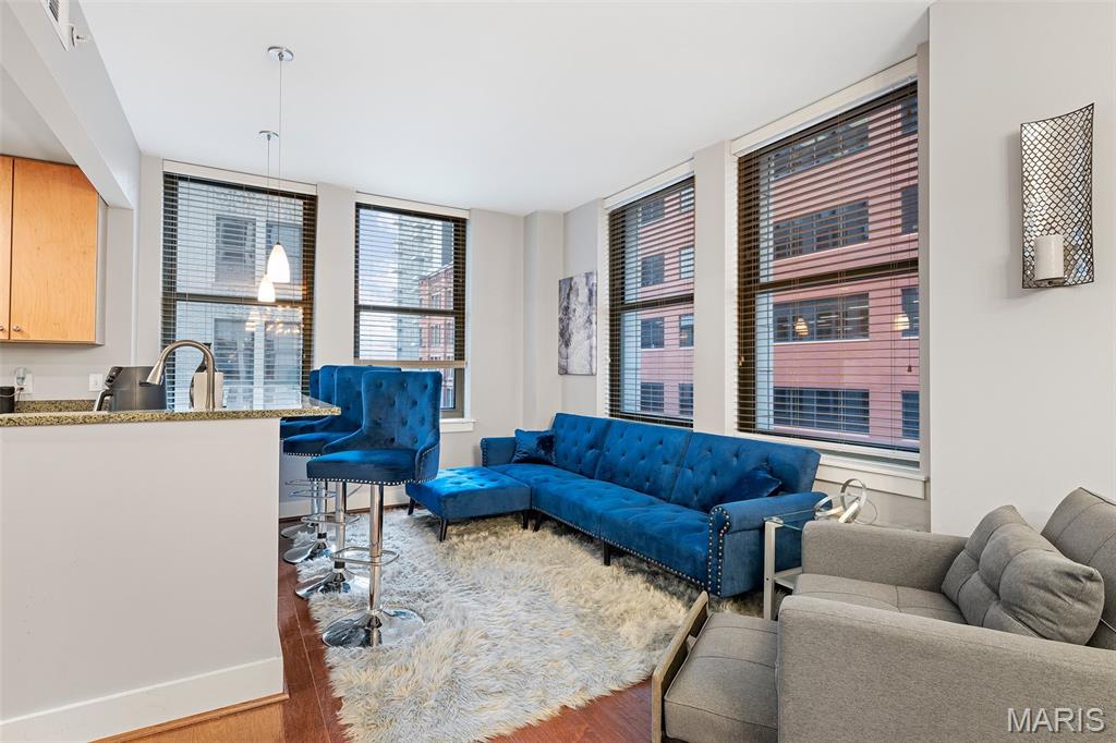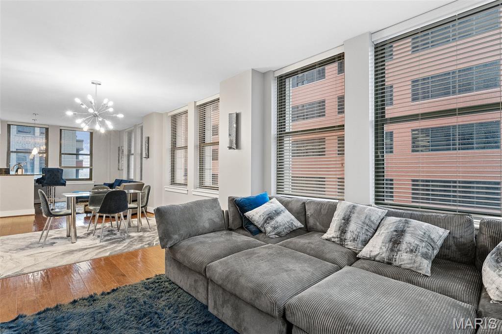 Experience the pinnacle of luxury urban living in this stunning high-rise condo located in the vibrant heart of downtown St. Louis! Offering over 1,400 sq. ft. of thoughtfully designed living space, this sophisticated residence comes fully furnished featuring two spacious bedrooms and two full bathrooms, perfectly blending comfort, style, and convenience. Wake up each morning to breathtaking skyline views. Expansive floor-to-ceiling windows flood the home with natural light, enhancing the sleek modern finishes and open, airy feel throughout. Residents enjoy the added benefit of a secured entrance for peace of mind, along with access to premier lifestyle amenities such as a resort-style swimming pool, recreation and gathering spaces, and secured parking. Ideally situated within walking distance to Busch Stadium, acclaimed restaurants, entertainment venues, and popular tourist attractions, this home offers the perfect blend of energy, elegance, and walkable city convenience. This is a rare opportunity to own one of the more spacious units in the building and embrace the elevated lifestyle that downtown St. Louis has to offer. Schedule your private showing today and experience luxury city living at its finest.