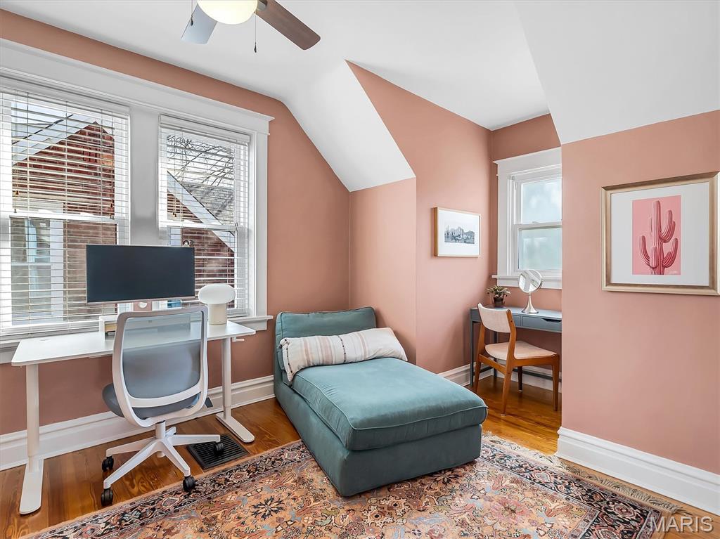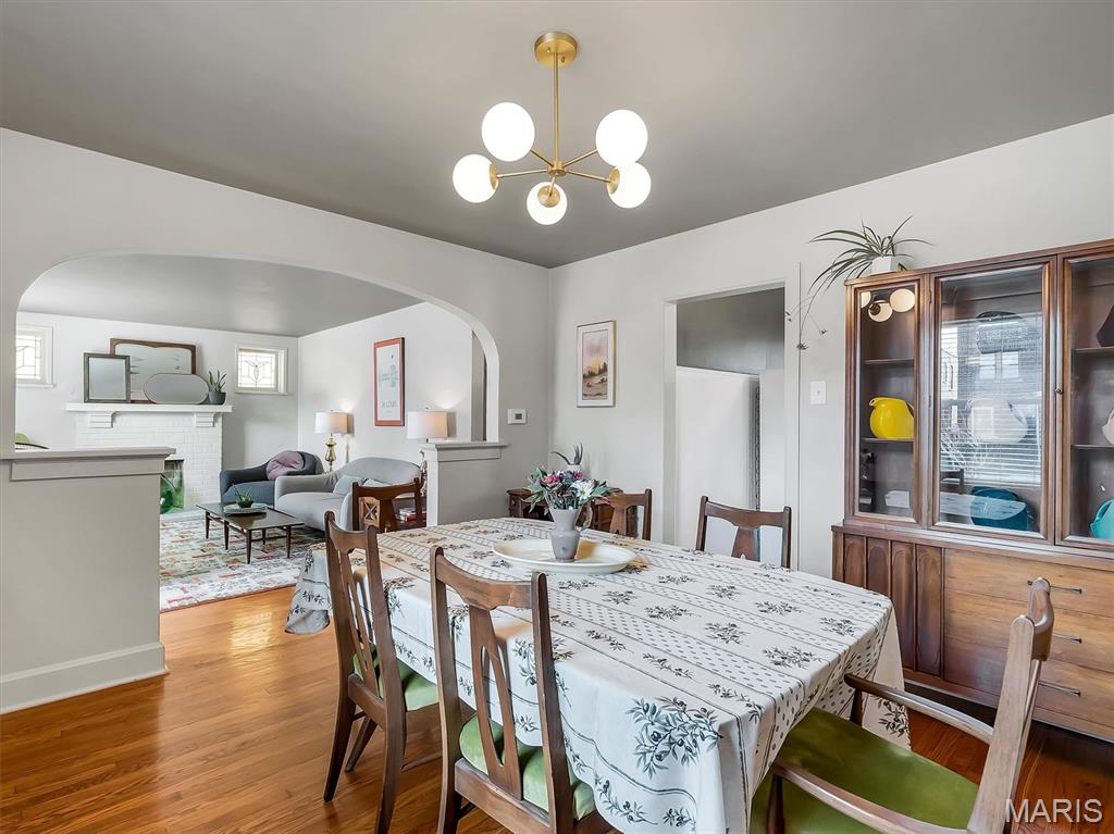 This charming storybook Craftsman/Tudor Revival home is filled with timeless character and delightful period details, including original woodwork, sloped cathedral ceilings, and beautiful stained-glass windows. Inlaid hardwood floors welcome you into the sun-filled living room, anchored by a decorative brick fireplace and flowing seamlessly into a separate dining area. The spacious kitchen offers abundant cabinetry, generous counter space, and extra windows for a bright, cheerful atmosphere while cooking. The main level features the primary bedroom and a half bathroom, while the upper level includes three additional bedrooms and a half bath. The unfinished basement offers abundant potential for future expansion—ideal for creating a home gym, workshop, or additional recreation space. Outside, the large fenced backyard provides plenty of room for gardening, pets, or Spring and Summer gatherings. With its historic charm, thoughtful layout, and room to grow, this home offers a wonderful environment to enjoy the Northampton neighborhood, just short drive to Tower Grove Park, and some of the best-known dining, entertainment, and nightlife St. Louis has to offer.