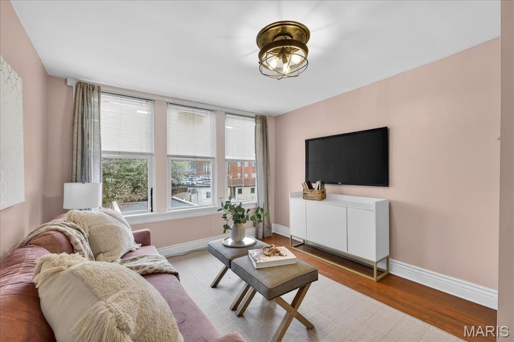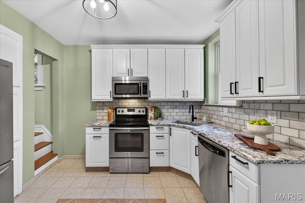 Welcome to this charming brick bungalow in the heart of Princeton Heights. This 1.5 story home blends classic St. Louis character with thoughtful updates and comfortable living spaces. Step inside to a warm and inviting living room featuring beautiful hardwood floors, stained glass windows, and a decorative brick fireplace that anchors the space with timeless charm. The main level flows seamlessly into a dedicated dining room and an updated kitchen with custom cabinetry, quartz countertops, stainless appliances, and a bright breakfast room overlooking the backyard. Upstairs you'll find a spacious primary bedroom along with additional bedrooms and a versatile bonus room that works perfectly as a home office, reading nook, or dressing area. The home also offers an updated bathroom, newer windows, and major system improvements for peace of mind. Outside, enjoy a private landscaped yard with patio space ideal for entertaining, plus a detached garage for convenient off street parking. Located on a quiet street near neighborhood parks, shops, and local dining, this home offers the perfect mix of charm, comfort, and city convenience