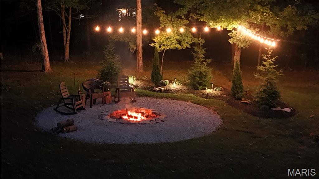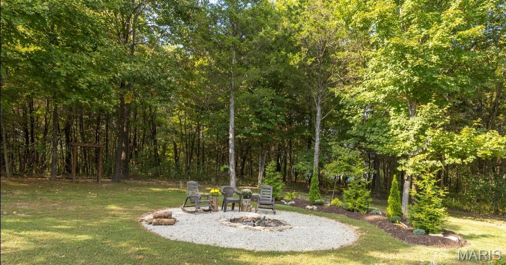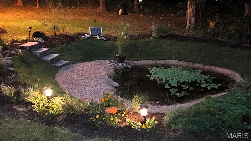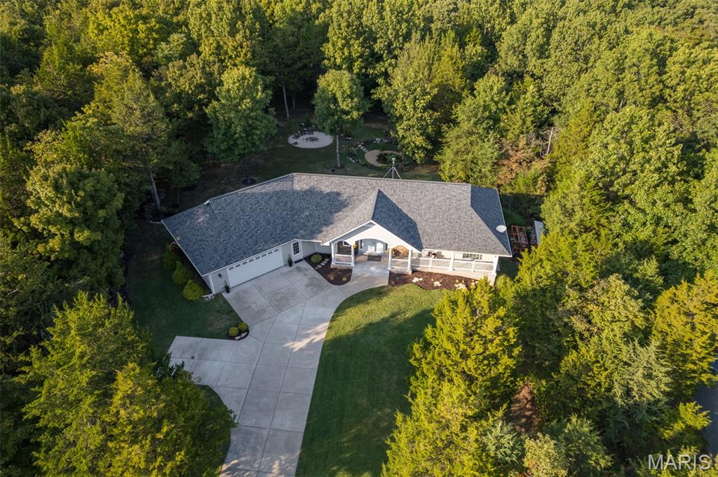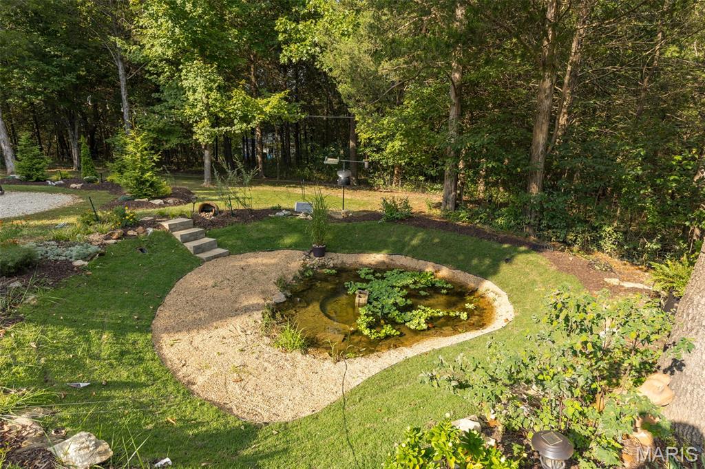 Nature lovers, come to the Forest of gated Raintree Plantation Golf & Lake community. This like-new, custom built ranch home on just under 1.5 acres features a welcoming large front door with archway and front porch the length of the home. Open floor plan with coffered ceilings, accent lighting, and abundant natural light. The kitchen offers granite countertops, a large island, and 32 cabinets with soft-close drawers. Main floor laundry includes custom laundry and storage. Very energy efficient, the oversized 2-car garage at over 1050 sq ft, provides a workbench, shelving, and extra storage, could easily host 3 cars if needed. The walk-out mother-in-law living area has a kitchen and full bath. The partial unfinished basement provides additional living or recreation space and a very large vault area under the front porch. Enjoy outdoor living with a fresh landscaping, fire pit with party lights, and a natural pond that attracts wildlife. Mature trees provide full privacy and year-round greenery. Raintree is a unique community with amenities that include 3 lakes for swimming, boating, and fishing, an 18-hole golf course, clubhouse, and restaurant, all within a secure, welcoming neighborhood.