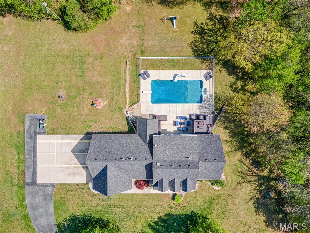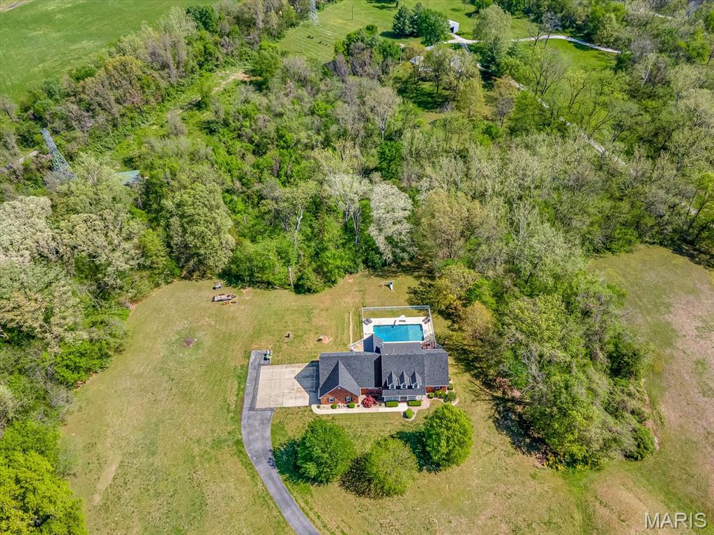 OPEN SAT 10:30a - 12:30p - Rare opportunity to own a stunning custom estate on 8.27 private acres! This exceptional 6 bed, 5 bath home offers over-the-top features inside and out, including an in-ground pool, expansive outdoor living spaces, and a 3-car oversized garage with workbench. The main level showcases an executive office with glass French doors, formal dining room, and a breathtaking family room with a two-sided gas fireplace flowing into a gourmet kitchen with center island, gas cooktop, stainless appliances, coffee bar, and spacious breakfast area. A sunroom, powder room and main-floor laundry add convenience and charm. The luxurious primary suite features deck access overlooking the pool, a two-sided fireplace, renovated spa-like bath with dual vanity, soaking tub, shower, and an incredible custom walk-in closet. Upstairs offers 4 bedrooms and 2 baths, including a Jack & Jill, plus abundant storage. The walk-out lower level includes a 6th bedroom, full bath, bar, recreation and gaming areas, storage and direct access to the resort-style salt-water, heated pool with diving board and slide. Enjoy multiple outdoor entertaining areas, large patio, expansive yard, and even a pickleball court lined out on the driveway. A truly one-of-a-kind retreat! There is so much space and so many amazing features, you will have to preview it yourself. Floor plans are included in the photos.