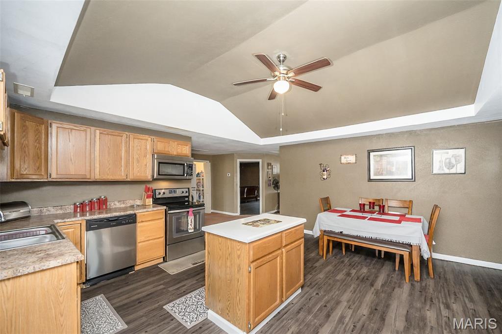 This inviting 3-bedroom ranch is designed for easy, single-level living. From the moment you walk in, the spacious living room welcomes you with eye-catching tray ceilings and a bright, open feel that makes the home both cozy and airy at the same time. The updated kitchen is ready for everyday meals or weekend gatherings, featuring modern cabinets, stylish countertops, and stainless-steel appliances that bring both function and flair. Each bedroom offers comfortable space and great natural light, creating the perfect setup for family, guests, or even a home office. The home also features several recent updates—including newer roof, HVAC, windows, and refreshed flooring—giving you added peace of mind and allowing you to move right in and start enjoying your new space. Step outside and the fun continues! The generous yard and additional lot space provide plenty of room for backyard barbecues, gardening, pets, playtime, or simply relaxing under the open sky. The deck is a perfect spot for morning coffee, evening sunsets, or hosting friends on warm summer nights. Conveniently located near schools, parks, local dining, and easy highway access, this home blends comfort, updates, and location into one great opportunity. Whether you're looking for your first home, a place to settle in, or an investment property, this charming ranch is ready to welcome its next owner.