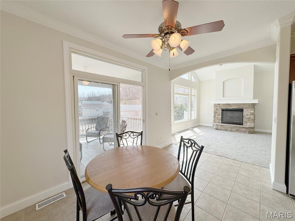 Luxury lakefront living in quiet cove on 26mm! Relax across multiple outdoor spaces, w/ gorgeous main channel views—perfect for morning coffee, sunset cocktails, & watching Margaritaville's July 4th fireworks. Just minutes from the lake’s best waterfront restaurants & attractions, just hop on the boat & let the vacation begin. Inside, this stunning open-concept retreat welcomes you with a grand hearth room featuring cathedral ceilings, gas fireplace, & dramatic windows framing breathtaking water views. Kitchen offers stainless steel appliances, breakfast bar, + sunny breakfast nook that opens to the screened-in porch overlooking the lake. The main-floor primary suite is a private sanctuary w/ its own deck for even more outdoor enjoyment and boasts coffered ceilings, large walk-in closet, spa-inspired bath w/ double sinks + jetted tub & walk-in shower. Walk-out lower level features a spacious lakeside rec room, 3 more bedrooms including a primary-style suite w/ full bath & supersized walk-in closet. Fresh Paint. New Carpet. 12x30 dock, lift + Monark Seville 24' pontoon w/150 Yamaha outboard. Boat Ramp. Paved streets- NO GRAVEL. HOA covers water/sewer. Underground utilities. Level parking 4+ & attached garage.