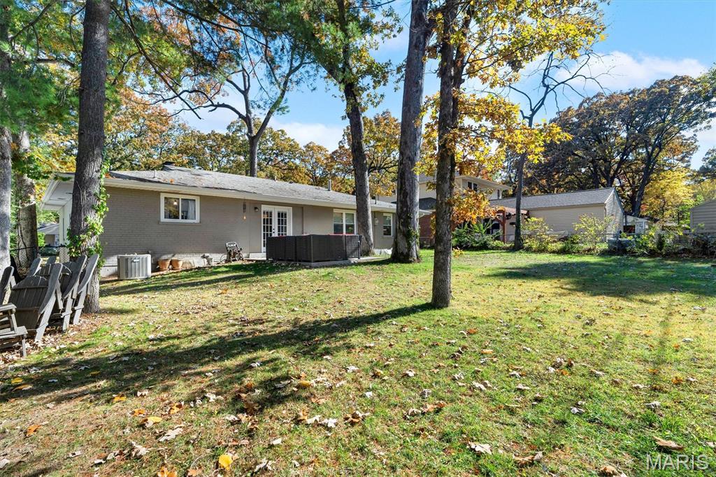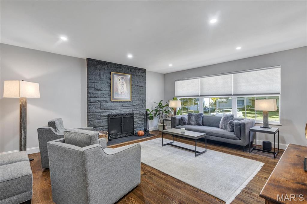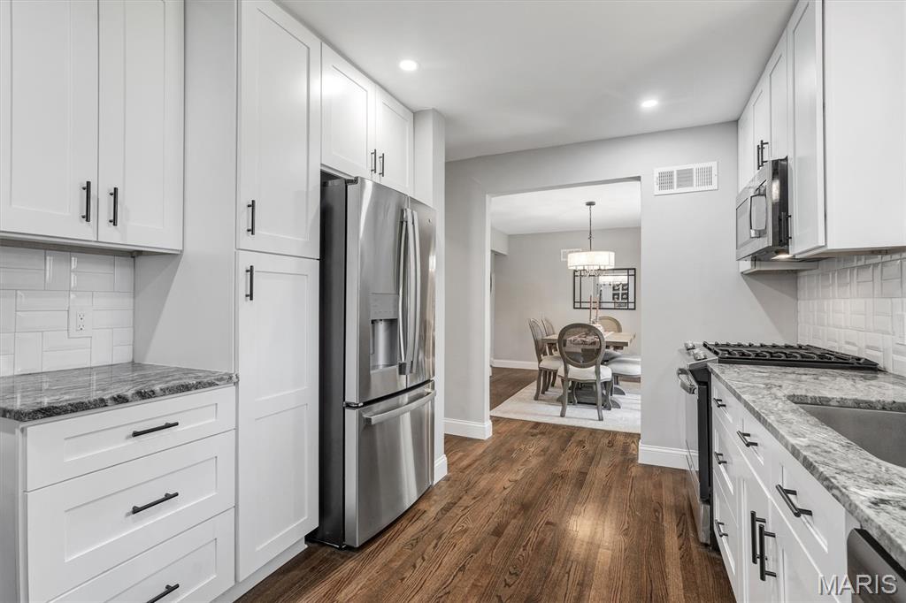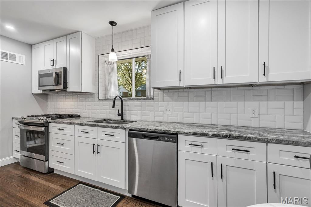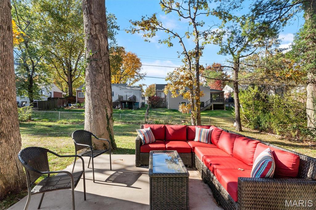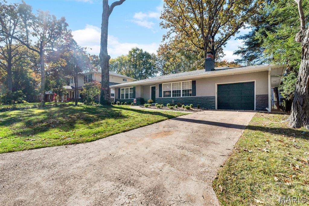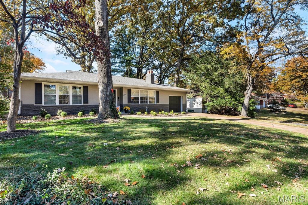 Welcome to 1225 Cheshire—a beautifully updated ranch nestled on a picturesque, tree-lined street in Webster Groves. From the moment you step inside, warm hardwood floors and a charming, fully functional fireplace create an inviting sense of home. The custom kitchen has been thoughtfully refreshed with crisp white cabinetry, beveled tile backsplash, granite countertops, and stainless steel appliances—perfectly blending style and function. Just off the kitchen, a spacious dining area opens to the patio, setting the stage for effortless summer entertaining. Each bedroom offers plush newer carpeting and generous closet space, with a special treat in the primary bath where the oversized shower and double vanity take center stage. The finished lower level expands your living options with a cozy family room featuring a second fireplace, a bonus room perfect for office or guest space and dedicated laundry and storage. Outside, enjoy a flat, fully fenced backyard—ideal for relaxing evenings or weekend gatherings—all just moments from the charm, dining, and community feel that make Webster Groves so special. Inclusions: Refrigerator, washer and dryer. Passed Webster Occupancy