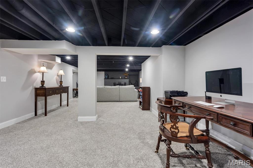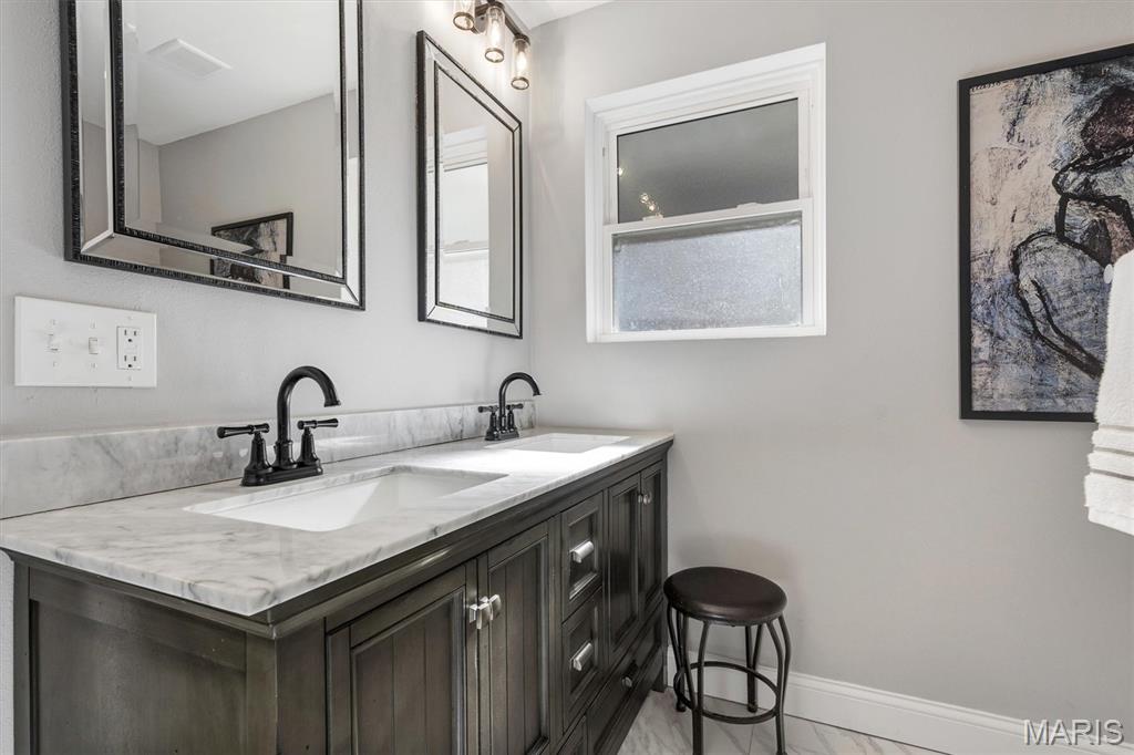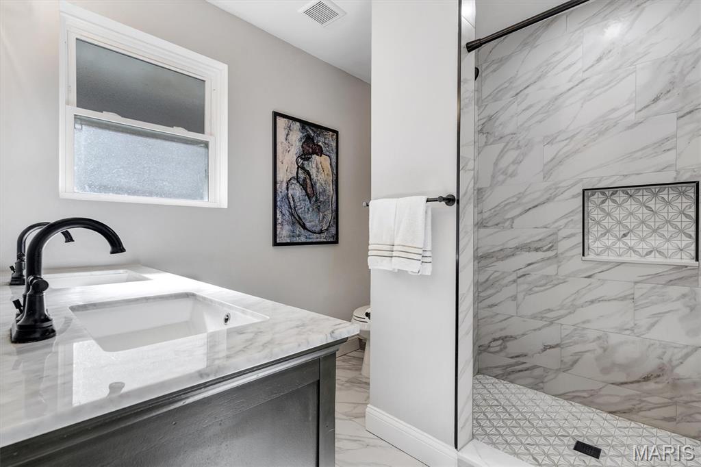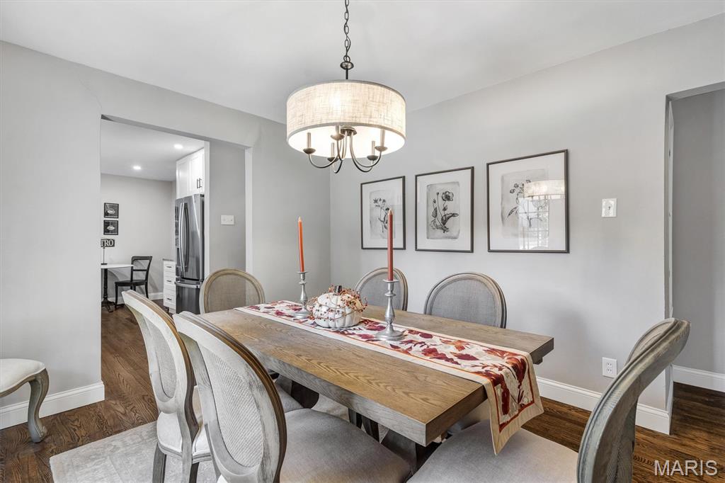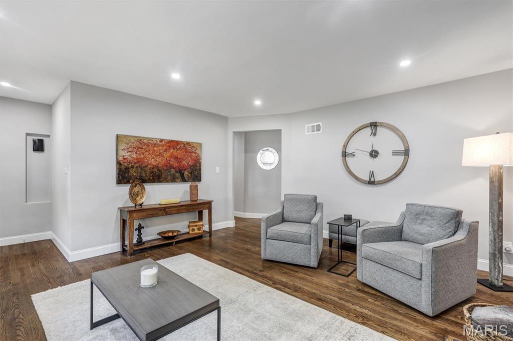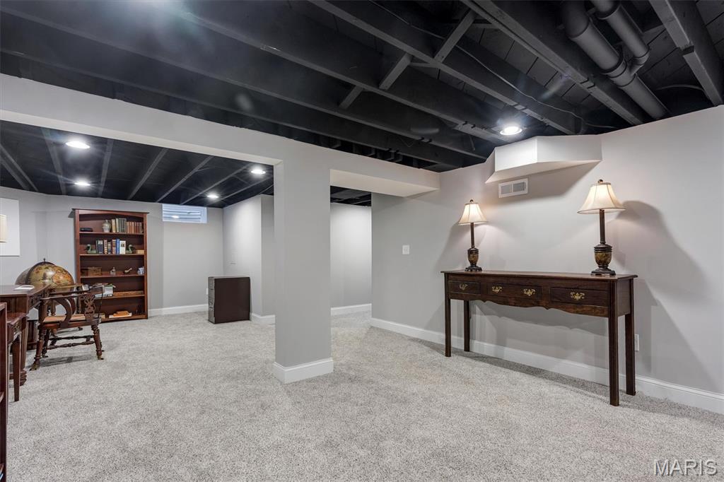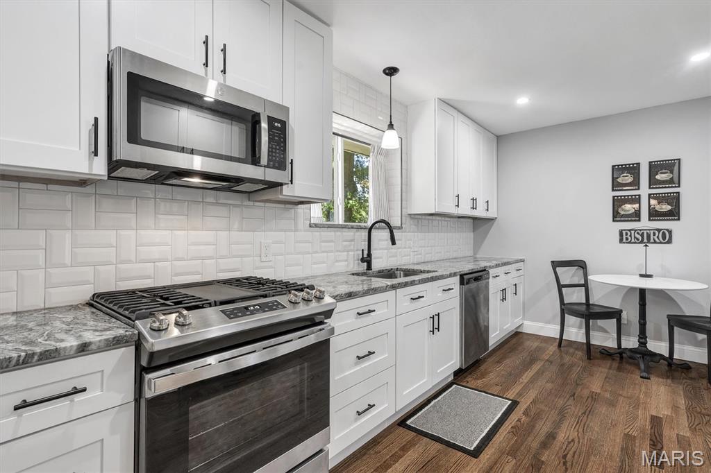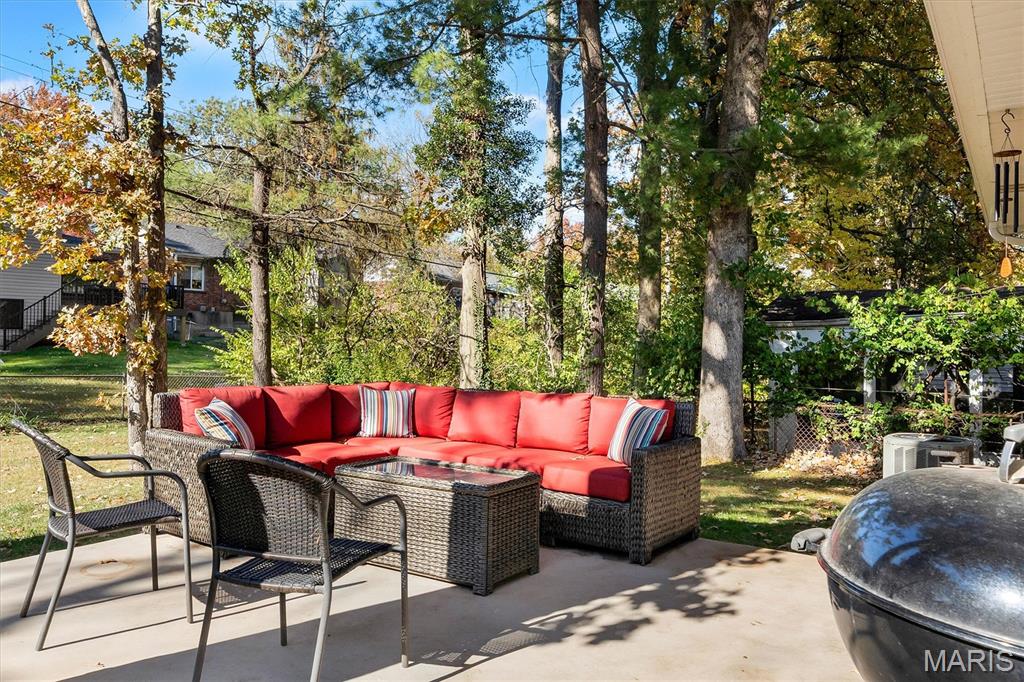 Welcome to 1225 Cheshire—a beautifully updated ranch nestled on a picturesque, tree-lined street in Webster Groves. From the moment you step inside, warm hardwood floors and a charming, fully functional fireplace create an inviting sense of home. The custom kitchen has been thoughtfully refreshed with crisp white cabinetry, beveled tile backsplash, granite countertops, and stainless steel appliances—perfectly blending style and function. Just off the kitchen, a spacious dining area opens to the patio, setting the stage for effortless summer entertaining. Each bedroom offers plush newer carpeting and generous closet space, with a special treat in the primary bath where the oversized shower and double vanity take center stage. The finished lower level expands your living options with a cozy family room featuring a second fireplace, a bonus room perfect for office or guest space and dedicated laundry and storage. Outside, enjoy a flat, fully fenced backyard—ideal for relaxing evenings or weekend gatherings—all just moments from the charm, dining, and community feel that make Webster Groves so special. Inclusions: Refrigerator, washer and dryer. Passed Webster Occupancy