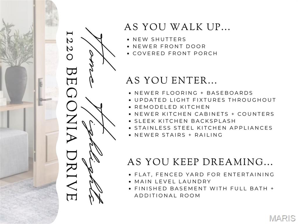 Welcome home to 1220 Begonia Drive! This beautifully updated 3 bed, 3 bath property includes a finished lower level offering a potential 4th room, perfect as an office or other flex space. The recently remodeled kitchen features new cabinetry, stylish backsplash, quartz countertops, and stainless steel appliances, perfect for both everyday living and entertaining. You’ll love the updated light fixtures, new hardwood flooring, and fresh baseboards throughout the main level, creating a clean, modern feel. Step outside to a flat, fully fenced backyard, ideal for pets, play, or relaxing evenings. Low HOA fees and a convenient location just minutes from I-70 make commuting and daily errands a breeze. Don't delay, send over your offer today!