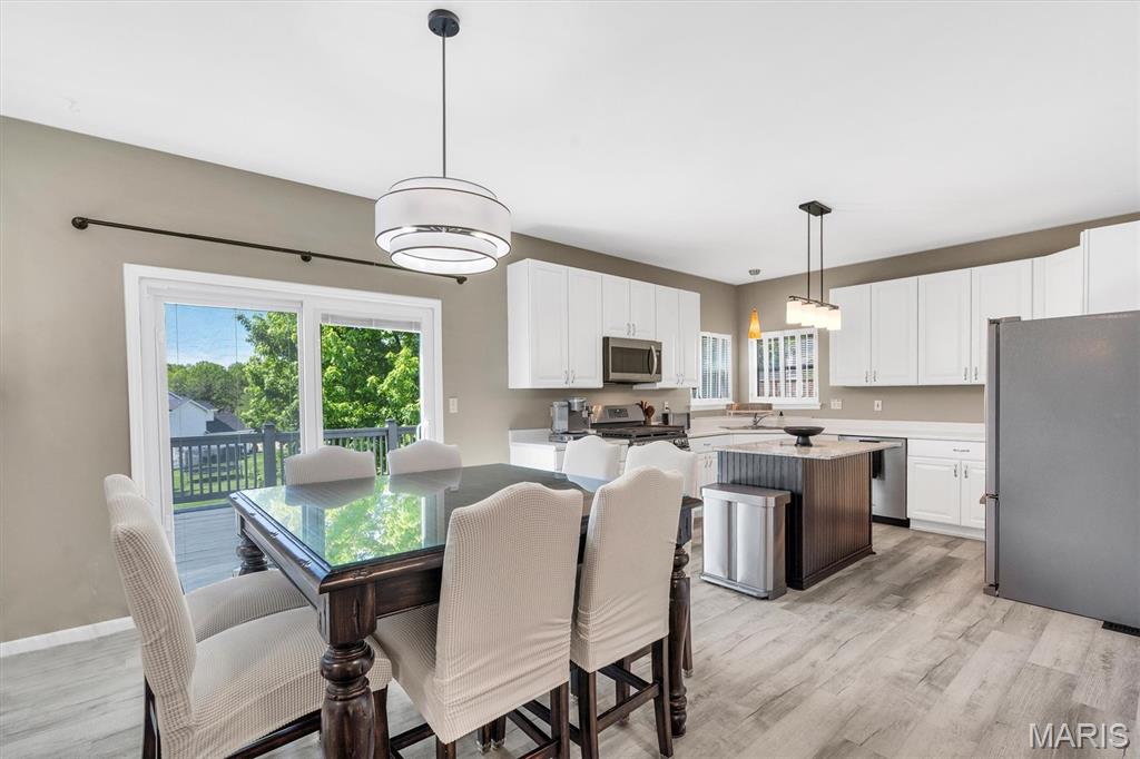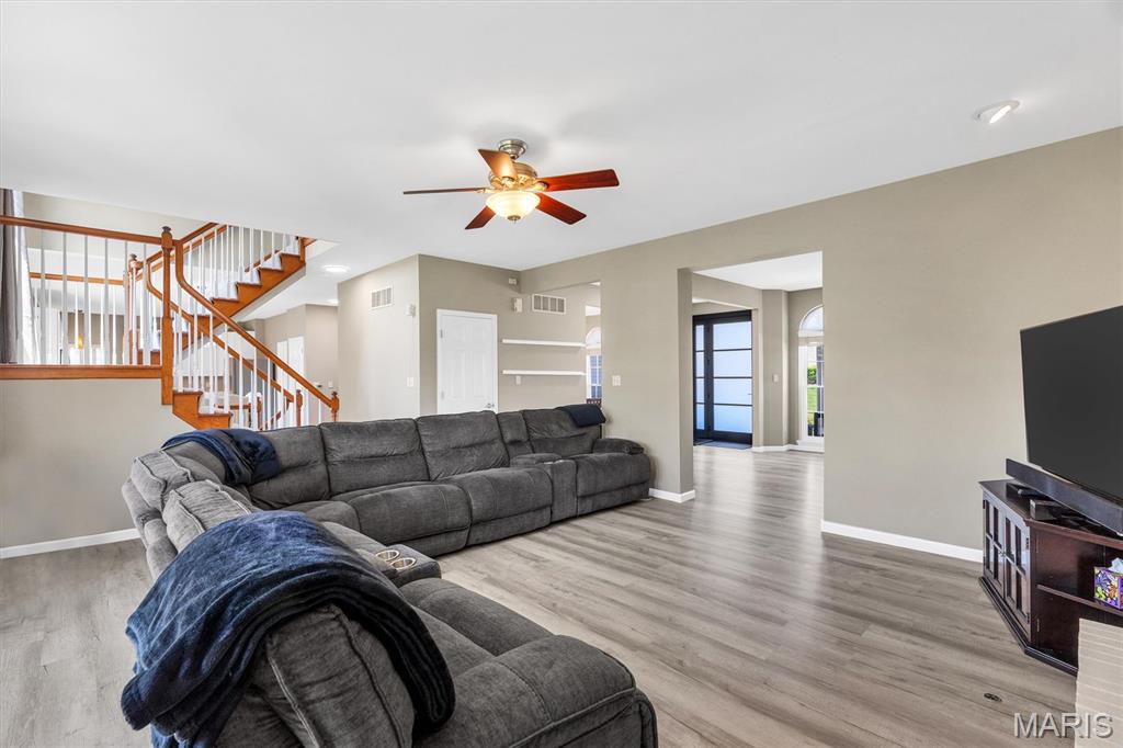 Is there a 5-bed home in Cottleville with room for everyone, a finished walk-out basement, and space to gather and grow? Yes, and this is it. This Fairfield Manor two-story offers over 2,700 sqft of finished living space and a location close to parks, schools, and fun, family-friendly activities. Welcome to 315 Buckington Street, a 5-bed home in Cottleville designed for everyday living, hosting, and relaxing evenings at home. With an open layout, hardwood floors in the foyer, kitchen, and breakfast room, and multiple spaces to spread out or come together, there is plenty of room for everyone. The family room features a full brick gas fireplace and large bay window, creating a warm and inviting place to relax. The kitchen includes 42-inch cabinetry, a center island, and a spacious walk-in pantry, making it easy to stay organized and keep up with daily routines. Main floor laundry adds convenience. Upstairs, the vaulted primary suite offers a quiet retreat with a large walk-in closet and en suite bath featuring a corner tub, separate shower, and double sinks. Additional bedrooms provide flexibility for family, guests, or work-from-home needs. The finished walk-out lower level expands your living space with a recreation room, fifth bedroom, full bath, and storage, ideal for play, hobbies, or hosting. Outdoor spaces include a 14x28 deck and 10x10 patio on a level, landscaped lot, perfect for outdoor activities. The 3-car garage offers extra storage for busy households. Located near Cottleville favorites like Frankie Martin’s Garden, Public School House, and The Inn at Cottleville, with easy access to parks, schools, shopping, and major highways, this home is ready for its next owner!