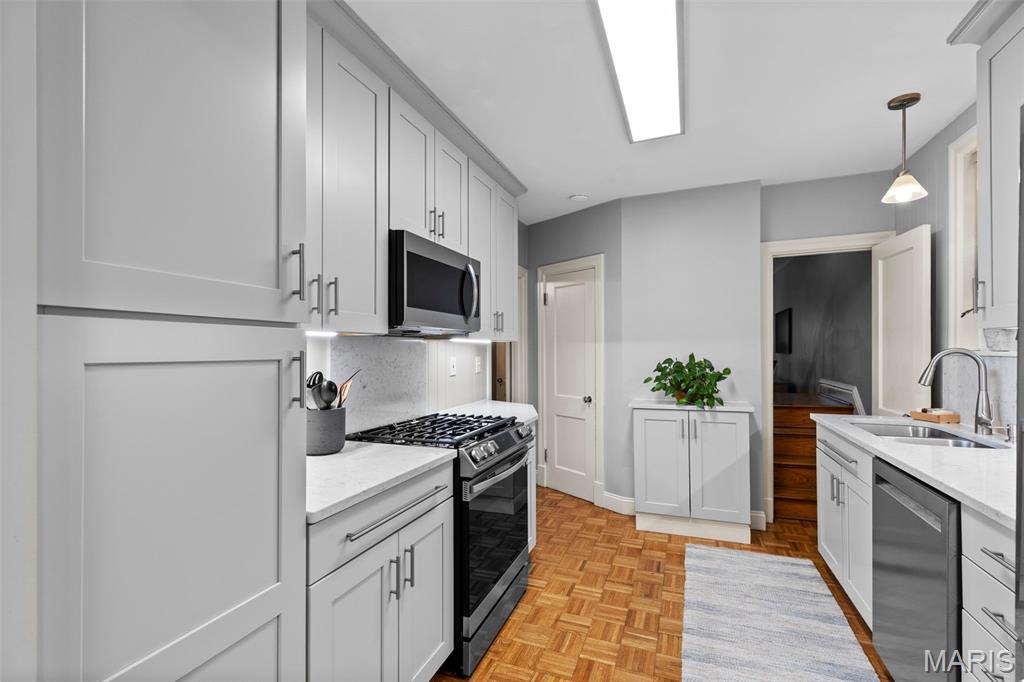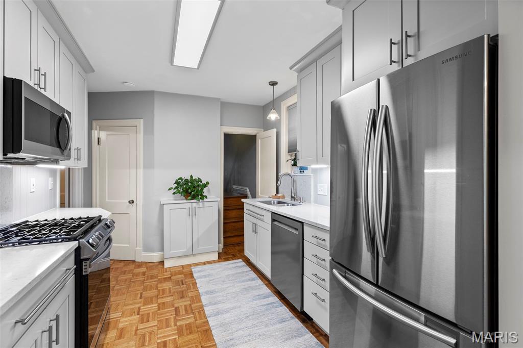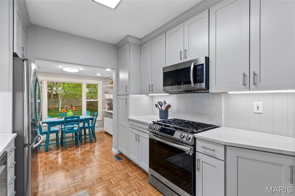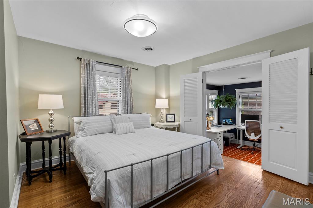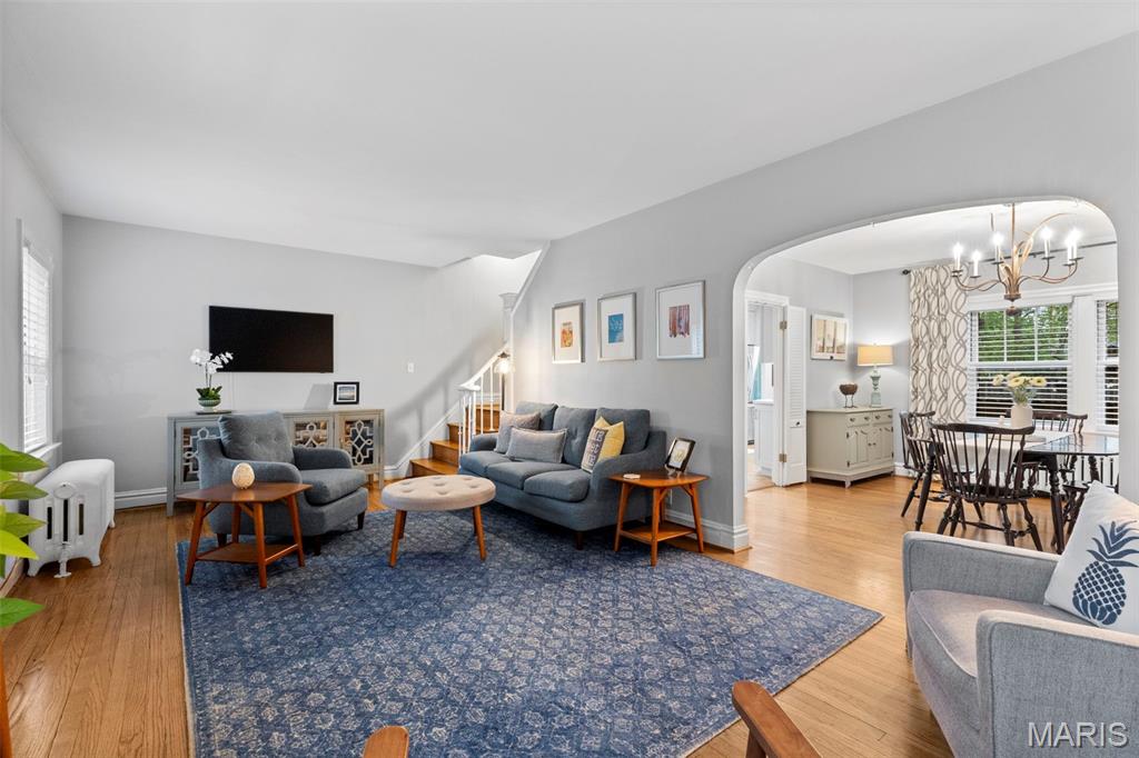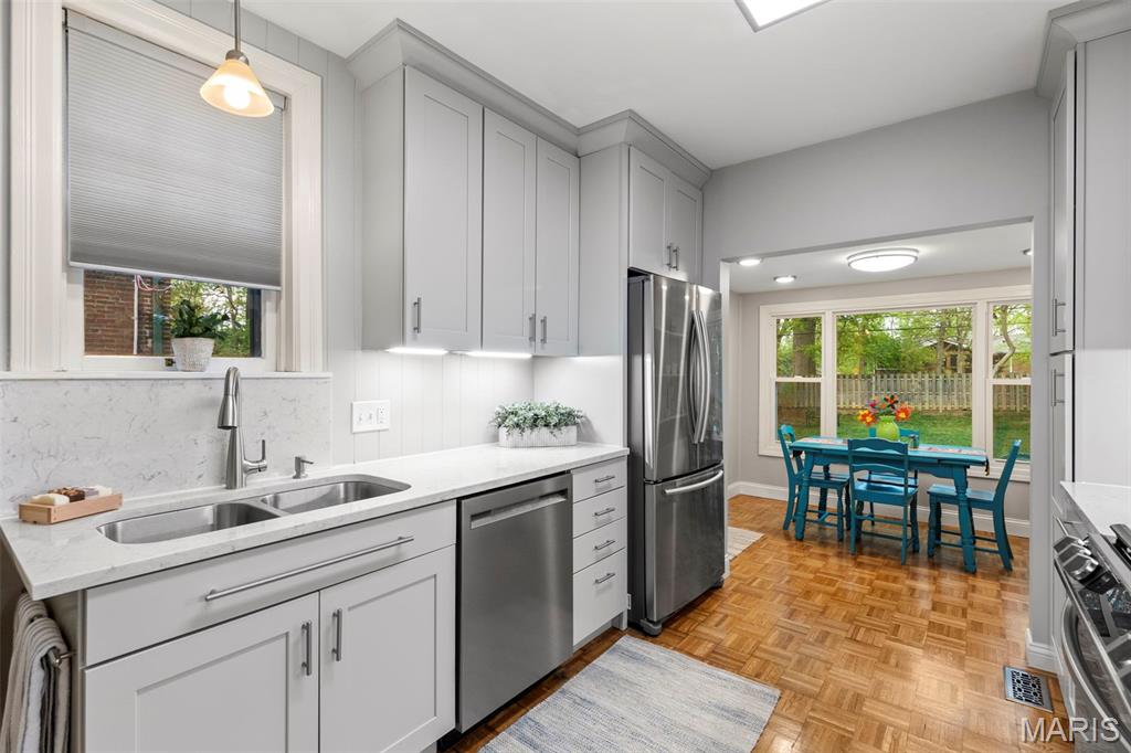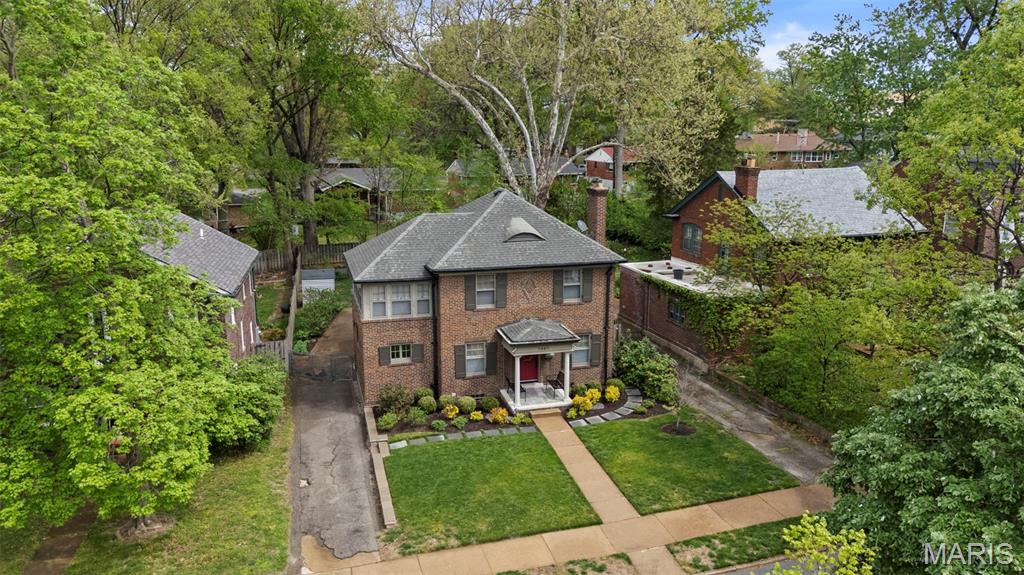 Picture perfect! With timeless style and lots of updates, this three-bedroom, 2.5 bath brick home boasts over 2100 square feet of total living space, plus a deep level lot in a highly sought-after University City neighborhood. The front yard’s professional landscaping and the attractive new front porch with handsome columns set the tone, warmly welcoming you to the home’s classic features, polished charm and modern enhancements. Inside, you’re greeted immediately by the beautiful hardwood floors, pleasing neutral palette and the home’s easy flow throughout. The oversized living room features an updated gas fireplace framed by custom bookshelves, windows and a new mantel. The dining room showcases two stained-glass windows and large picture windows overlooking the delightful, newly fenced backyard. Totally updated, the inviting kitchen spotlights new custom cabinets, countertops, lighting, refinished floors and new appliances. The adjoining, cozy breakfast room provides extra space, another peaceful vista of the backyard and opens to an enjoyable brick patio. Don’t miss the office/workout area in the attached converted garage space. Upstairs are three bedrooms with nice light and space, plus an updated hall bathroom. The primary bedroom opens easily to the cheerful sunroom, which adds good flow and versatility as an office/den with a large closet and storage space. The nicely finished lower-level provides great additional living space and features canned lights, a sophisticated stained concrete floor, an attractive full bath, and laundry. All this plus easy walking to neighborhood dining, shops and parks!