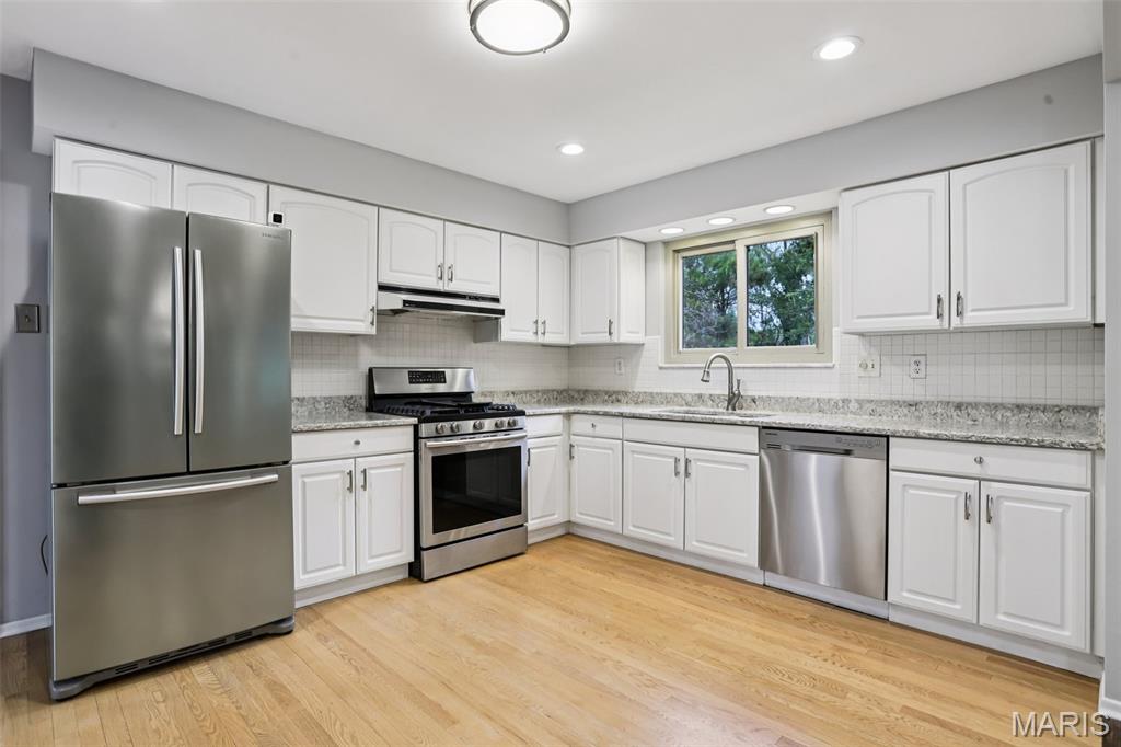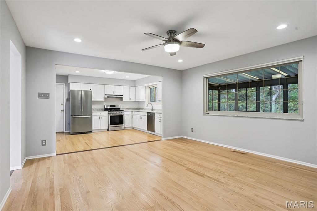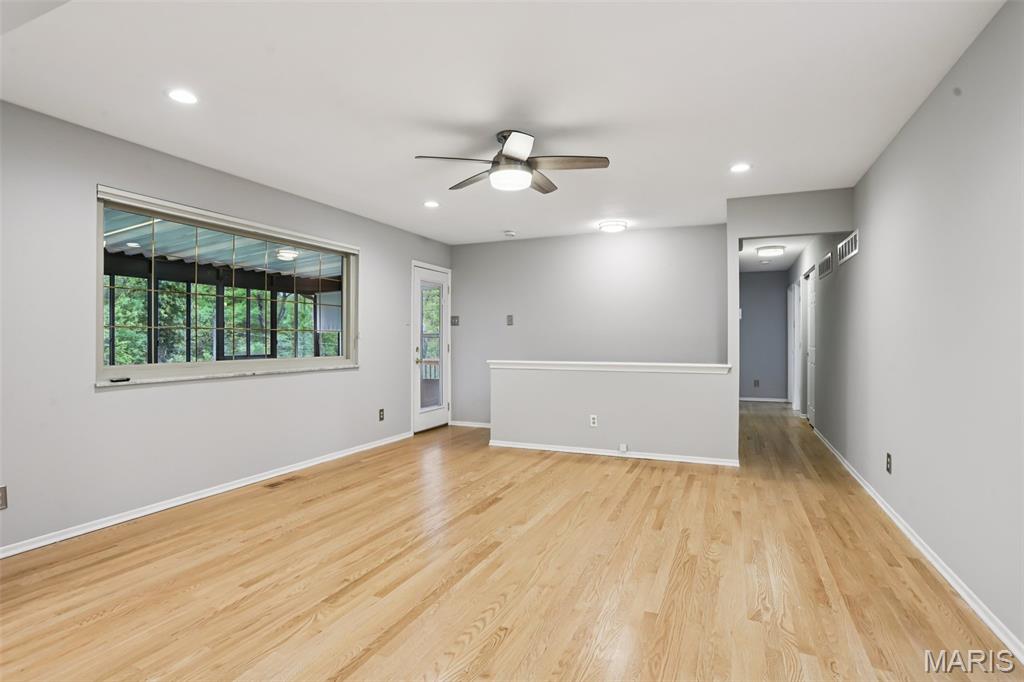 Step into a flawlessly updated, move-in-ready sanctuary in the heart of the sought-after Lindbergh School District. This bright and airy ranch has been completely refreshed with a crisp neutral palette, updated lighting, new doors, hardware and gleaming refinished hardwood floors. The heart of the home flows seamlessly from the sun-drenched formal living room into a cozy family room that overlooks a stunning three-season room. From there, enjoy panoramic views of your private backyard, which backs to a peaceful wooded common area and a winding creek. The chef-ready kitchen features quartz countertops, premium cabinetry, a massive pantry, and stainless (fridge included!). With four spacious bedrooms—including a primary suite with a newly renovated bath—there’s room for everyone. Additional living space in the partially finished lower level with Recreation room. Plus, the corner lot offers an attached 2-car garage, additional back yard enclosed storage area and a dedicated parking pad for your boat, RV, or camper! Awesome community to be a part of with Crestwoods own Police and Fire and close proximity shopping!