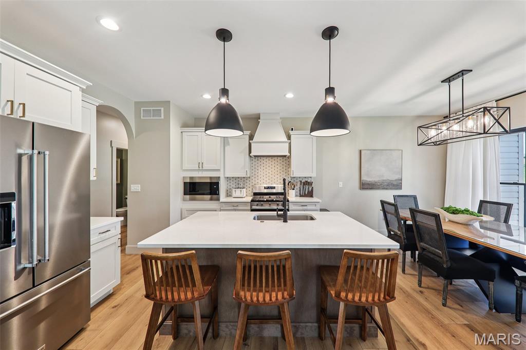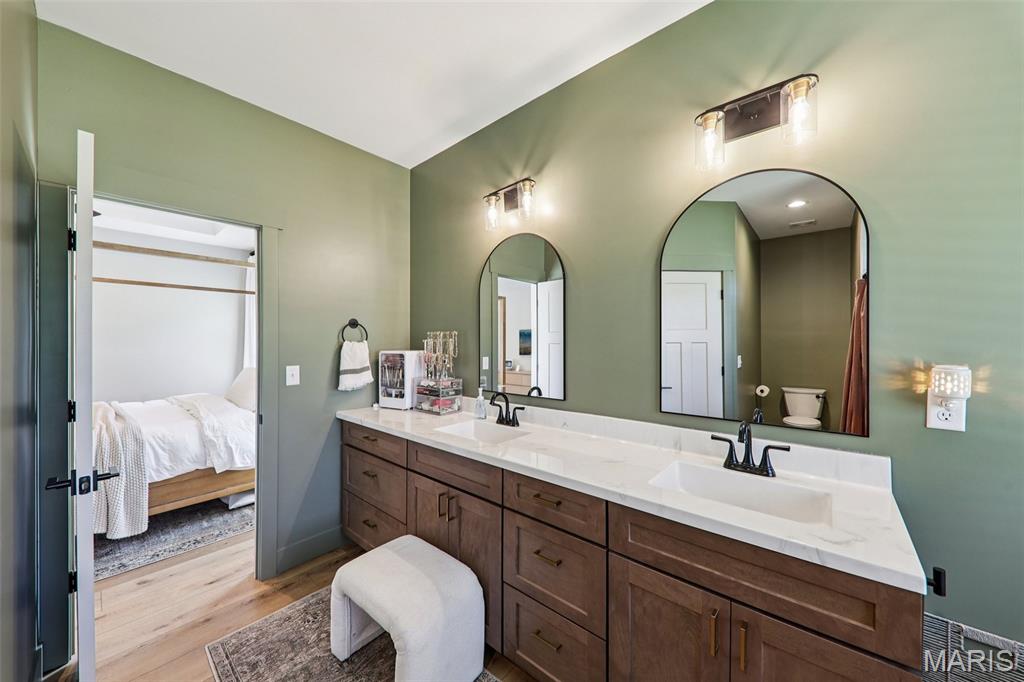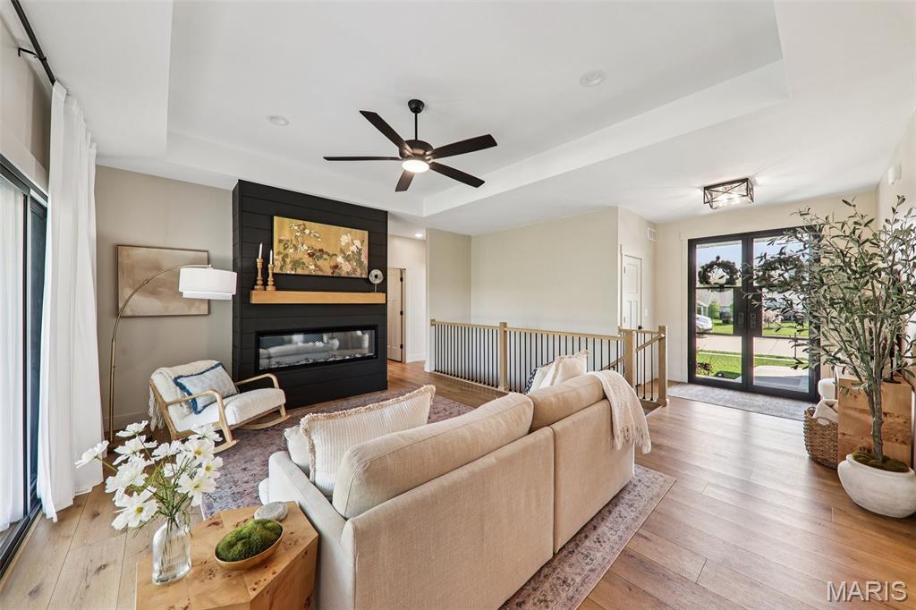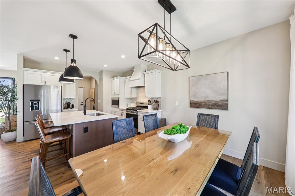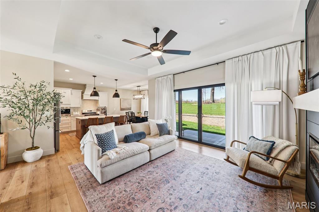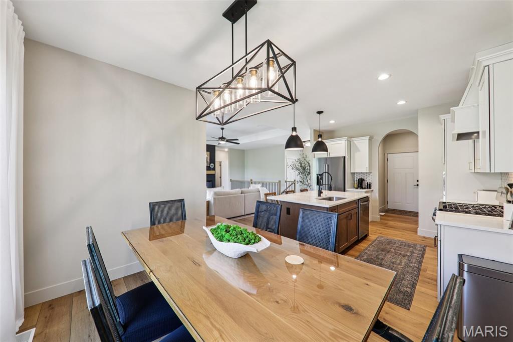 Tucked back in the coveted, boutique community of Shadow Ridge—this property delivers the kind of quiet, low-traffic living that’s getting harder to find. Backing to open ground with a truly private backyard setting, it offers a rare blend of peace, proximity, and presence—just minutes from SAFB, O’Fallon, Edwardsville shopping and dining, and effortless interstate access. From the moment you walk in, this home feels intentional. The design is textbook tasteful—featuring a palette of vivid yet subtle tones that create warmth without overwhelming the space. Every finish, every line, every arch was carefully and tirelessly selected by the builder… and it shows. At the heart of the home, an inviting living space is anchored by the fireplace, seamlessly connecting to a large center island and eat-in kitchen designed for real life—morning coffee, weeknight dinners, and full-house gatherings alike. The flow is effortless, the feel is elevated, and the functionality is spot on. Architectural details like arched doorways add a level of character you simply won't find in most new builds, while LVP flooring throughout keeps things clean, durable, and cohesive. The primary suite is its own escape—featuring a recessed ceiling, spa-style bath with a soaker tub, and a shower that genuinely feels like a vacation retreat. It’s the kind of space you disappear into at the end of a long day. Downstairs, the deep-pour basement takes this home to another level—literally. The ceiling height is impressive enough to accommodate a golf simulator setup, while also offering space for a full home theater, recreation area, and a 4th bedroom—perfect for guests, a private office, or flexible living arrangements. The outdoor space continues the story with a covered patio overlooking open ground, a stone veneer exterior, and a block retaining wall that enhances both form and function. And for modern convenience, the 3-car garage is equipped with a 240V EV hookup—ready for at-home electric vehicle charging. With main-level laundry (complete with sink), a functional drop zone for everyday life, and thoughtful touches throughout, this home strikes that rare balance of new, simple, elegant, and peaceful. Homes like this don’t just check boxes—they raise the standard.
