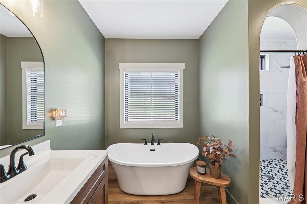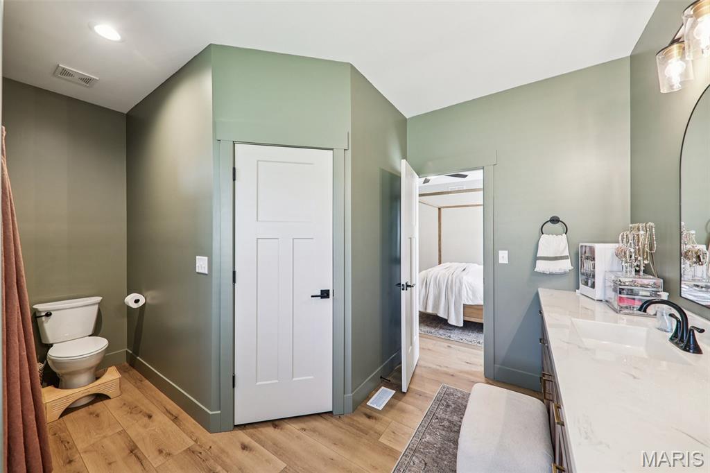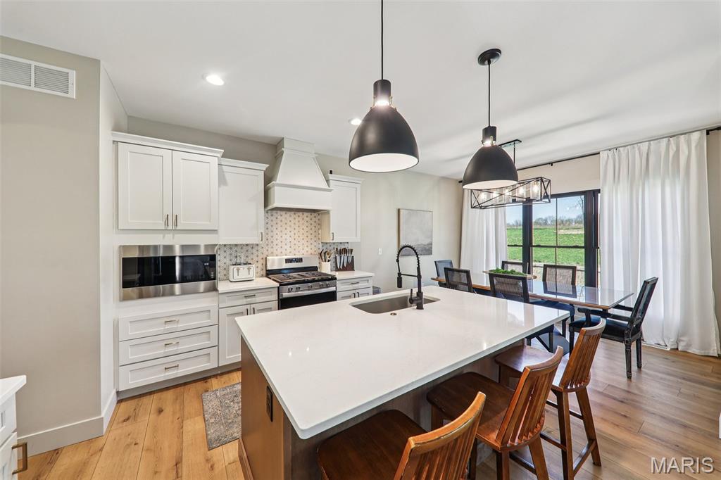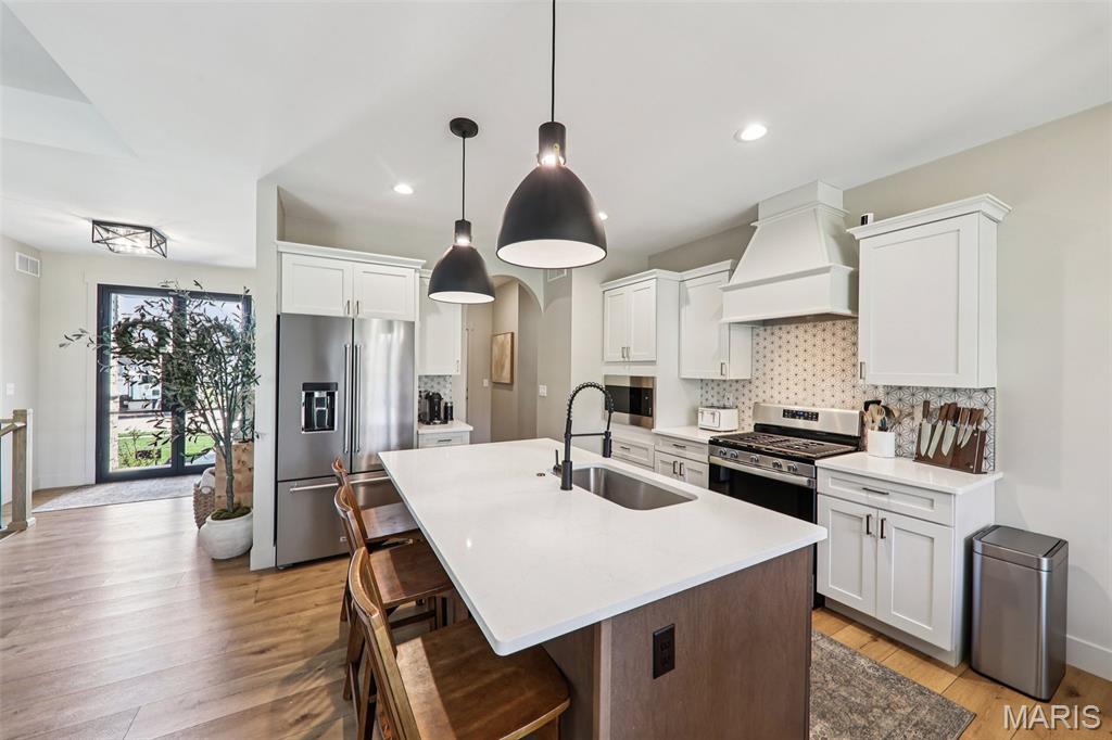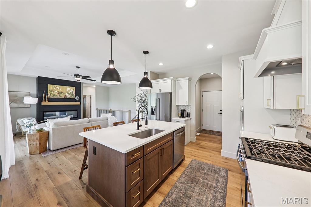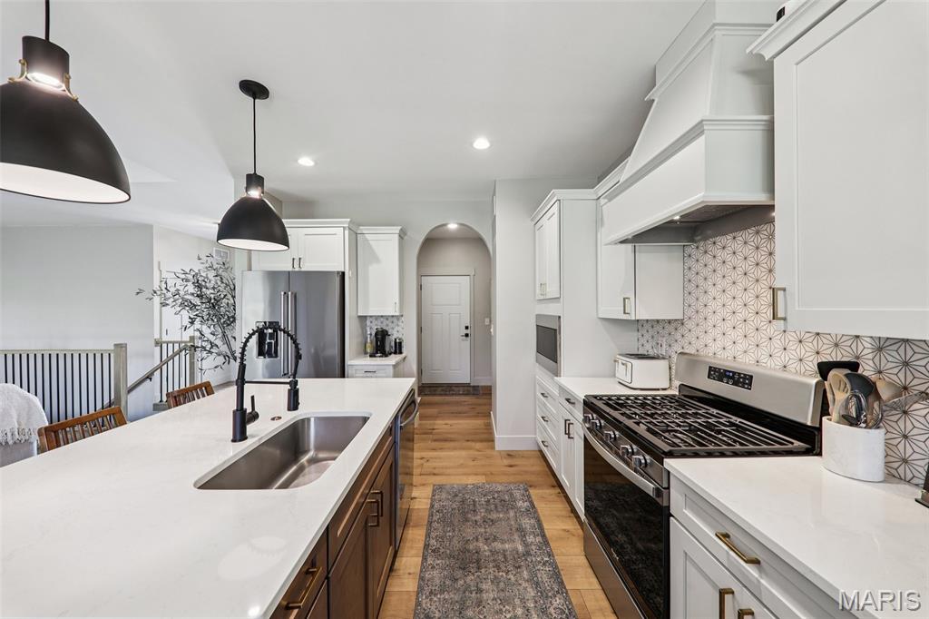 Tucked back in the coveted, boutique community of Shadow Ridge—this property delivers the kind of quiet, low-traffic living that’s getting harder to find. Backing to open ground with a truly private backyard setting, it offers a rare blend of peace, proximity, and presence—just minutes from SAFB, O’Fallon, Edwardsville shopping and dining, and effortless interstate access. From the moment you walk in, this home feels intentional. The design is textbook tasteful—featuring a palette of vivid yet subtle tones that create warmth without overwhelming the space. Every finish, every line, every arch was carefully and tirelessly selected by the builder… and it shows. At the heart of the home, an inviting living space is anchored by the fireplace, seamlessly connecting to a large center island and eat-in kitchen designed for real life—morning coffee, weeknight dinners, and full-house gatherings alike. The flow is effortless, the feel is elevated, and the functionality is spot on. Architectural details like arched doorways add a level of character you simply won't find in most new builds, while LVP flooring throughout keeps things clean, durable, and cohesive. The primary suite is its own escape—featuring a recessed ceiling, spa-style bath with a soaker tub, and a shower that genuinely feels like a vacation retreat. It’s the kind of space you disappear into at the end of a long day. Downstairs, the deep-pour basement takes this home to another level—literally. The ceiling height is impressive enough to accommodate a golf simulator setup, while also offering space for a full home theater, recreation area, and a 4th bedroom—perfect for guests, a private office, or flexible living arrangements. The outdoor space continues the story with a covered patio overlooking open ground, a stone veneer exterior, and a block retaining wall that enhances both form and function. And for modern convenience, the 3-car garage is equipped with a 240V EV hookup—ready for at-home electric vehicle charging. With main-level laundry (complete with sink), a functional drop zone for everyday life, and thoughtful touches throughout, this home strikes that rare balance of new, simple, elegant, and peaceful. Homes like this don’t just check boxes—they raise the standard.