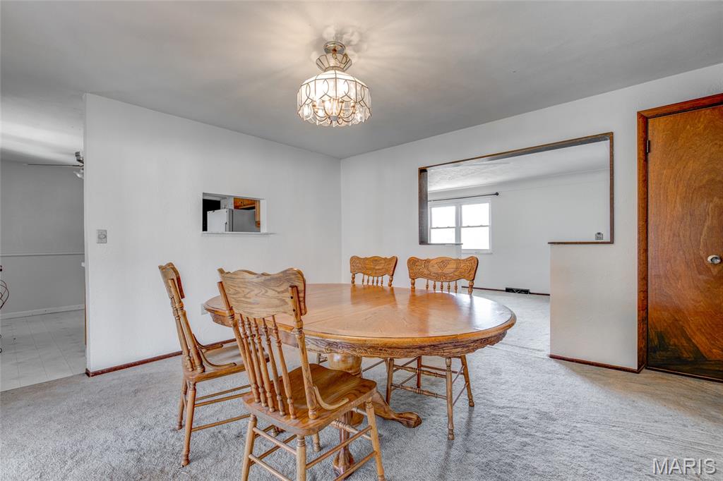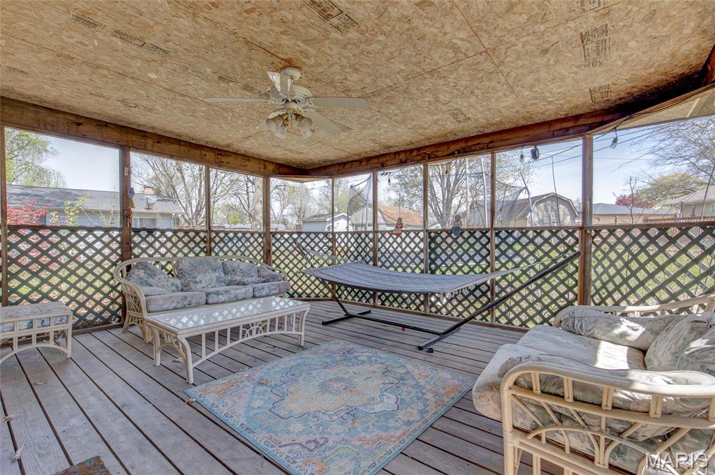 Beautiful ranch style home for sale in Bethalto! Located on a generous lot with a fenced in backyard, this three bedroom home has so much to offer! Spacious living room (25' x 17' approx.) with custom built ins, crown moulding, and wood burning fireplace. This home also has a separate dining room perfect for hosting guests and enjoying a meal, or could be used for many other purposes-such as a home office. Leading out of the dining room you'll find a 17' x 16' screened in sunroom with ceiling fan-enjoy a nice day or a morning cup of coffee. Moving back inside to the kitchen- appliances all stay with the sale of the home! Located off of the kitchen, this home provides a dedicated laundry room, with shelving for supplies or storage purposes. You will love the space provided with the three bedrooms, primary bedroom is 13' x 16', second bedroom measures 17' x 9', and third bedroom is generously sized at 9' x 12'(please see floor plan). The attached garage is oversized and was originally a two car garage prior to the laundry room addition. Crawl space was waterproofed in 2020 and A/C was replaced in 2022. Seller is in the process of city occupancy, but home is being sold AS-IS. Set up your appointment to view with your agent of choice!