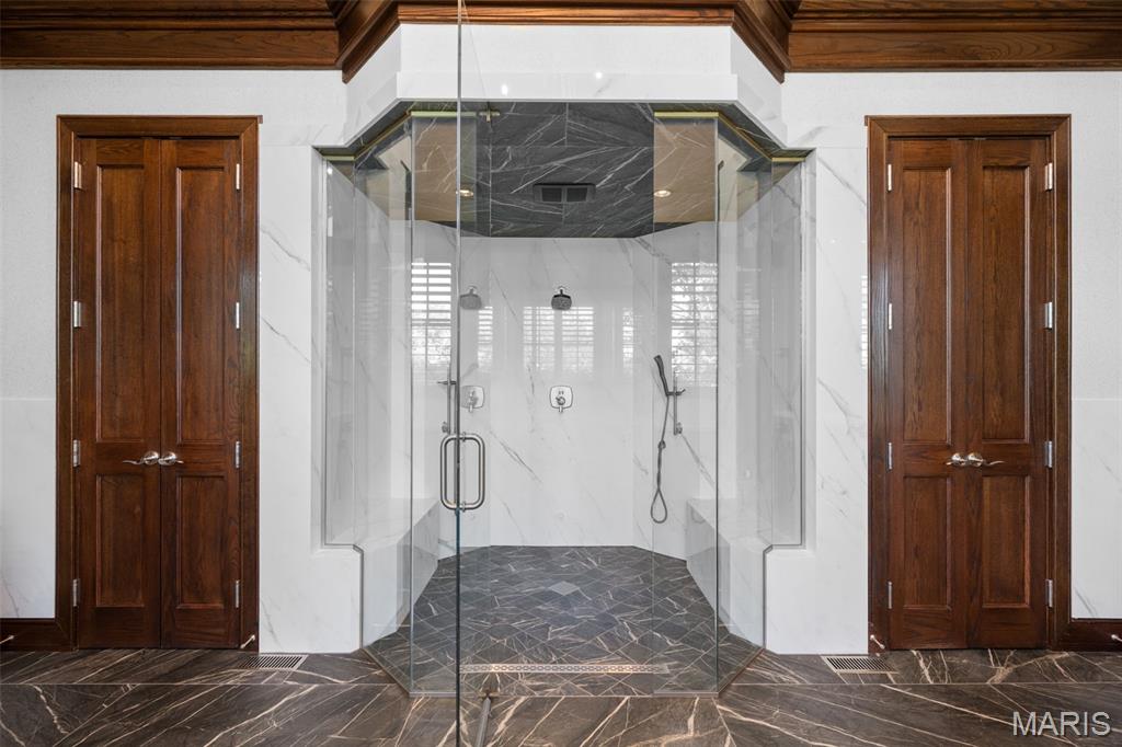 Set on a private gated lane in prestigious Huntleigh, 17 Bridle Ridge Lane is an extraordinary estate that embodies refined luxury, architectural elegance, and uncompromising privacy. Gracefully positioned on four lush, meticulously landscaped acres, this magnificent residence offers an unparalleled blend of grand-scale living and intimate comfort. Boasting 5 grand bedrooms, 6 full bathrooms, and 5 impeccably appointed half baths, the home is thoughtfully designed with exquisite craftsmanship and bespoke finishes throughout. A dramatic entry foyer introduces its sophisticated living spaces, ideal for both large scale entertaining and intimate gatherings. The culinary inspired kitchen is a masterpiece of design and function, featuring premium appliances, custom cabinetry, and an expansive island that anchors the heart of the home. Adjacent formal and informal living areas are adorned with rich materials, designer lighting, and walls of windows that frame serene views of the estate grounds. Retreat to the luxurious primary suite, a private sanctuary complete with a resort style bath, expansive dressing area, and unrivaled closet space which includes space for a washer and dryer. Each additional bedroom suite offers exceptional comfort and privacy for family and guests alike. Designed for elevated living, the estate features a state-of-the-art fitness center, a resort-style pool with surrounding terraces, and multiple indoor-outdoor spaces curated for relaxation and entertaining. Car enthusiasts will appreciate the impressive 5-car garage, while the gated approach ensures the utmost in exclusivity and security. 17 Bridle Ridge Lane is more than a home—it is a statement of timeless sophistication and distinguished living in one of Huntleigh’s most coveted enclaves.