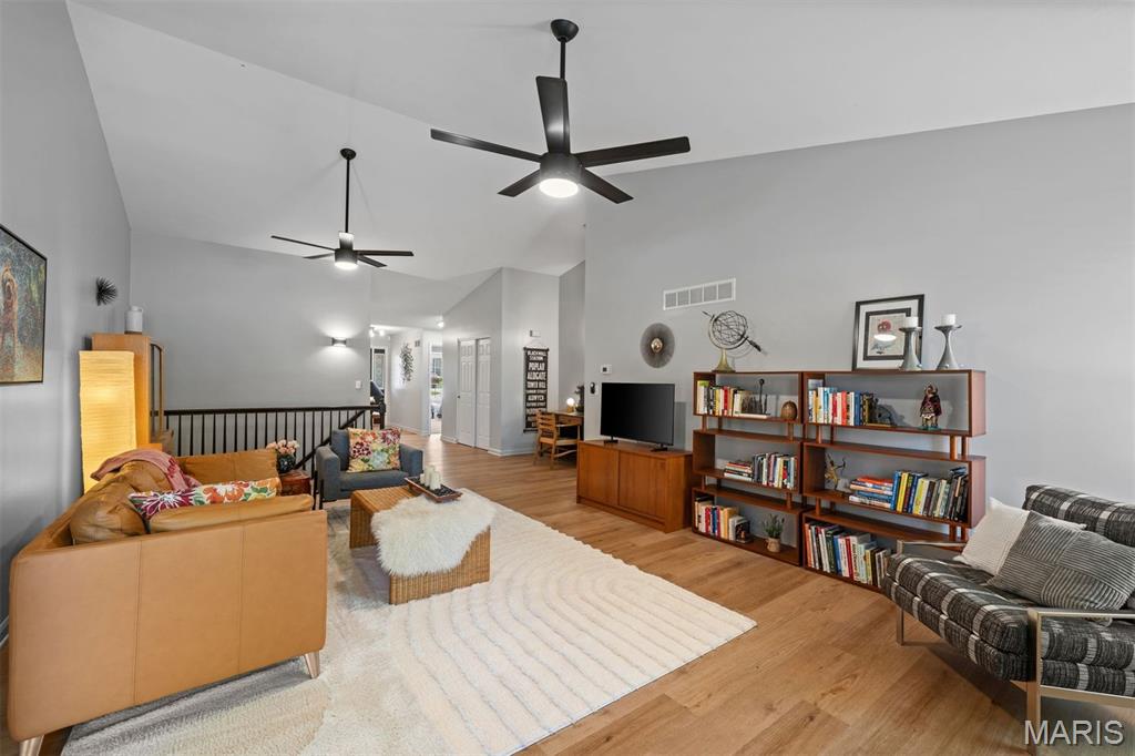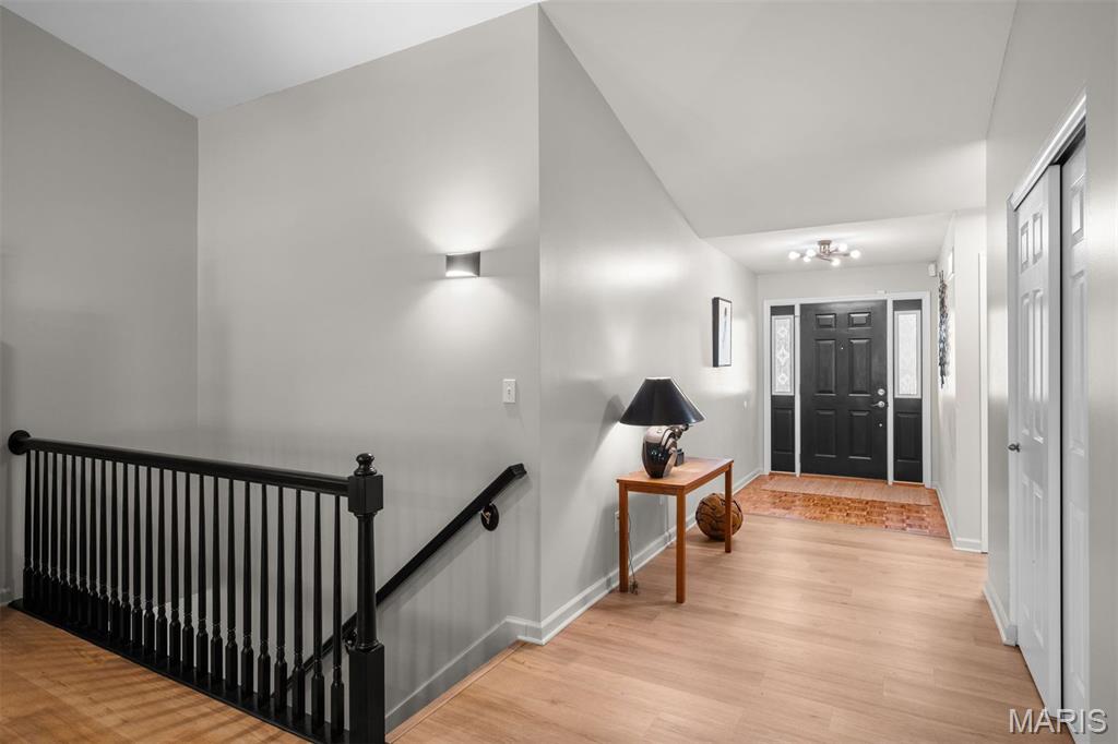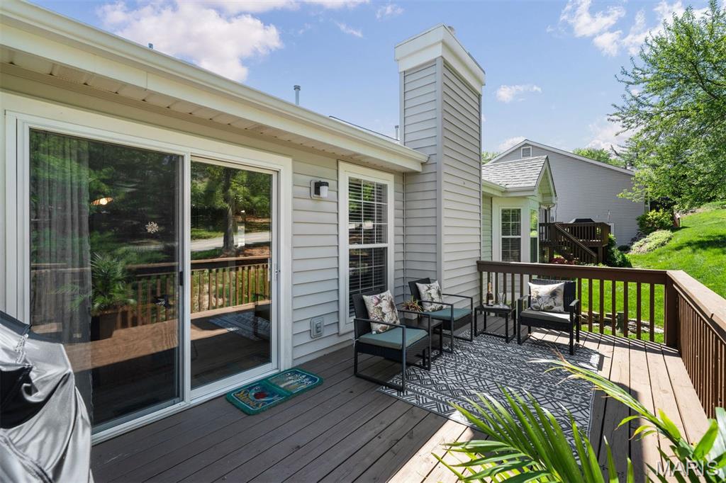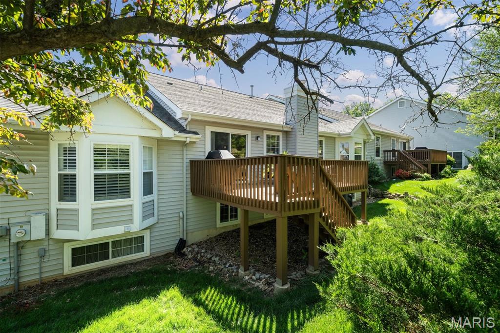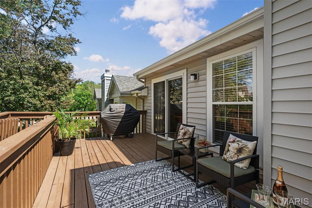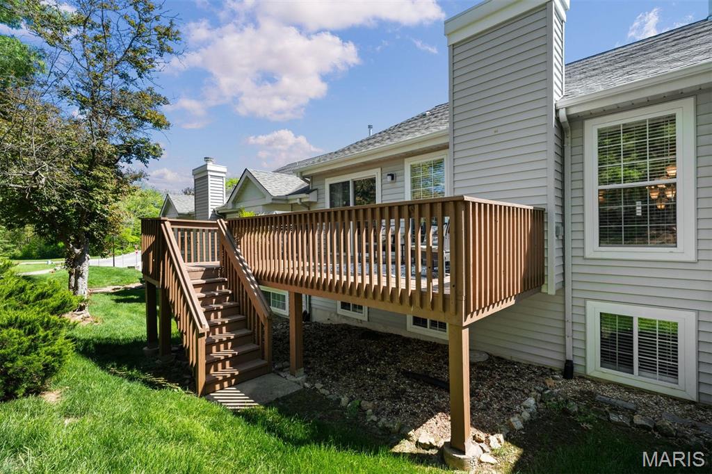Experience luxury living at the lake in this beautifully updated villa, perfectly situated in the sought-after Lake St. Louis community. This spacious, low-maintenance home offers the ideal combination of comfort, style, and convenience. Boasting 4 bedrooms and 3 full bathrooms, the open-concept main level showcases elegant luxury vinyl plank flooring for a seamless, contemporary look. The modern kitchen features stainless steel appliances, a gas range, butcher-block countertops, and generous cabinetry. Enjoy your morning coffee or unwind in the evening on the private deck just off the kitchen. Retreat to the main-floor primary suite, complete with multiple closets and a spa-inspired en-suite bathroom with a walk-in shower and abundant storage. A second main-floor bedroom, full bathroom, and convenient laundry room complete the main level. Downstairs, the finished lower level offers a spacious recreation room, a stylish wet bar with refrigerator, two additional bedrooms (one with an expansive walk-in closet), another full bathroom, and a large storage area. Additional features include an attached 2-car garage, ample guest parking, and fresh paint throughout, ensuring a truly move-in-ready experience. Don’t miss your chance to embrace easy, luxurious living in this stunning villa, ideally located for lake community enjoyment!
