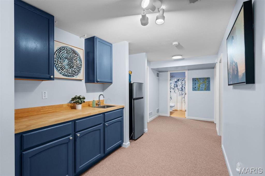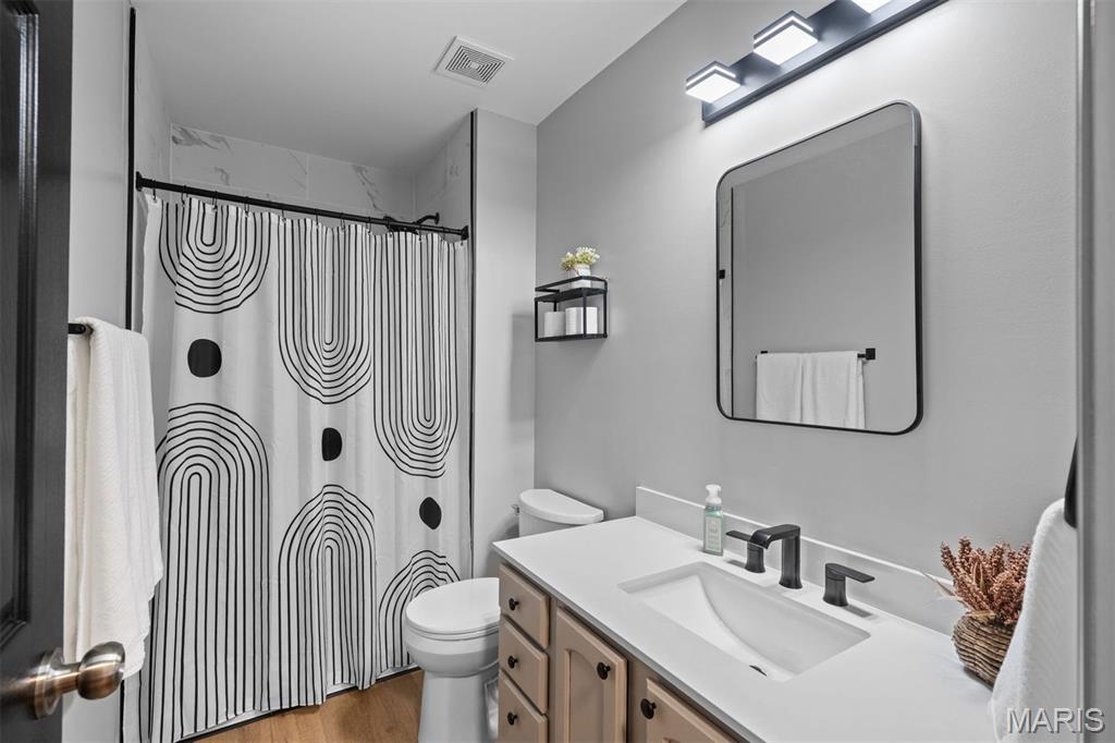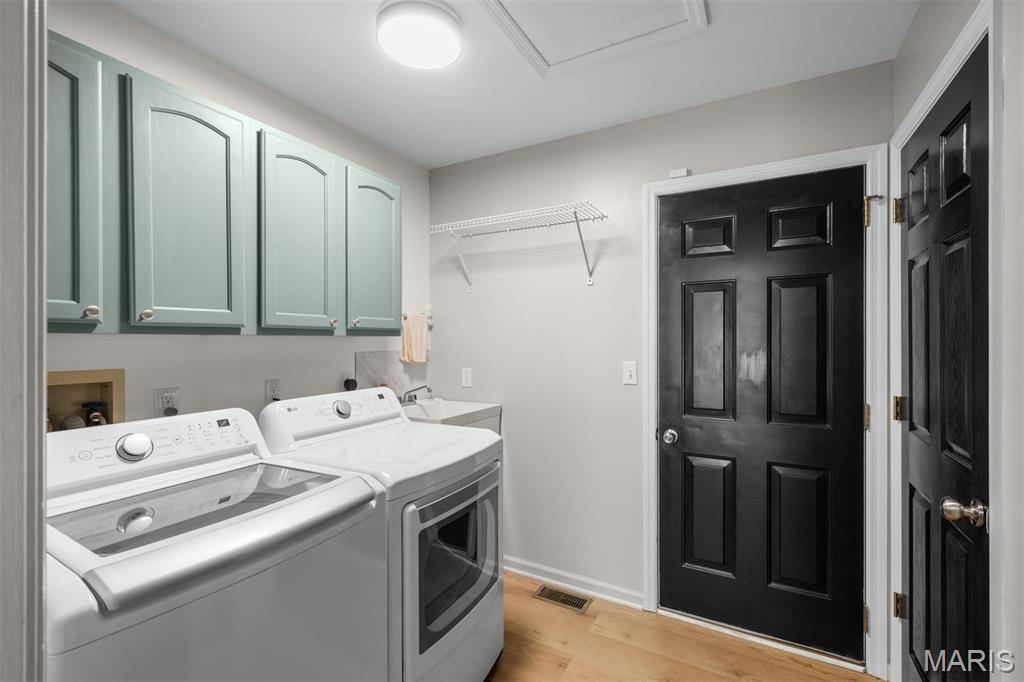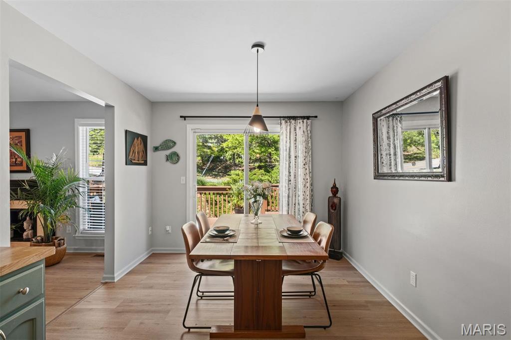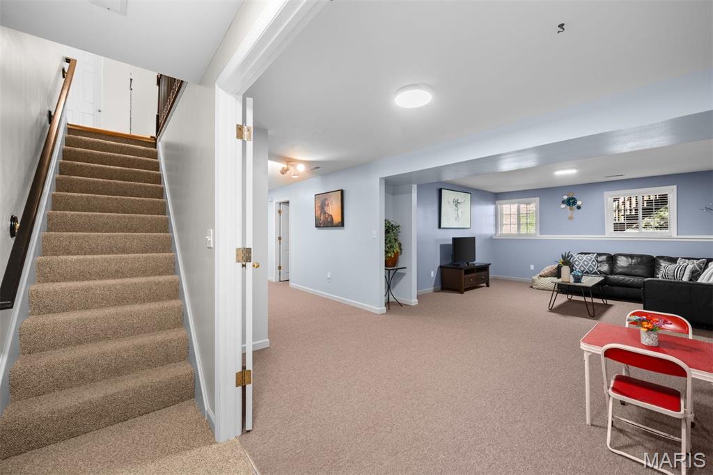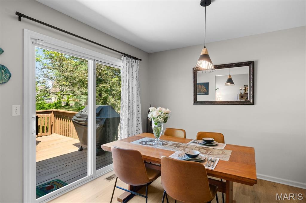 Experience luxury living at the lake in this beautifully updated villa, perfectly situated in the sought-after Lake St. Louis community. This spacious, low-maintenance home offers the ideal combination of comfort, style, and convenience. Boasting 4 bedrooms and 3 full bathrooms, the open-concept main level showcases elegant luxury vinyl plank flooring for a seamless, contemporary look. The modern kitchen features stainless steel appliances, a gas range, butcher-block countertops, and generous cabinetry. Enjoy your morning coffee or unwind in the evening on the private deck just off the kitchen. Retreat to the main-floor primary suite, complete with multiple closets and a spa-inspired en-suite bathroom with a walk-in shower and abundant storage. A second main-floor bedroom, full bathroom, and convenient laundry room complete the main level. Downstairs, the finished lower level offers a spacious recreation room, a stylish wet bar with refrigerator, two additional bedrooms (one with an expansive walk-in closet), another full bathroom, and a large storage area. Additional features include an attached 2-car garage, ample guest parking, and fresh paint throughout, ensuring a truly move-in-ready experience. Don’t miss your chance to embrace easy, luxurious living in this stunning villa, ideally located for lake community enjoyment!