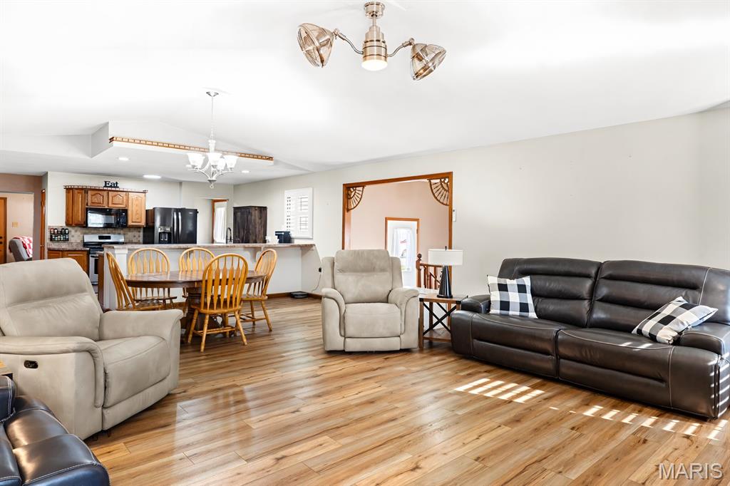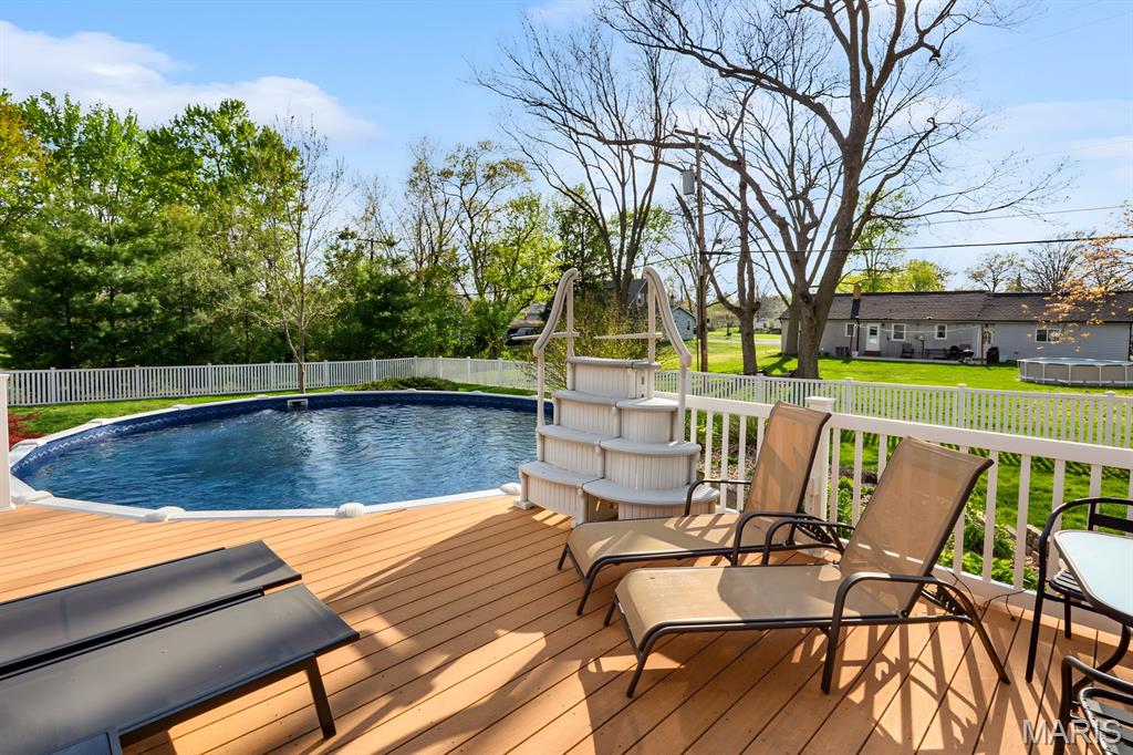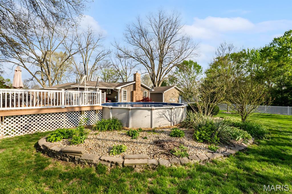 Beautiful 3 bedroom/ 2 bath home, many updates! Has 2 car attached garage. Features a spacious family room with vaulted ceiling, cozy brick wood burning fireplace, & new laminate flooring. Ample cabinet & countertop space in kitchen with large breakfast bar. Main floor living room. Updated main floor bathroom, & has a convenient large mud room. Partial finished basement offers additional living space w/updated bathroom, laundry access available, & storage room w/shelving. Enjoy the outdoors with fenced in backyard, above ground pool w/new liner, new decking, & covered concrete patio with lighting & TV hookup-perfect for entertaining. Professional landscaping with concrete edging completes this move in ready home! A must see! Schedule appointment