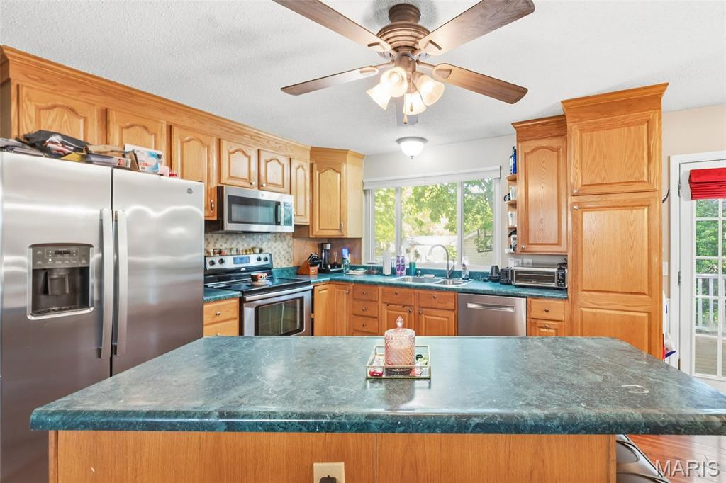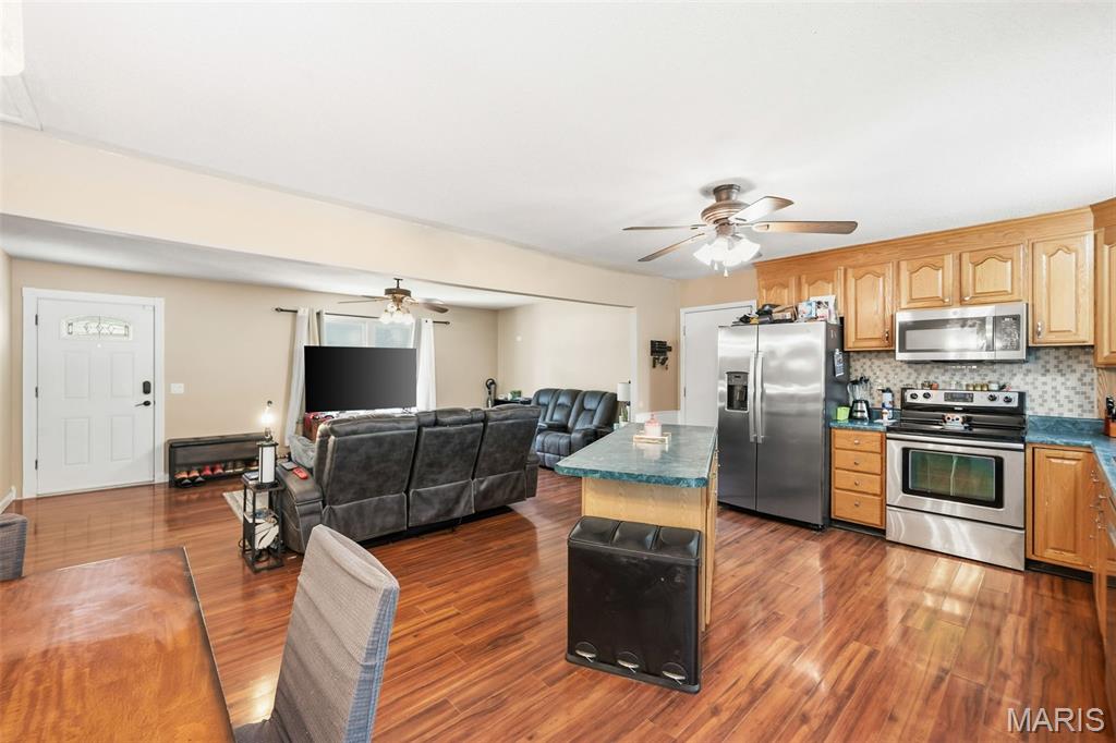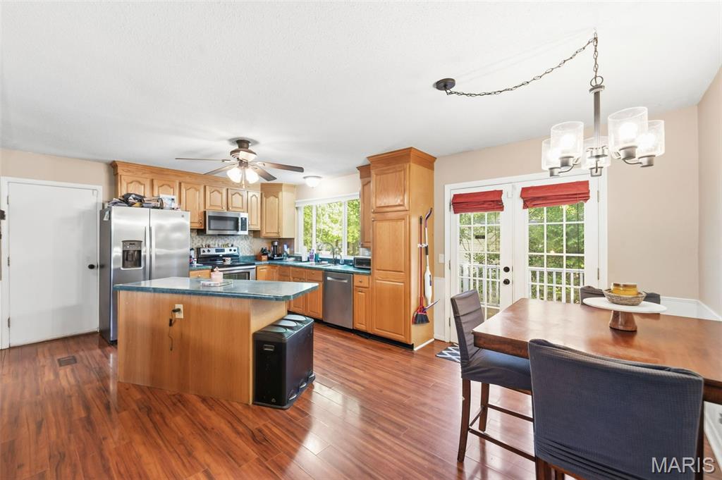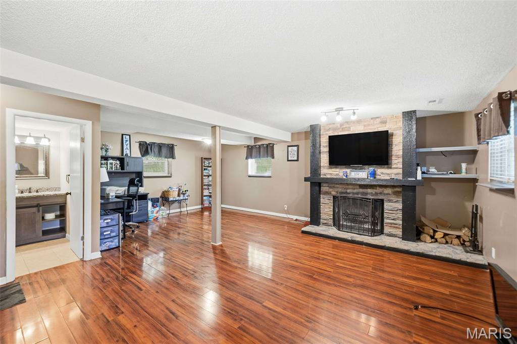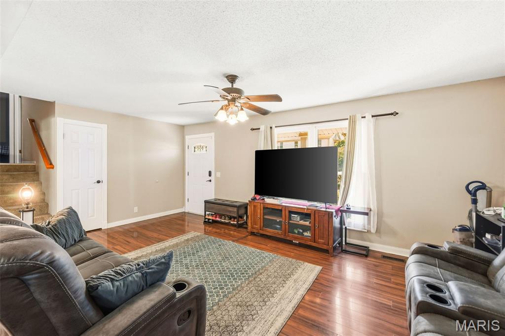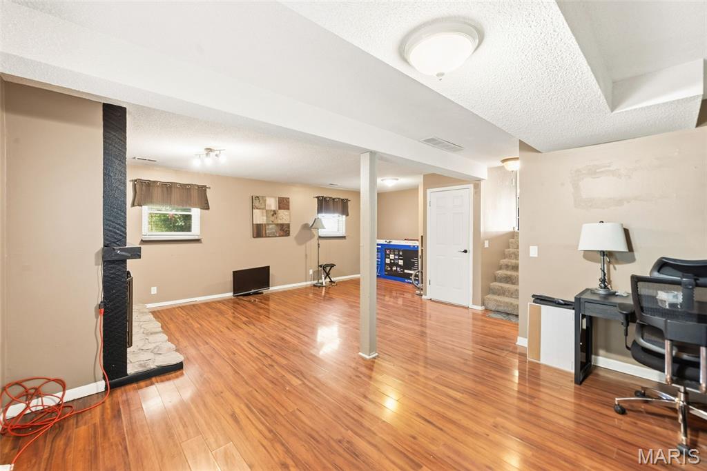 Beautiful, well maintained multi-level home. Over 1700 sq ft of living space. Fully fenced yard, low-maintenance exterior, large patio with newer composite deck. Over size garage. "Wood plank" laminant flooring throughout. Ecosmart tankless hot water heater is energy efficient. Furnace & AC replaced in 2021. Step-down family room boasts a wood burning fireplace, large window and a half bath. This large room has a nook perfect for your office area. Large primary bedroom with walk-in closet & private bath. Two other bedrooms and a full bath complete the upper level. Fenced yard for privacy with a patio for family bbq’s. Alarm system. Radon mitigation system. Home will have a new roof by closing, buyer can pick the color. Refrigerator, washer & dryer stay. 2 hours notice required for showings.