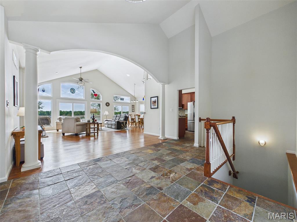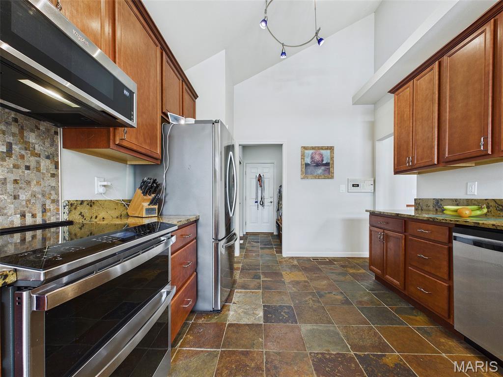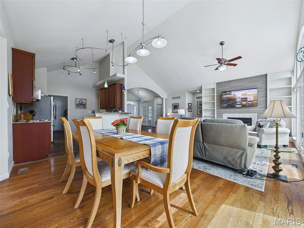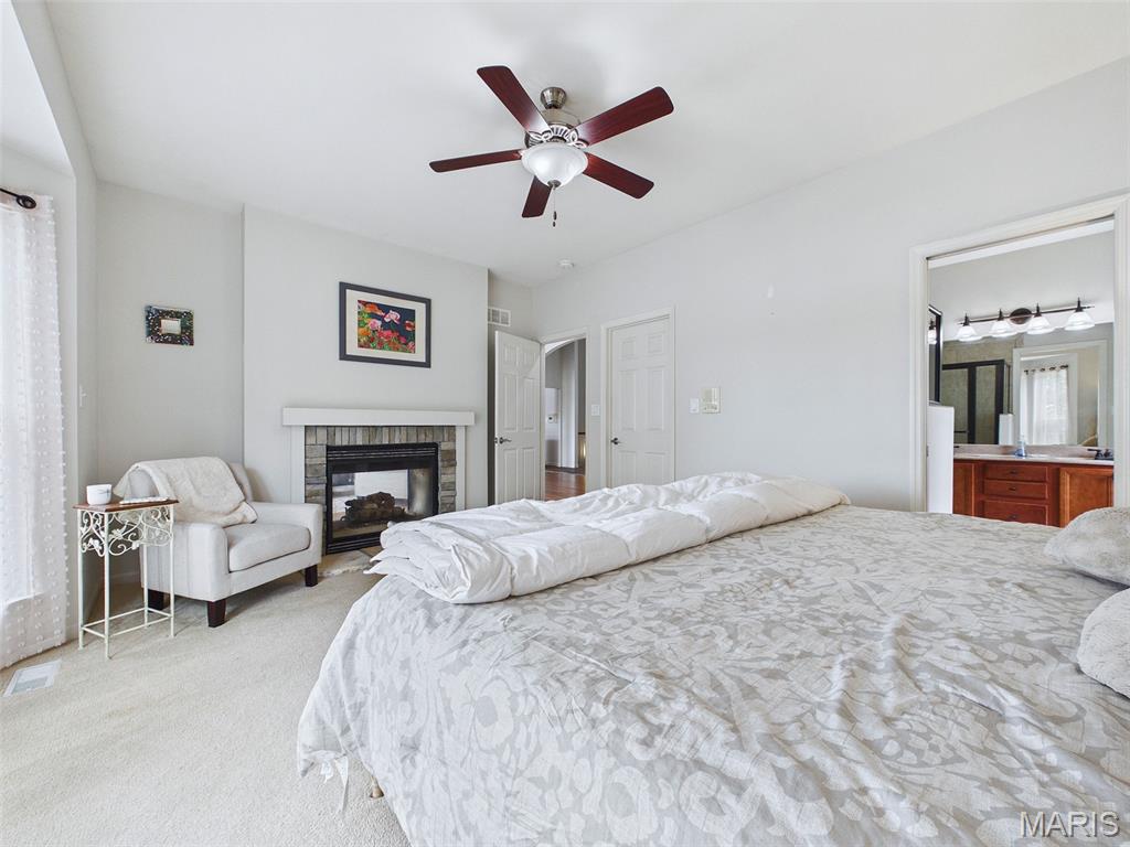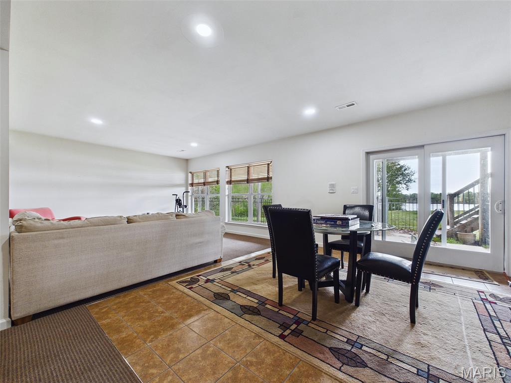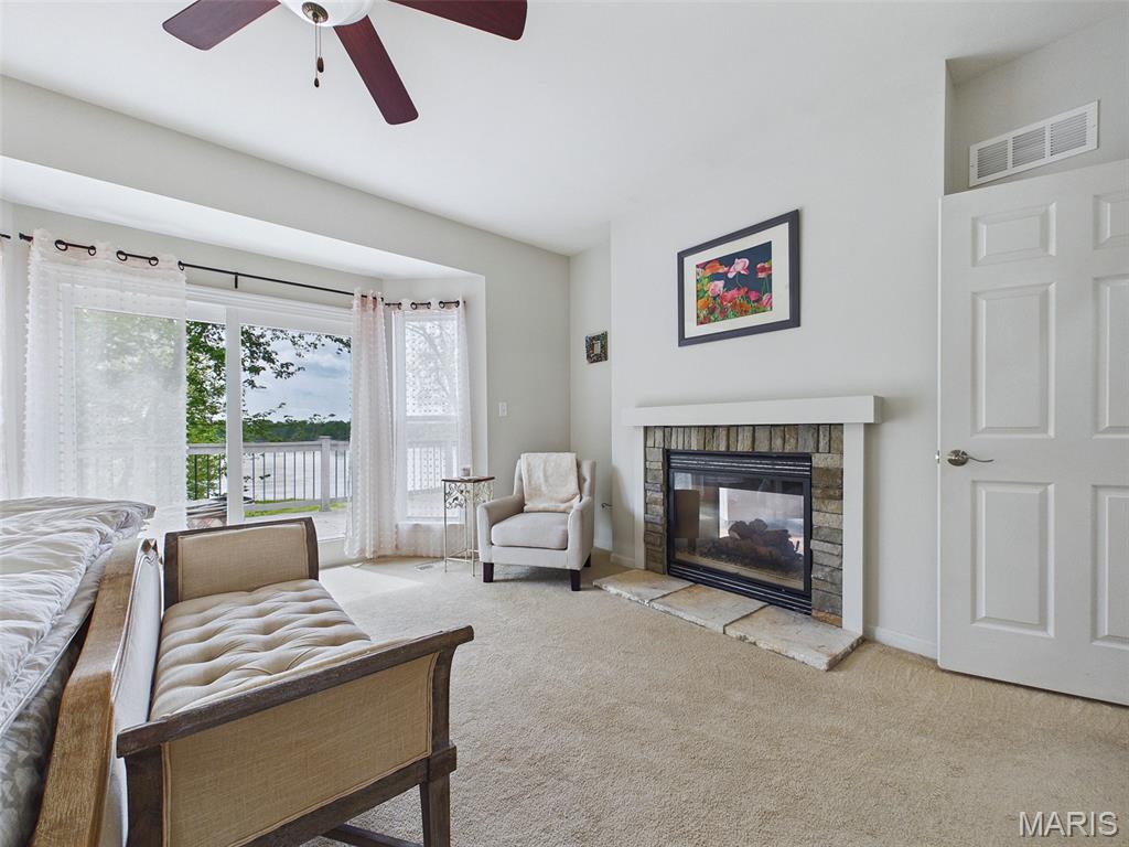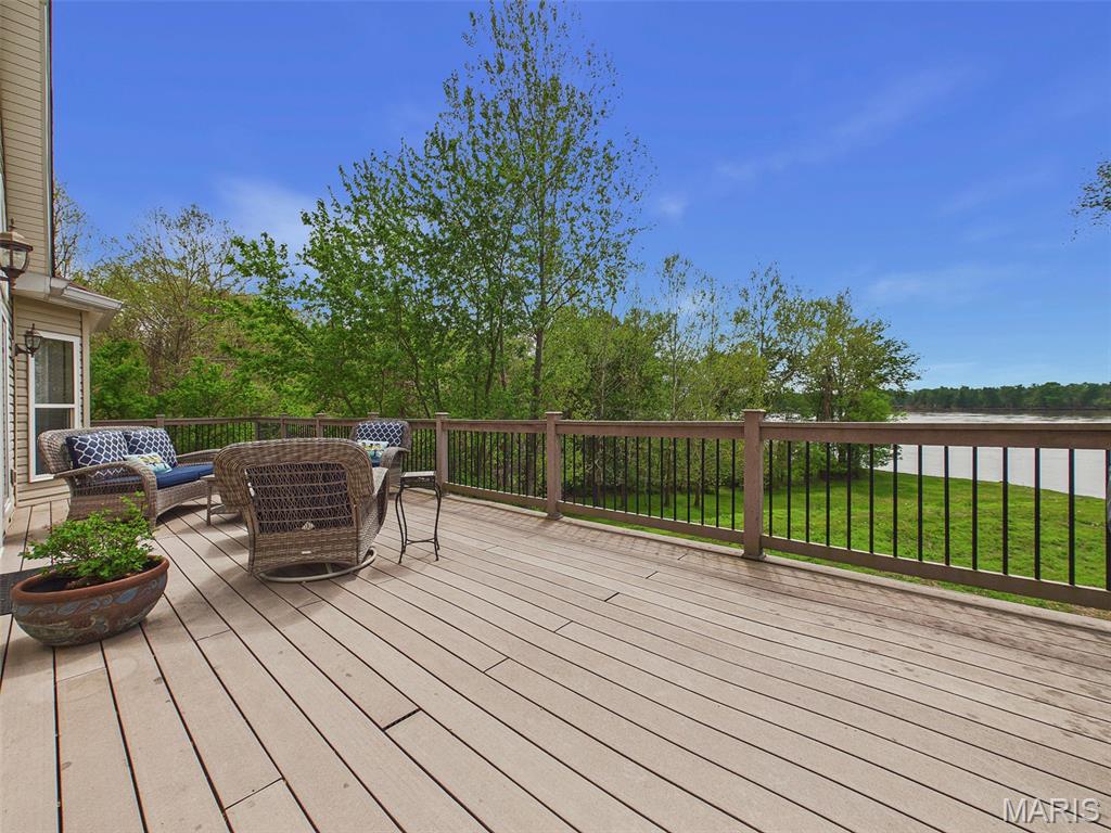 Nothing to do but move right in! This stunning stand-alone villa offers breathtaking river views and nearly 3,000 square feet of finished living space. Designed with an open floor plan, the home features a dramatic wall of windows that perfectly frames the scenic backdrop. The living room is anchored by a beautiful dual-sided fireplace and complemented by rich hardwood flooring, creating a warm yet sophisticated atmosphere. Brand new sliding doors span the entire back of the home, providing seamless access to a spacious deck—ideal for relaxing or entertaining while taking in the view. The kitchen is both stylish and functional, featuring granite countertops, stainless steel appliances, a pantry, breakfast bar, and slate tile flooring. All appliances are included, making your move even easier. Wake up to river views in the serene primary suite, complete with private deck access, a large ensuite bathroom with soaking tub and separate shower, linen closet, and a generous walk-in closet. The finished lower level offers incredible versatility with ample entertaining space, a second kitchen, and a third bedroom with a full bathroom—perfect for guests or multi-generational living. Step outside to a fenced area ideal for pets, accessible from the lower level. Additional highlights include a two-car attached garage and low-maintenance living, with the association covering lawn care, landscaping, snow removal, and roofing. Conveniently located just across the Golden Eagle Ferry from St. Charles or via the Brussels Ferry from Grafton, this home offers a peaceful retreat with easy access to surrounding areas. Residents also have the option to enjoy the subdivision clubhouse and pool for an additional annual fee. Make your appointment today!