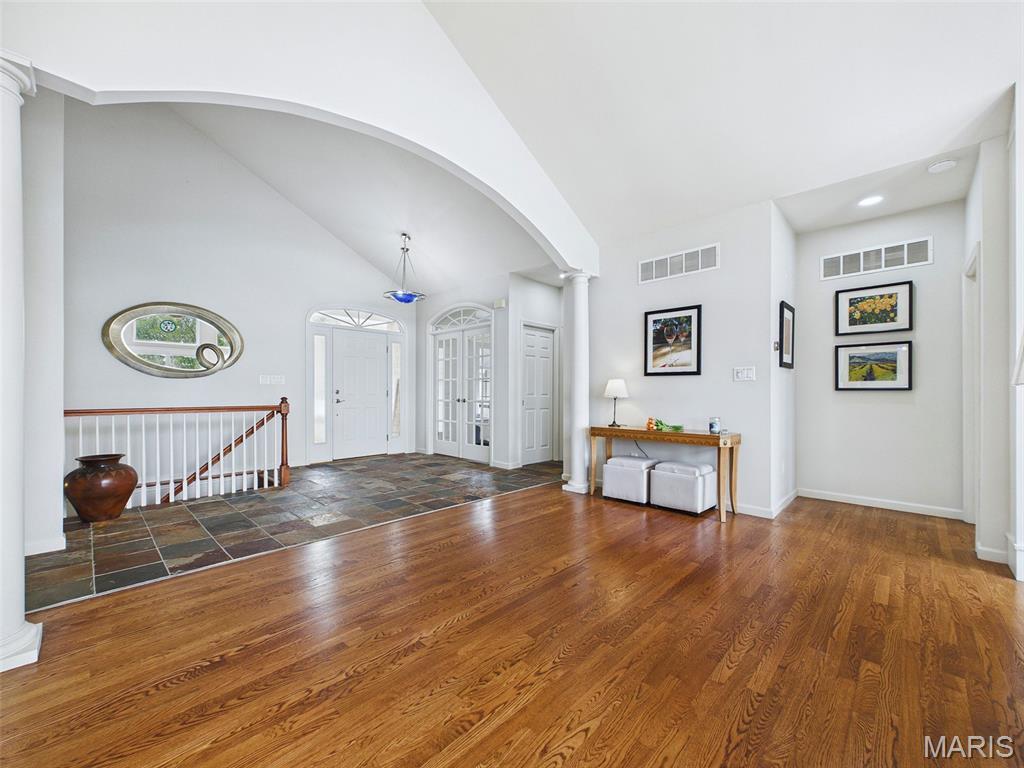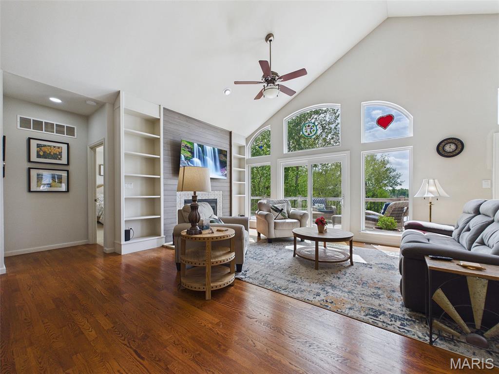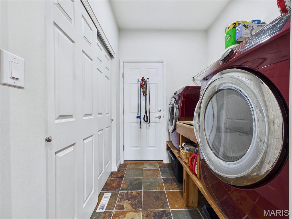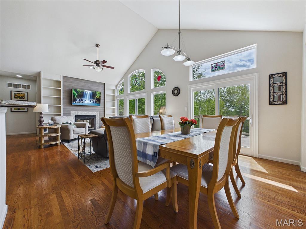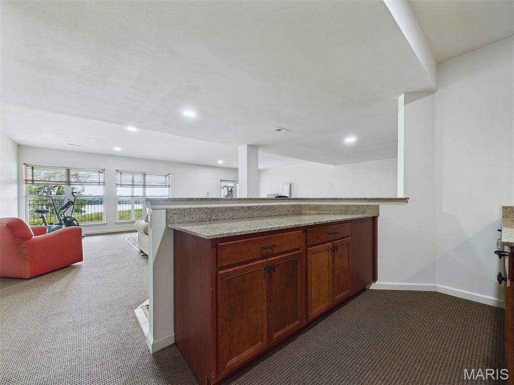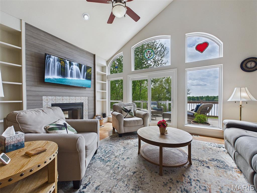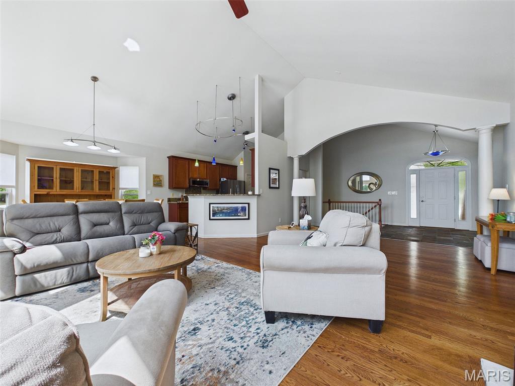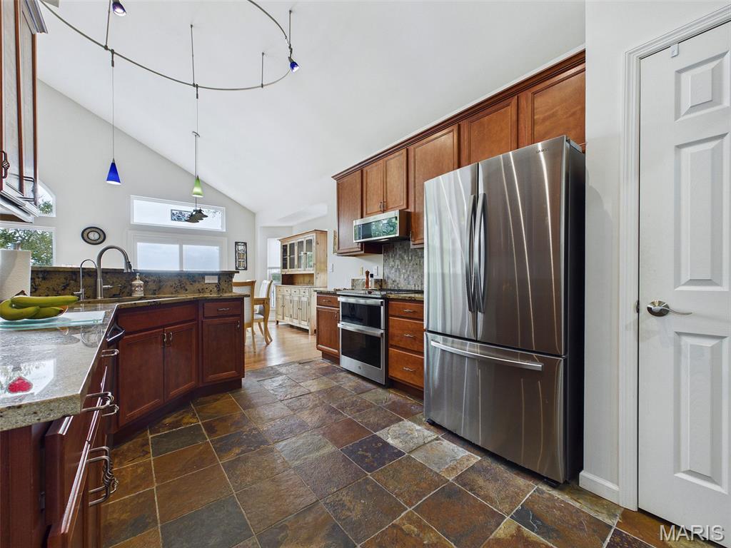 Nothing to do but move right in! This stunning stand-alone villa offers breathtaking river views and nearly 3,000 square feet of finished living space. Designed with an open floor plan, the home features a dramatic wall of windows that perfectly frames the scenic backdrop. The living room is anchored by a beautiful dual-sided fireplace and complemented by rich hardwood flooring, creating a warm yet sophisticated atmosphere. Brand new sliding doors span the entire back of the home, providing seamless access to a spacious deck—ideal for relaxing or entertaining while taking in the view. The kitchen is both stylish and functional, featuring granite countertops, stainless steel appliances, a pantry, breakfast bar, and slate tile flooring. All appliances are included, making your move even easier. Wake up to river views in the serene primary suite, complete with private deck access, a large ensuite bathroom with soaking tub and separate shower, linen closet, and a generous walk-in closet. The finished lower level offers incredible versatility with ample entertaining space, a second kitchen, and a third bedroom with a full bathroom—perfect for guests or multi-generational living. Step outside to a fenced area ideal for pets, accessible from the lower level. Additional highlights include a two-car attached garage and low-maintenance living, with the association covering lawn care, landscaping, snow removal, and roofing. Conveniently located just across the Golden Eagle Ferry from St. Charles or via the Brussels Ferry from Grafton, this home offers a peaceful retreat with easy access to surrounding areas. Residents also have the option to enjoy the subdivision clubhouse and pool for an additional annual fee. Make your appointment today!