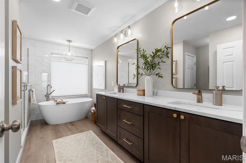 Welcome to 13 Macleod Ct, where high-end updates, thoughtful design, and true pride of ownership come together. This beautifully updated home offers a perfect blend of modern finishes and functional living spaces, starting with stunning curb appeal and continuing throughout the interior. As you enter, you’re greeted by a dedicated office space and formal dining area, leading into a warm and inviting main level featuring hardwood floors throughout and updated lighting that enhances every space. The fully updated kitchen (2022) is a standout, showcasing quartz countertops, refaced cabinetry, updated appliances, stylish lighting, a center island, and a pantry, designed for both everyday living and entertaining. Upstairs, you’ll find three generously sized bedrooms, a versatile loft area, and a true primary suite retreat. The primary bedroom features a walk-in closet and a completely remodeled en-suite bath (2022) with quartz-topped double vanities, luxury vinyl plank flooring, a soaking tub, floor-to-ceiling tiled walk-in shower, and automatic blinds for added comfort and convenience. The home also includes a full unfinished basement, offering excellent potential for additional living space, storage, or future customization to fit your needs. Additional updates include all new faucets and fixtures throughout, a new roof, gutters, and downspouts (late 2023), and a new water heater (2024), with HVAC replaced in 2018, providing peace of mind for years to come. Step outside to enjoy the private back patio, perfect for relaxing or entertaining, along with an irrigation system to keep the lawn looking its best. The three-car garage offers ample space for parking, storage, or hobbies. This home checks all the boxes with its extensive updates, modern finishes, ideal layout, and room to grow. It is ready for its next owner to move right in and enjoy.