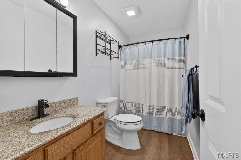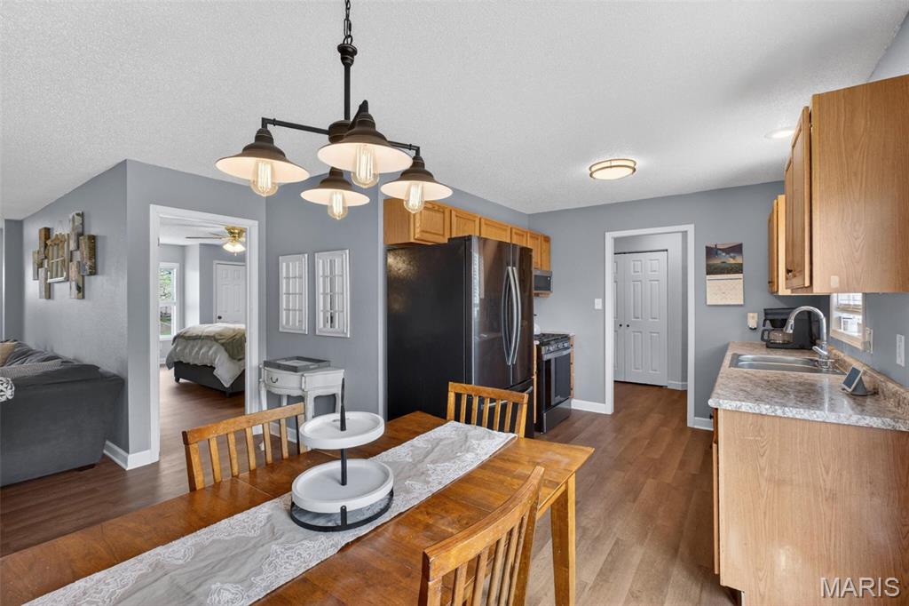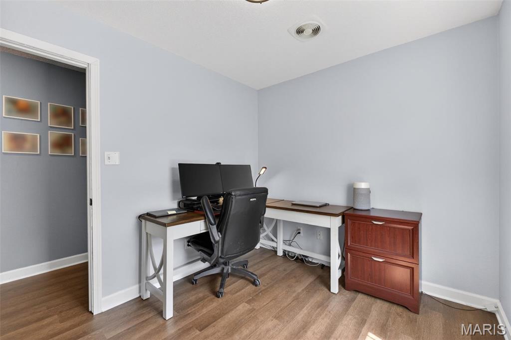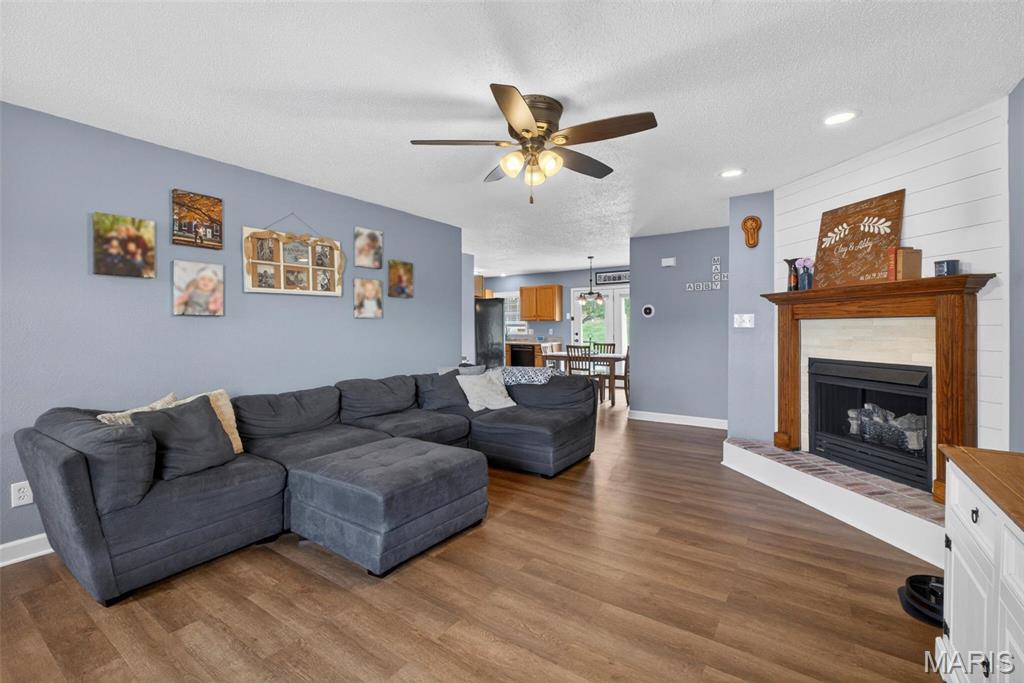Hello 104 E Hunter Ridge! This split floor plan ranch has updates galore and tons of natural light. As you enter the living room you are greeted with new luxury vinyl floor throughout the entire home! The living room is centered by a gas log fire place that flows into the eat-in kitchen and looks out into your hillside that gives you just enough privacy to your patio and large backyard. The backyard has planters and extra storage with a shed. Back through the kitchen you have a main floor laundry room with additional shortage that could be used for coats or a bigger pantry. The garage has enough room for cars and a well organized hobby or two. Off the left side of the living room you have the primary with a bathroom on-suite to the right you have 2 bedrooms centered by the 2nd bathroom and an office that will have you daydream of doing yardwork vs doing work-work. Move fast or someone else will!