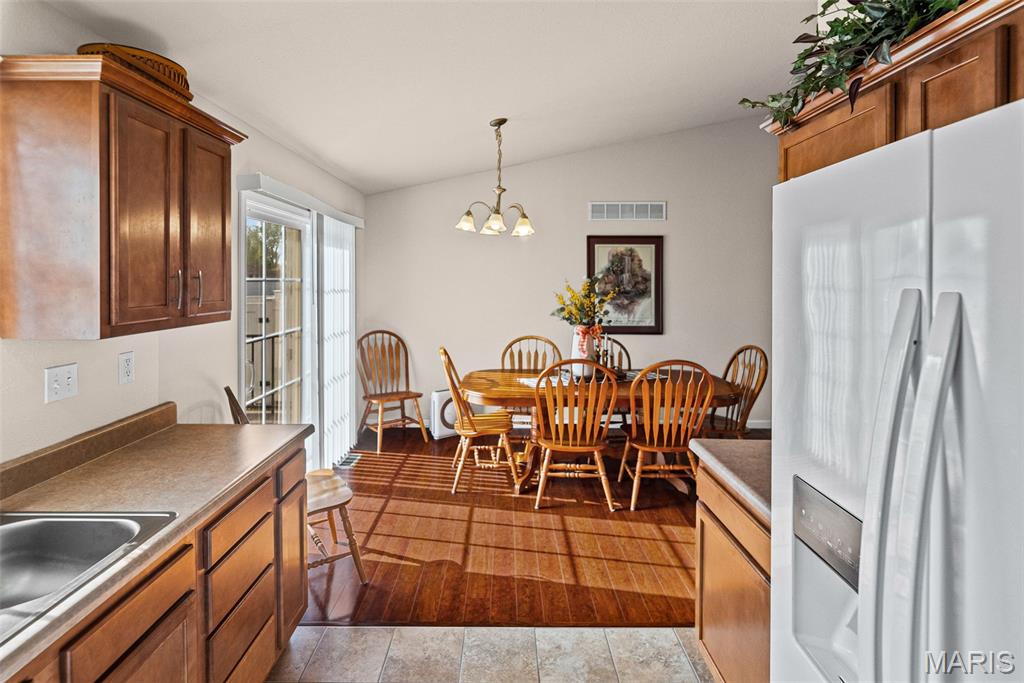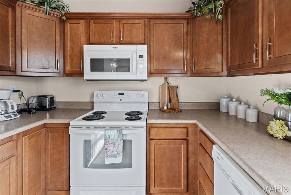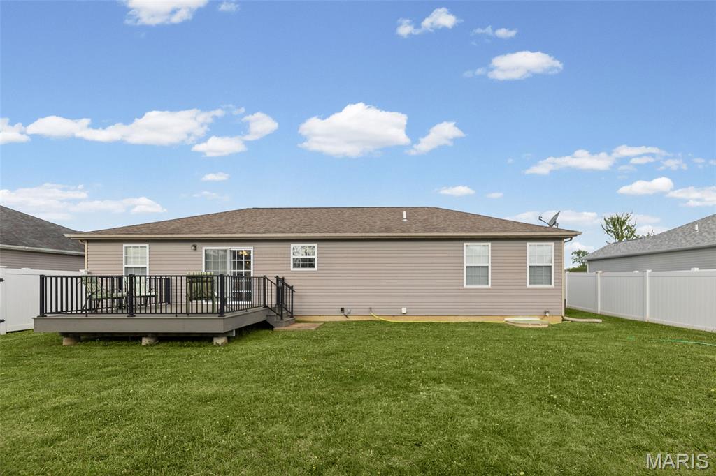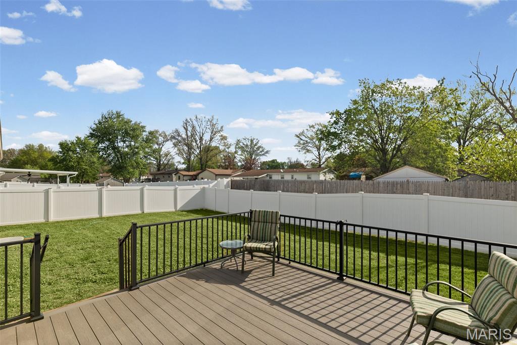 Absolutely MOVE IN READY!! One owner home and well loved. 3 bedrooms with a split design. Two full baths. Laundry on the main level. Nice wood cabinets with all appliances to remain. Walk in closet in the primary bedroom. Large composite deck off the kitchen overlooking a vinyl fenced back yard. Attached 2 car garage. Full basement with egress window perfect for additional living space. Gas heat/CA. Just minutes from I255. and close to everything.