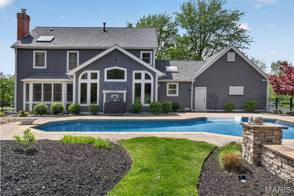 Welcome to 16011 Clarkson Mill Circle—an exceptional, resort-style retreat ideally situated in the heart of Clarkson Valley, just moments from the prestigious Forest Hills Golf Course community. No early mornings racing to claim the perfect lounger by the pool—this private resort is entirely your own. Step into your outdoor oasis, where every detail invites relaxation and effortless entertaining. Lounge beside the sparkling pool as the fountain gently bubbles in the background, practice your short game on your personal putting green, or gather fireside under the stars around the gas fire pit. This is everyday living—elevated. Designed with entertaining in mind, the home offers a seamless flow between indoor and outdoor spaces. The beautifully updated kitchen, anchored by a spacious center island, opens to the inviting hearth room—perfectly positioned to capture sweeping views of the pool and lush, level, park-like yard. Whether hosting an intimate dinner or a lively soiree, the circular driveway creates a warm and impressive welcome for guests. The second level offers a private retreat for everyday living. The primary suite is a serene escape, featuring a spa-inspired en suite bath with timeless travertine finishes, a soaking tub, and separate shower. The custom-designed primary closet maximizes vaulted ceilings to create exceptional storage, while an additional bedroom has been thoughtfully transformed into a boutique-style dressing room with center island. A beautifully updated hall bath and two other bedrooms; one with its own renovated en suite complete the upper level—offering comfort and flexibility for family or guests. The walkout lower level expands your living space with a large recreation area, full bath, and versatile rooms ideal for guests, a home gym, office, or creative studio. Significant recent updates include James Hardie siding, newer windows, and a brand-new pool liner to be installed prior to closing—ensuring peace of mind and turnkey enjoyment. This is more than a home—it’s a lifestyle. And yes… the only thing missing might just be the cabana service!