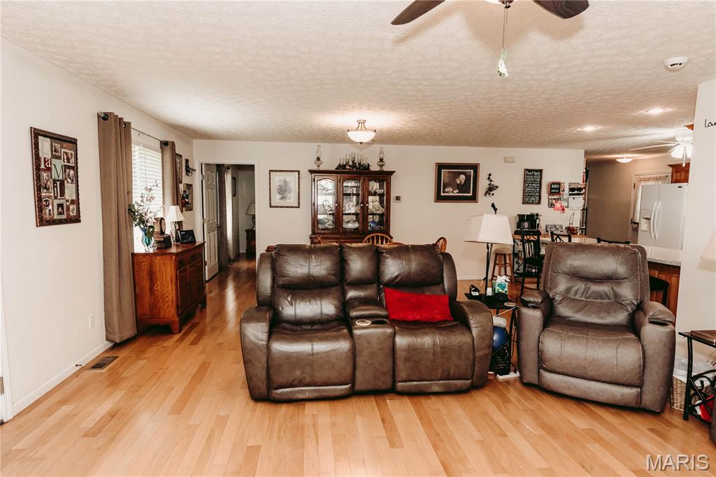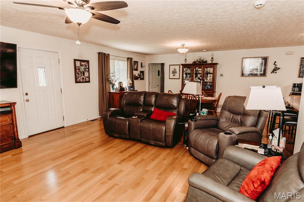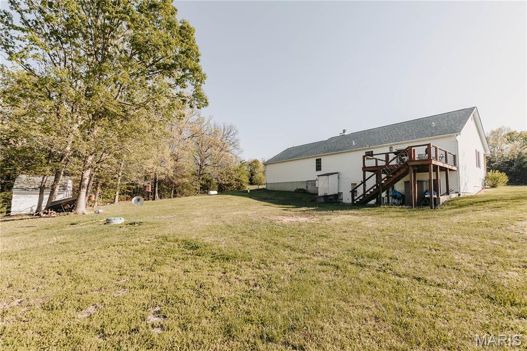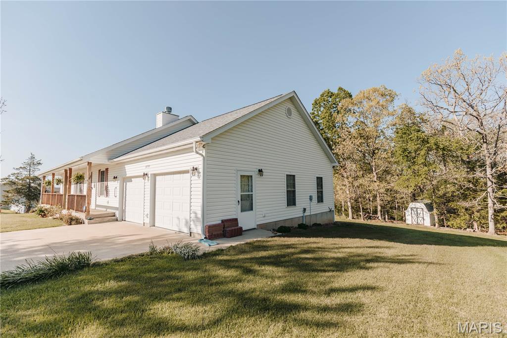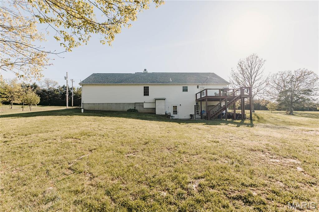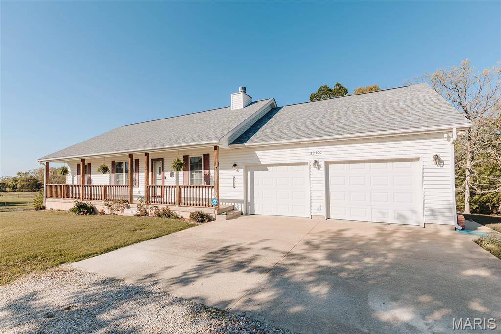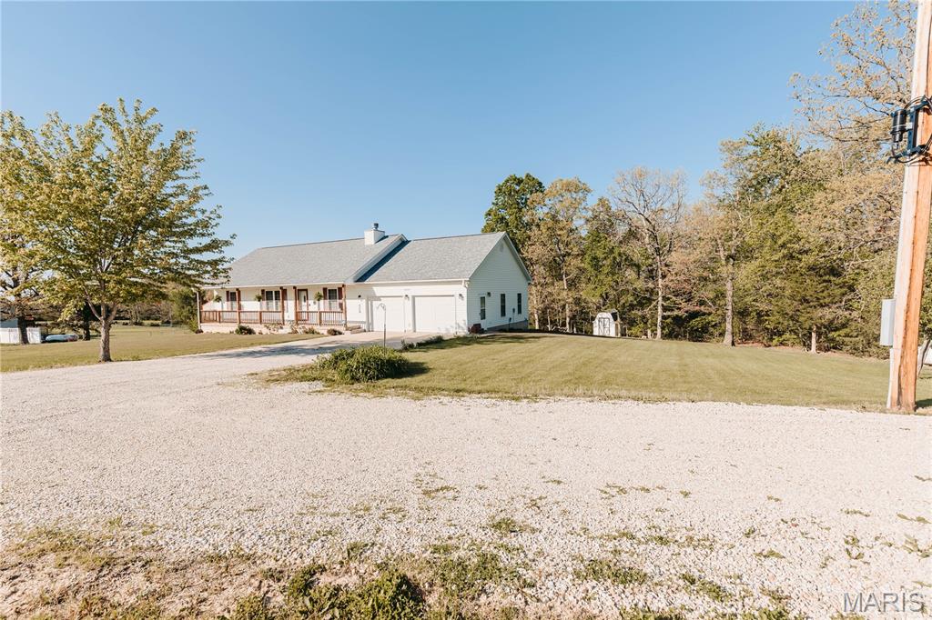 Open split floor plan 3 bath ranch on 3 acres with a partially finished walk-out lower level. This home clearly reflects the care and attention it has received. As you pull into the freshly graveled driveway, you’re welcomed by a manicured yard, covered front porch, and attached two-car garage. Inside, wood flooring flows through the open living, and dining areas, creating an inviting space perfect for everyday living and entertaining. The living room features a gas fireplace with insets and a mantel centerpiece. The thoughtfully designed layout includes a secondary main-level bedroom with convenient access to a full guest bath. The primary suite is privately situated on the opposite side of the home and offers a spacious walk-in closet and full bath. The laundry and pantry areas are strategically placed for privacy and minimal noise. The kitchen features an eat-in bar and opens to an updated and extended back deck that covers the patio below. The walk-out basement offers a great mix of finished and unfinished space, including a family room area, workbench, storage, a finished non-conforming room with closet, a full bath, and more. Outside, a shed sits near the tree line, leaving plenty of open yard space ideal for kids, animals, or outdoor enjoyment.