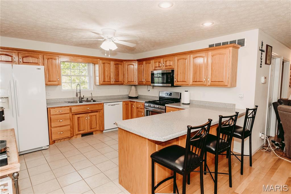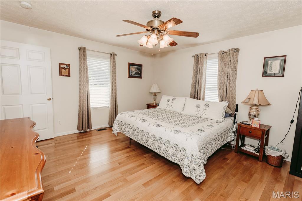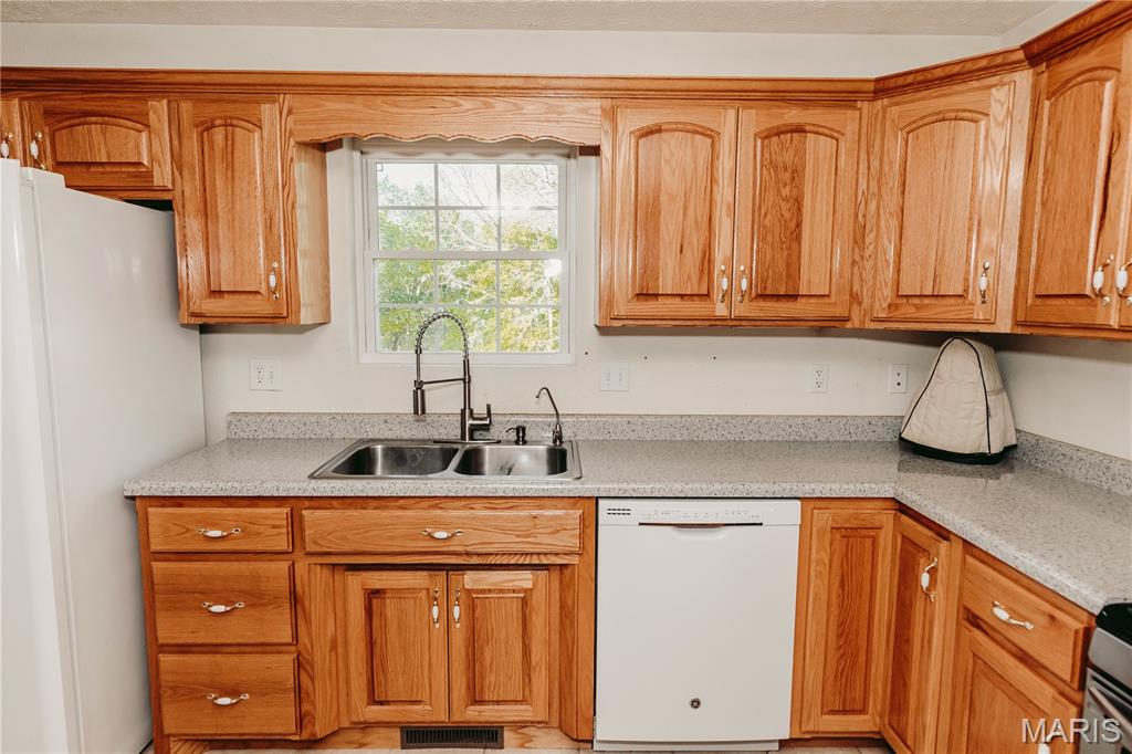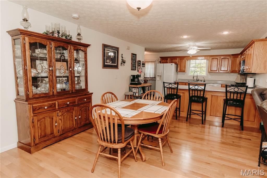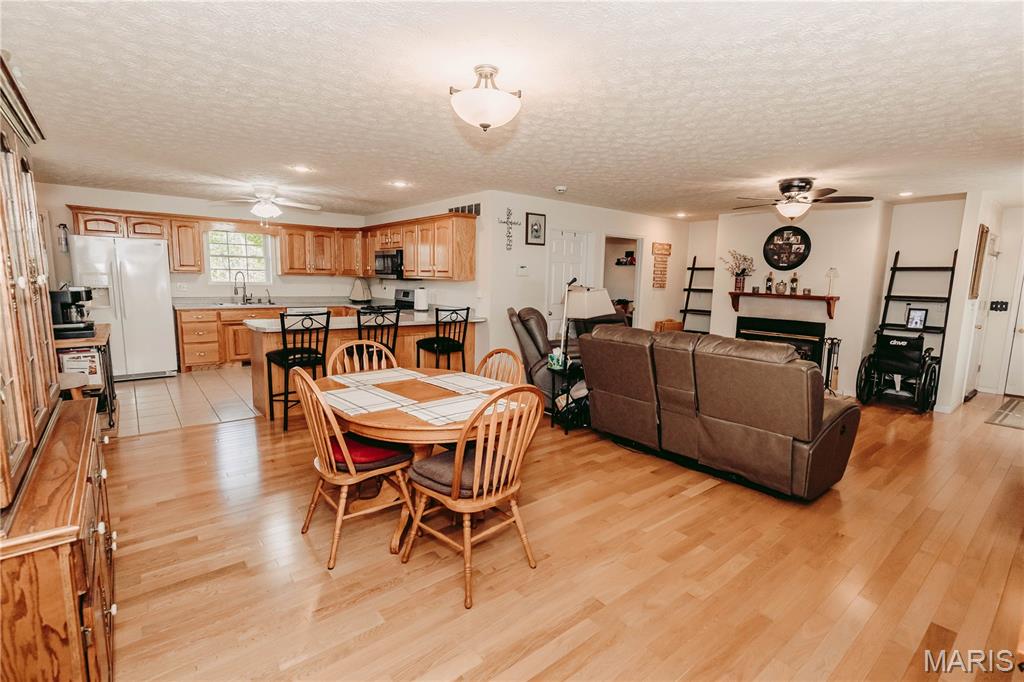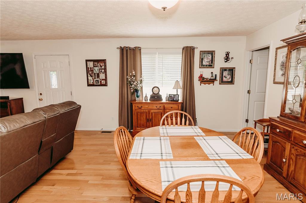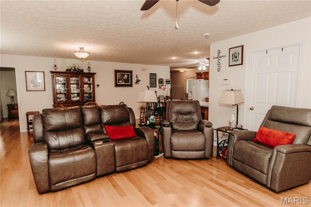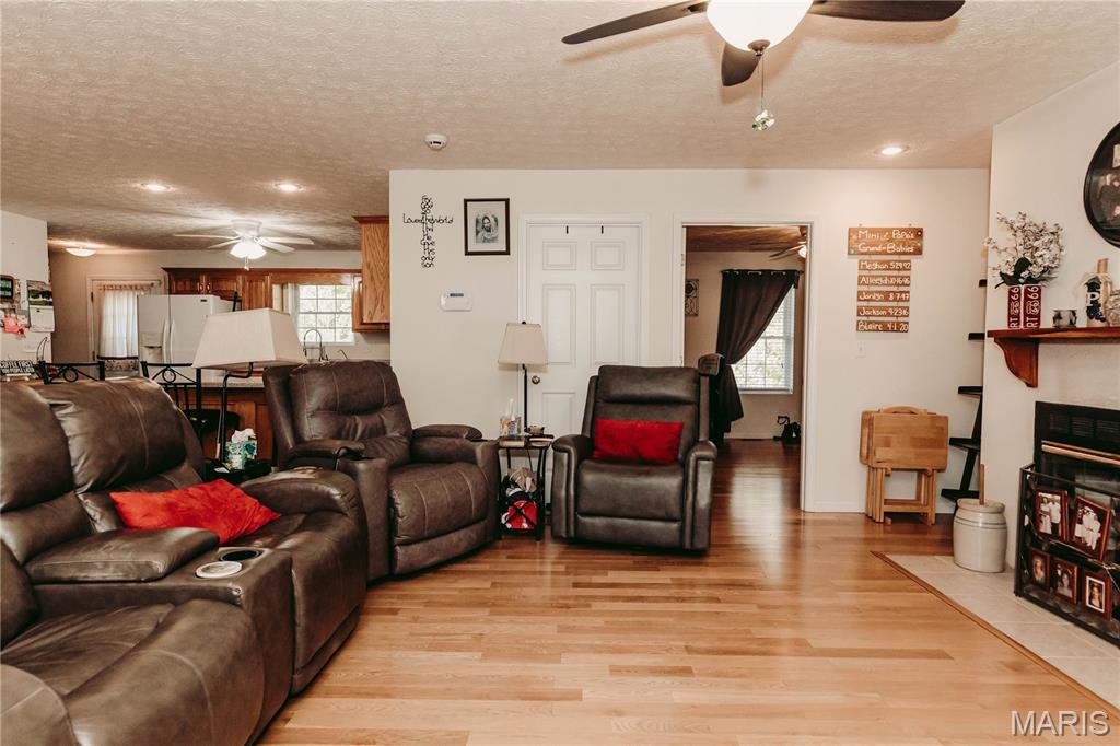 Open split floor plan 3 bath ranch on 3 acres with a partially finished walk-out lower level. This home clearly reflects the care and attention it has received. As you pull into the freshly graveled driveway, you’re welcomed by a manicured yard, covered front porch, and attached two-car garage. Inside, wood flooring flows through the open living, and dining areas, creating an inviting space perfect for everyday living and entertaining. The living room features a gas fireplace with insets and a mantel centerpiece. The thoughtfully designed layout includes a secondary main-level bedroom with convenient access to a full guest bath. The primary suite is privately situated on the opposite side of the home and offers a spacious walk-in closet and full bath. The laundry and pantry areas are strategically placed for privacy and minimal noise. The kitchen features an eat-in bar and opens to an updated and extended back deck that covers the patio below. The walk-out basement offers a great mix of finished and unfinished space, including a family room area, workbench, storage, a finished non-conforming room with closet, a full bath, and more. Outside, a shed sits near the tree line, leaving plenty of open yard space ideal for kids, animals, or outdoor enjoyment.