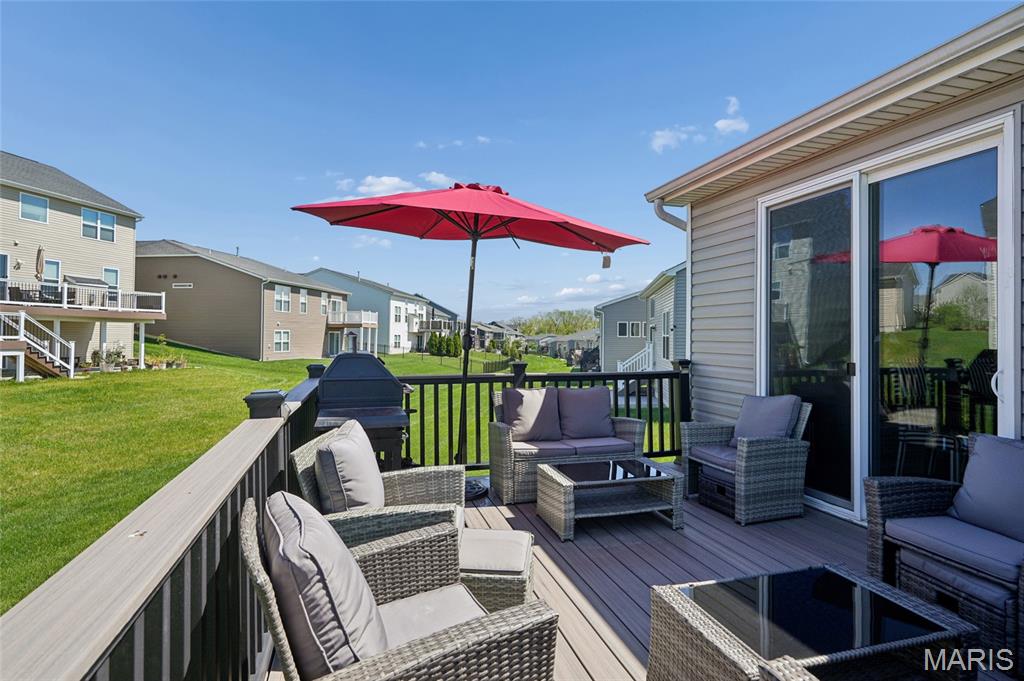 This beautiful Wentzville-Liberty Ranch is a grand slam! This former Display home has tons of great features. The expansive open floor plan has gorgeous wide plank LVP, a cozy gas burning fireplace, custom cabinets with soft close doors and drawers, granite counters, lots of natural light and lots of space for the whole crew. The primary bedroom is huge and has a large ensuite bathroom with walk in shower. Plus, the custom St Louis Closet Company closet is so organized and well laid out. There are 2 additional bedrooms on the main floor, plus a bonus 4th bedroom in the basement. Perfect for the older child, an aging parent or out of town visitors. Plus, there's a huge Great Room/ Rec Room in the basement perfect for snuggling in on those cold winter days. Finally, the new composite deck is fabulous! It's perfect for grilling and chilling with a cup of coffee or a glass of wine. This house is so move in ready. Don't miss out, see it soon!
