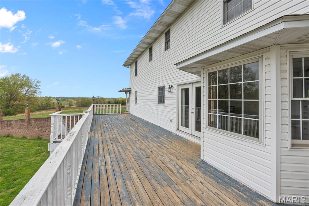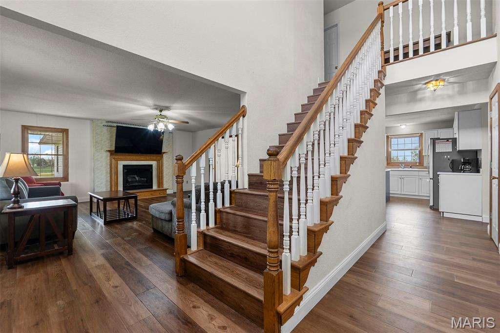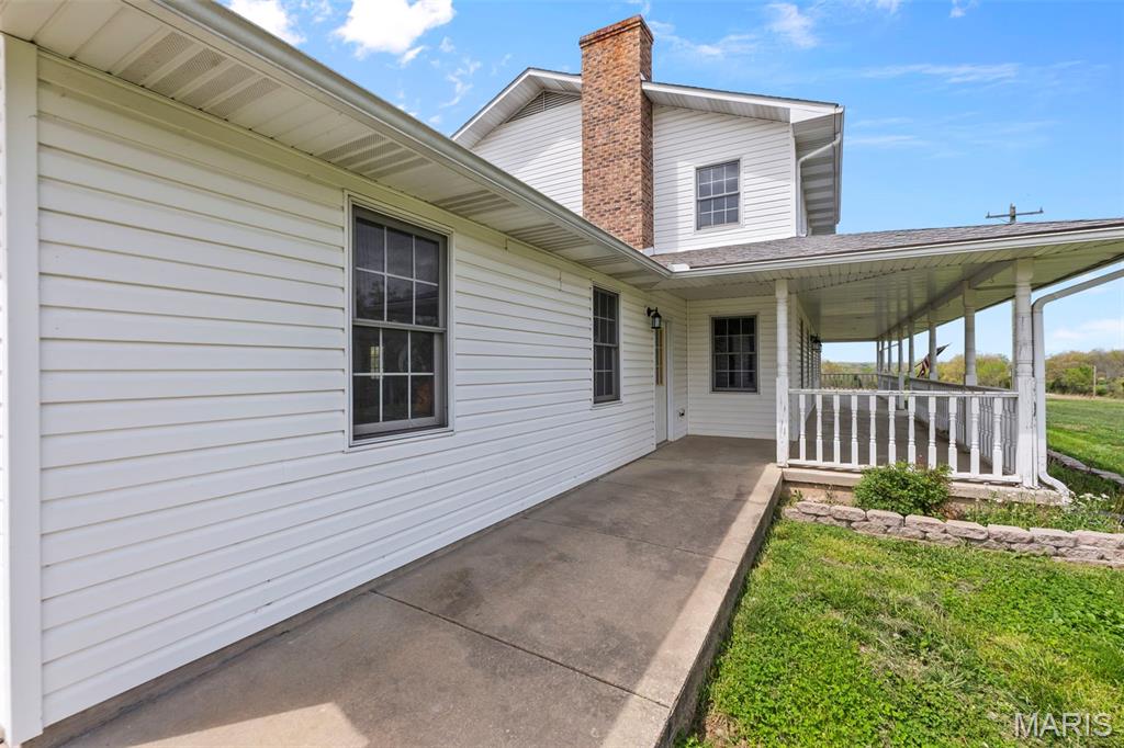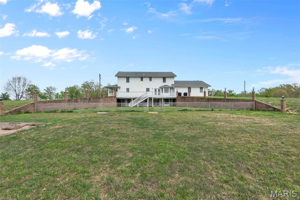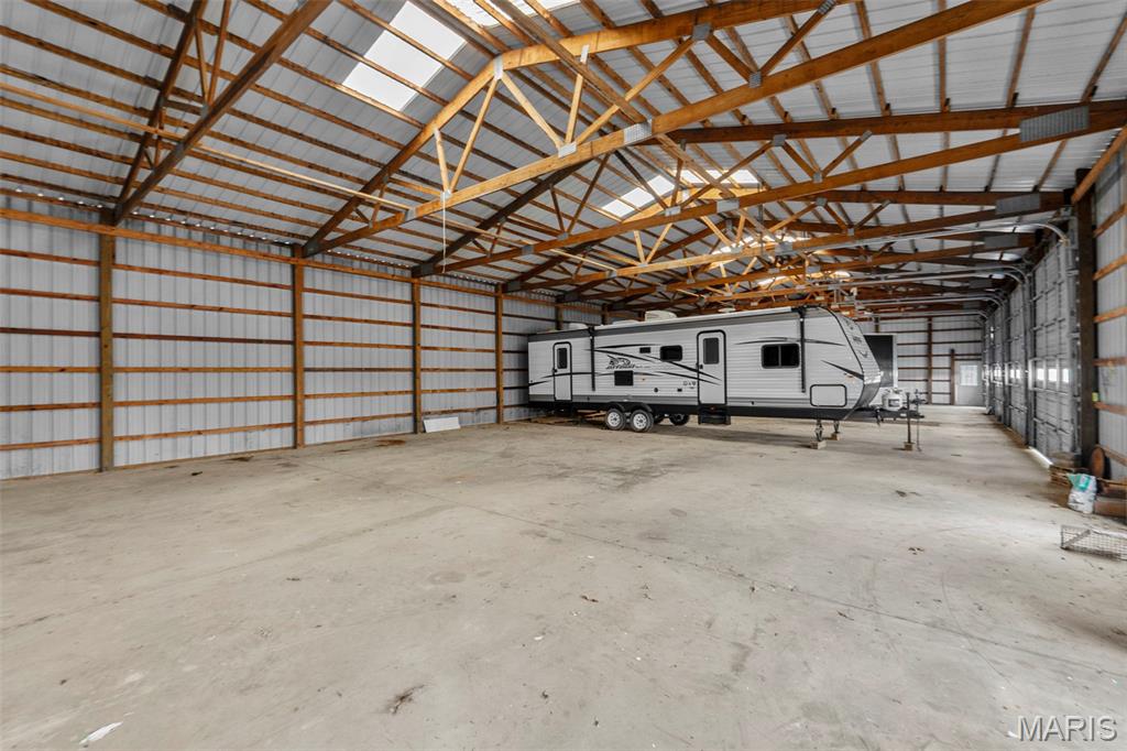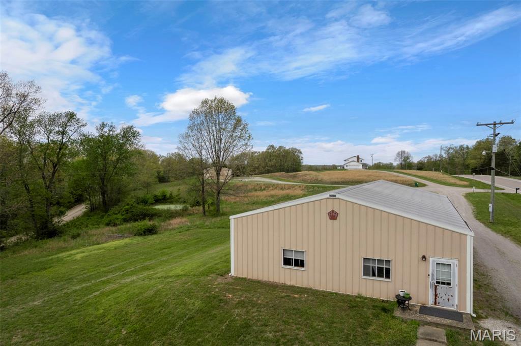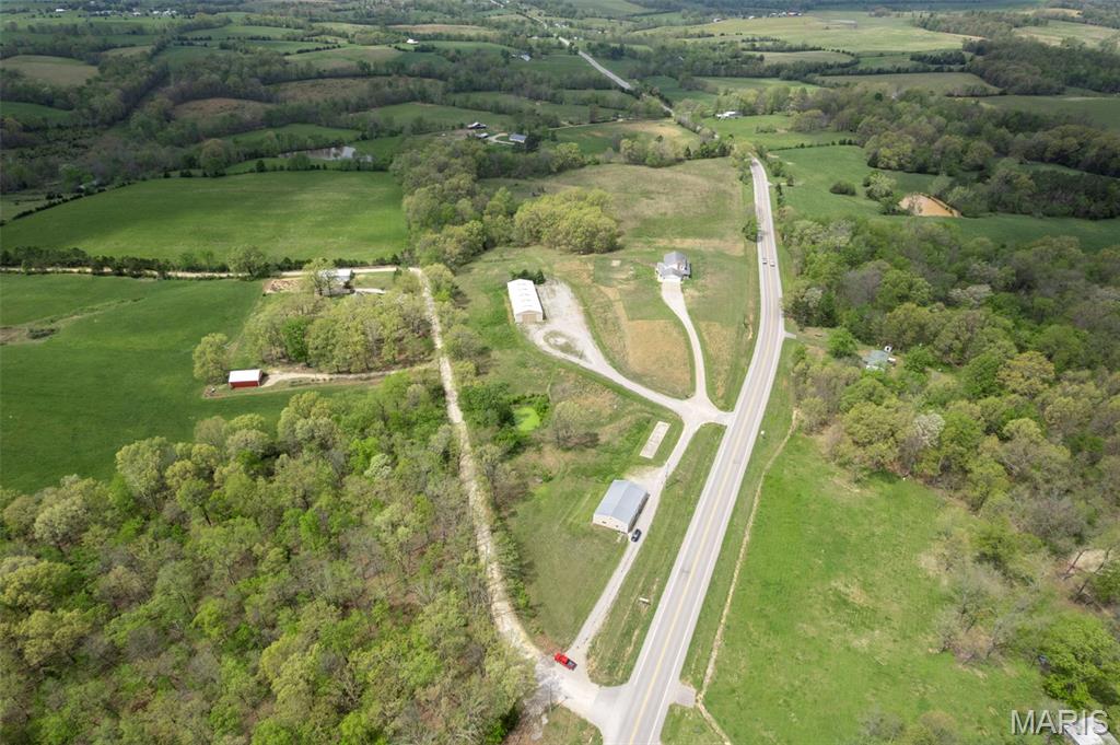 A truly rare and exceptional offering, this one-of-a-kind property features a stunning 5-bedroom, 4.5-bath home with approximately 3,600 square feet of living space, perfectly positioned atop 21.55 acres to capture breathtaking sunset views. A charming wrap-around porch invites you to relax and take in the peaceful surroundings and stunning vista. The property is further enhanced by impressive outbuildings, including a 5,000-square-foot, four-bay shop that has previously generated income as camper/equipment storage, as well as a smaller outbuilding that has been newly remodeled into a one-bedroom efficiency apartment with a two-car garage, offering excellent potential for guest accommodations, rental income, or a private workspace. Inside the home, a welcoming foyer leads to an upper level featuring four spacious bedrooms and two full bathrooms. Entering through the attached heated garage brings you into a beautifully designed kitchen and dining area, complete with a large island and direct access to an expansive deck—perfect for entertaining. The kitchen has been updated with refinished cabinets, adding a fresh and modern touch. The main level also offers a generous living room with a cozy fireplace, a private primary en suite, a dedicated office, and an additional bathroom. The partially finished basement expands the living space with a wood-burning fireplace, hot tub area, bathroom, game room, and ample storage. Recent updates throughout the home include NEW flooring throughout the main and upper levels, along with NEW AC units. Combining scenic acreage, versatile outbuildings, and thoughtfully updated living spaces, this property presents a unique opportunity for both personal enjoyment and potential income.