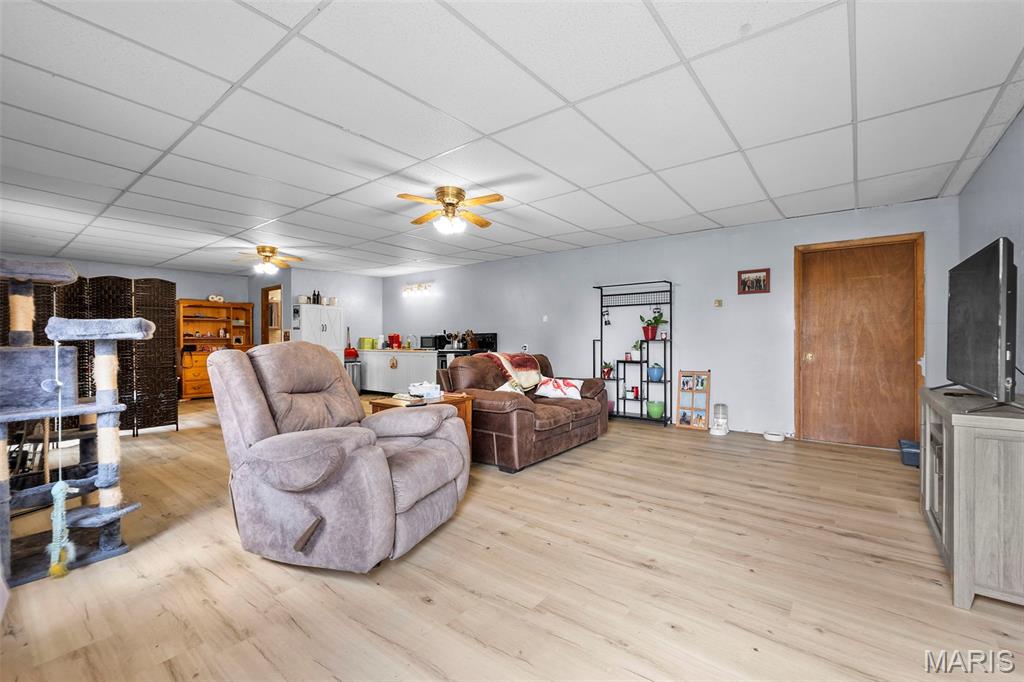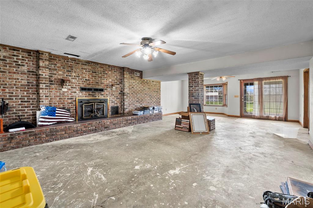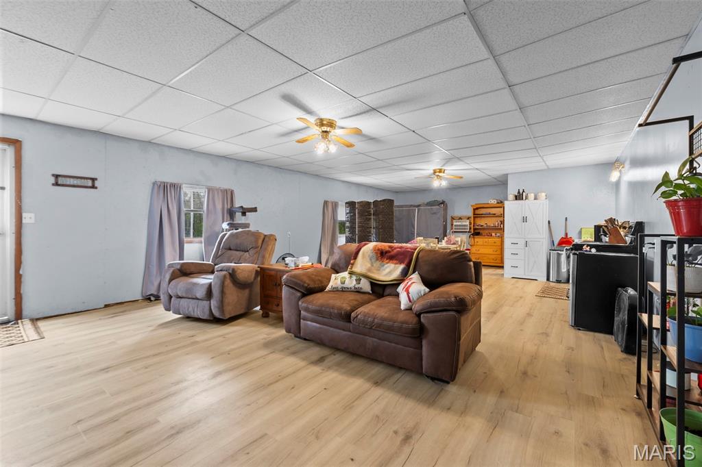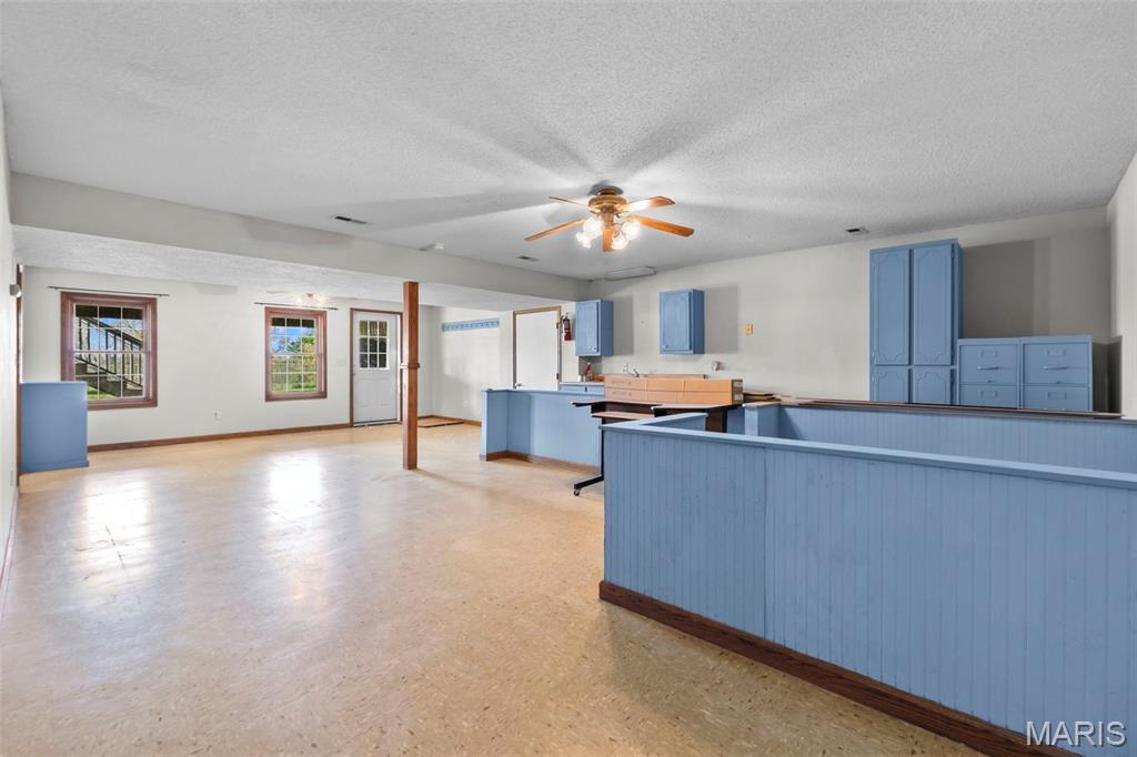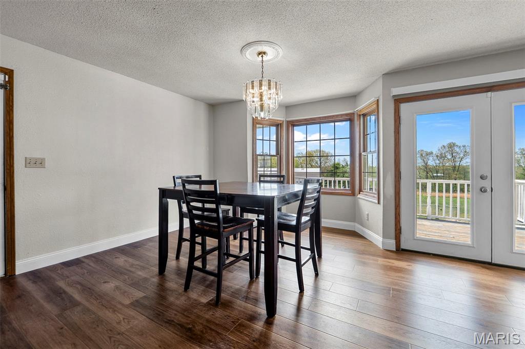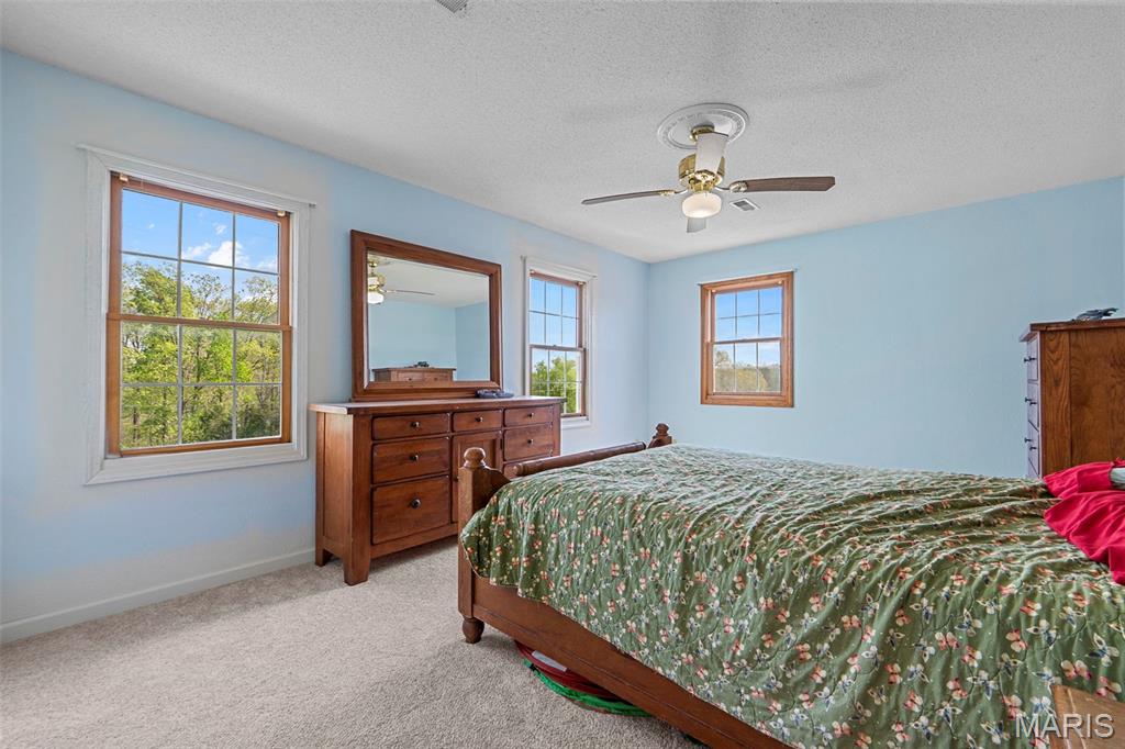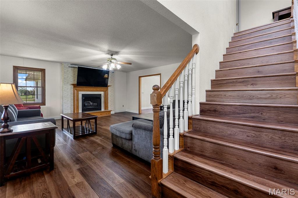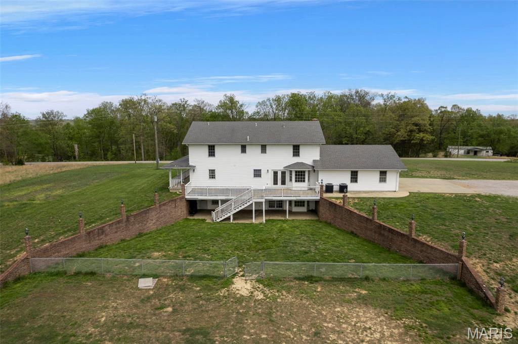 A truly rare and exceptional offering, this one-of-a-kind property features a stunning 5-bedroom, 4.5-bath home with approximately 3,600 square feet of living space, perfectly positioned atop 21.55 acres to capture breathtaking sunset views. A charming wrap-around porch invites you to relax and take in the peaceful surroundings and stunning vista. The property is further enhanced by impressive outbuildings, including a 5,000-square-foot, four-bay shop that has previously generated income as camper/equipment storage, as well as a smaller outbuilding that has been newly remodeled into a one-bedroom efficiency apartment with a two-car garage, offering excellent potential for guest accommodations, rental income, or a private workspace. Inside the home, a welcoming foyer leads to an upper level featuring four spacious bedrooms and two full bathrooms. Entering through the attached heated garage brings you into a beautifully designed kitchen and dining area, complete with a large island and direct access to an expansive deck—perfect for entertaining. The kitchen has been updated with refinished cabinets, adding a fresh and modern touch. The main level also offers a generous living room with a cozy fireplace, a private primary en suite, a dedicated office, and an additional bathroom. The partially finished basement expands the living space with a wood-burning fireplace, hot tub area, bathroom, game room, and ample storage. Recent updates throughout the home include NEW flooring throughout the main and upper levels, along with NEW AC units. Combining scenic acreage, versatile outbuildings, and thoughtfully updated living spaces, this property presents a unique opportunity for both personal enjoyment and potential income.